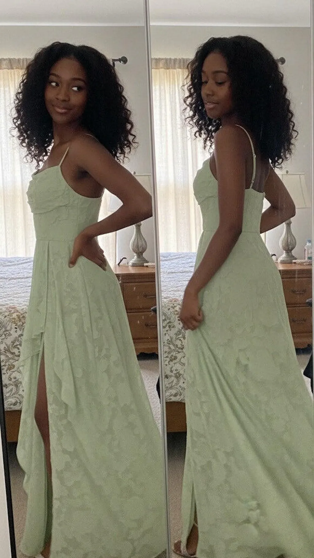 A-Line Floral Lace Bridesmaid Dress Spaghetti Straps Floor Length with Side Slit UK