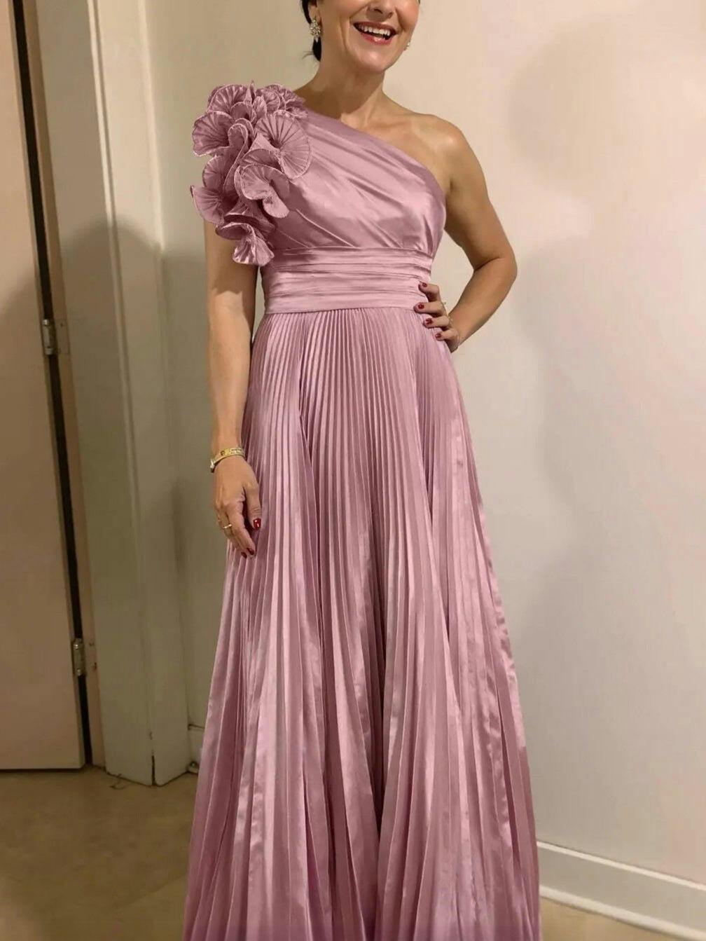 A-Line/Princess One-Shoulder Sleeveless Floor-Length Mother of the Bride Dresses with Ruffles & 3D Flowers UK