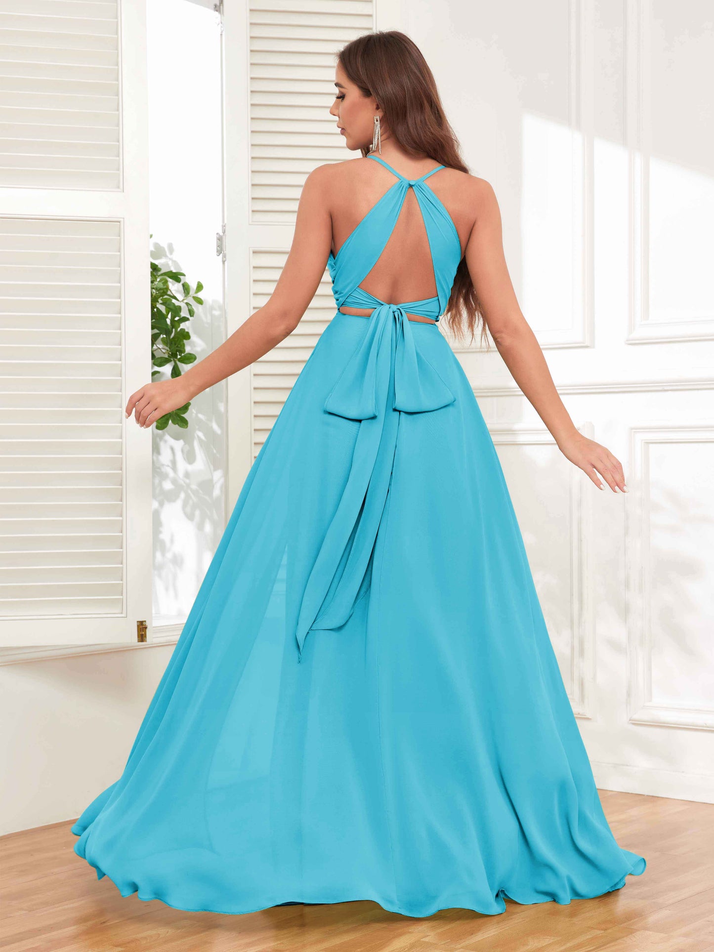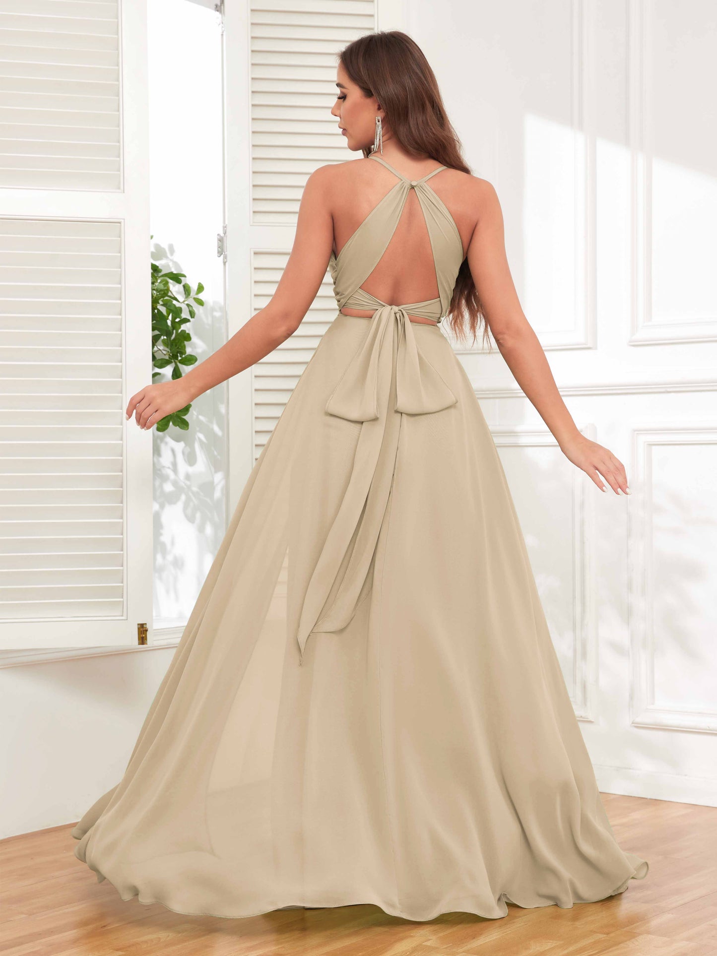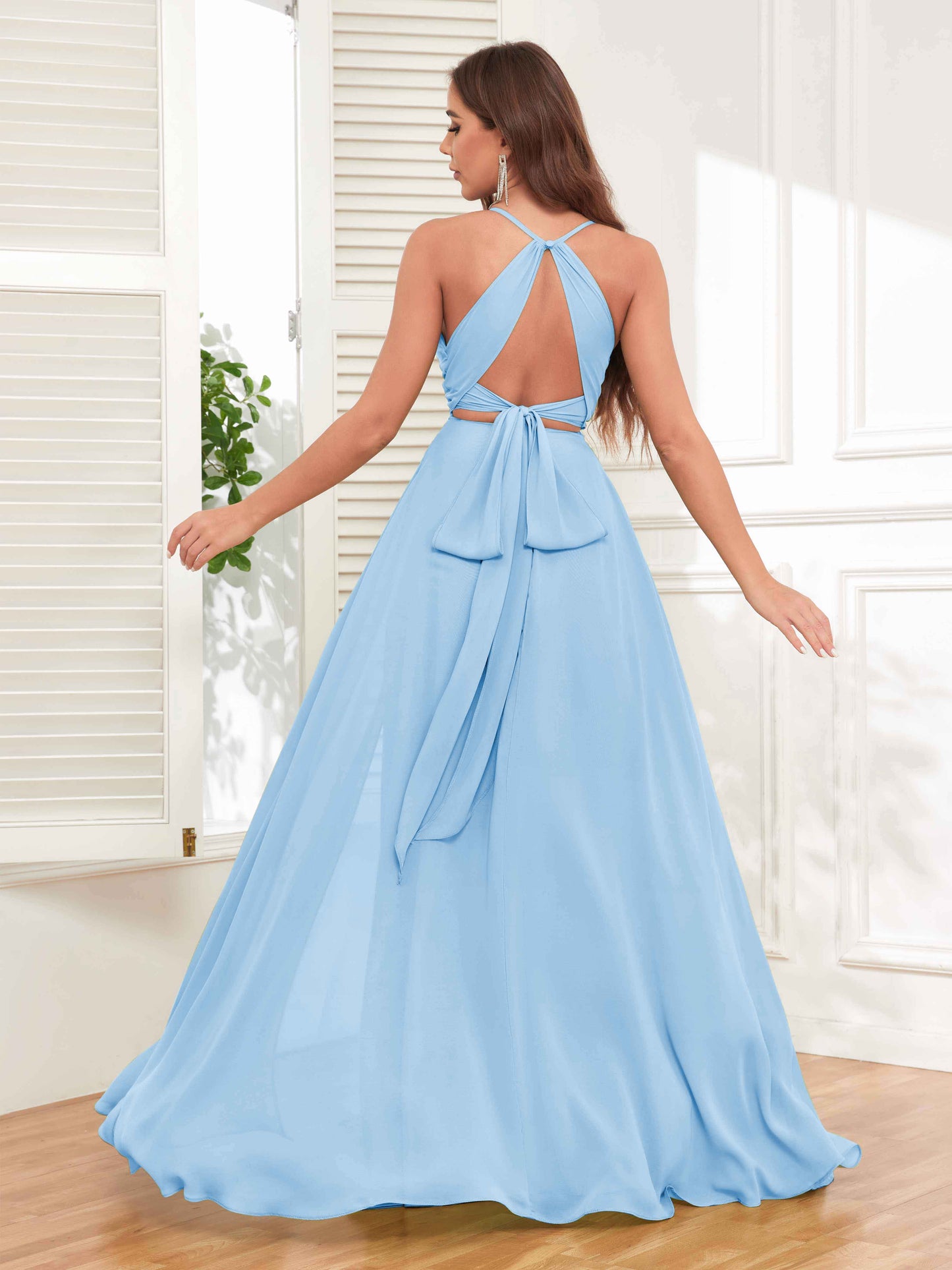 Captivating Halter Sleeveless Bow Back Chiffon Bridesmaid Dresses UK
