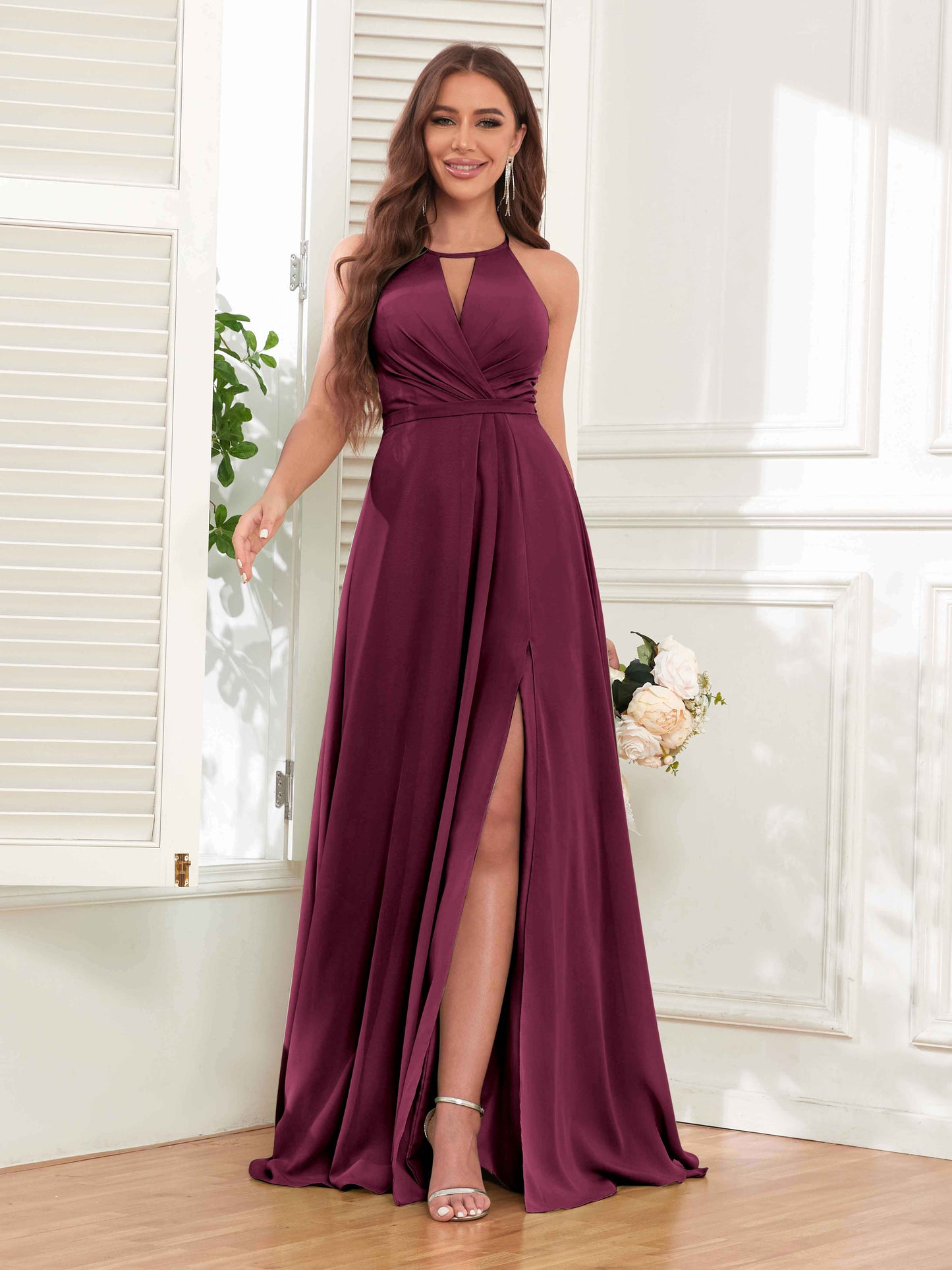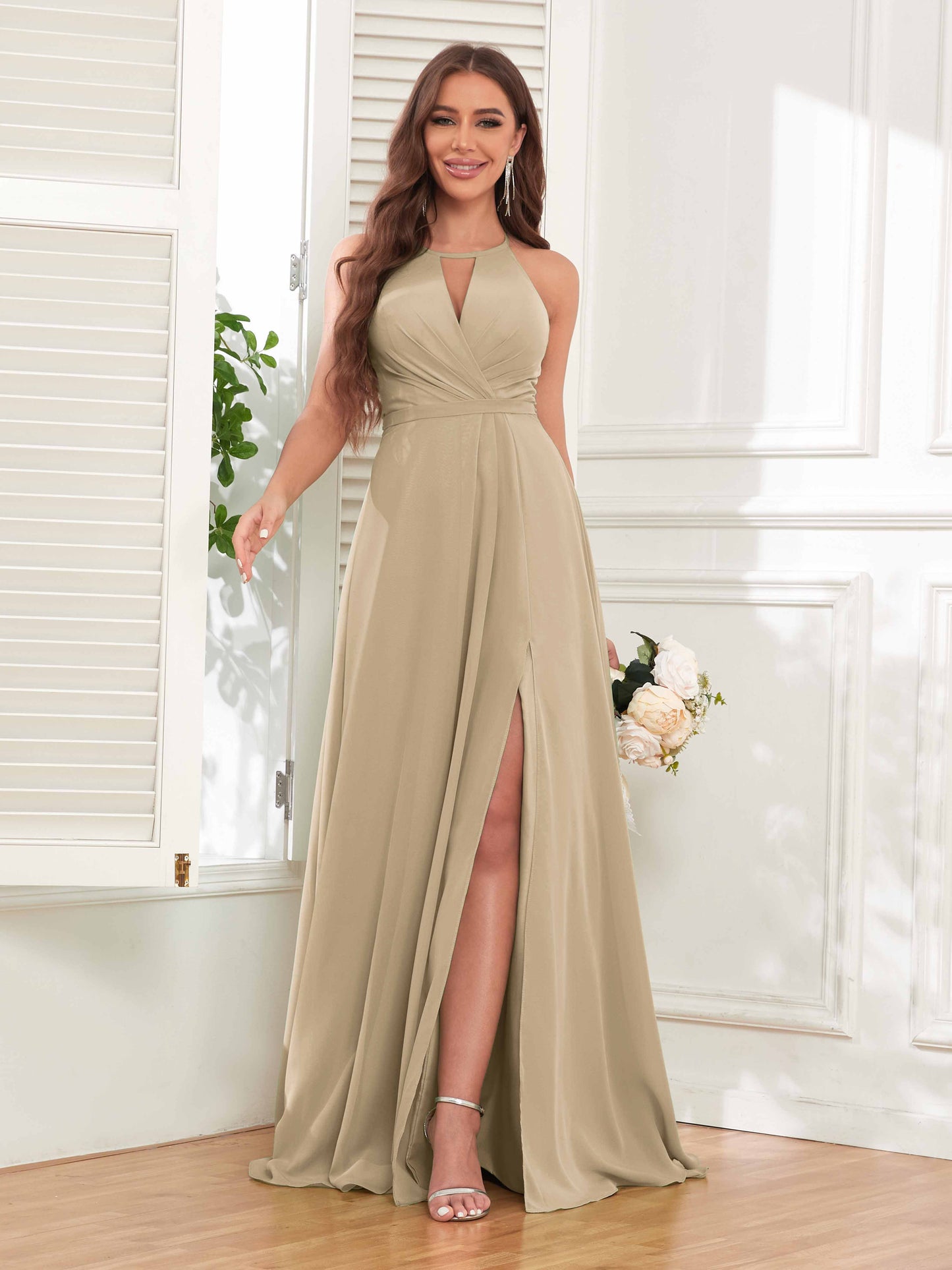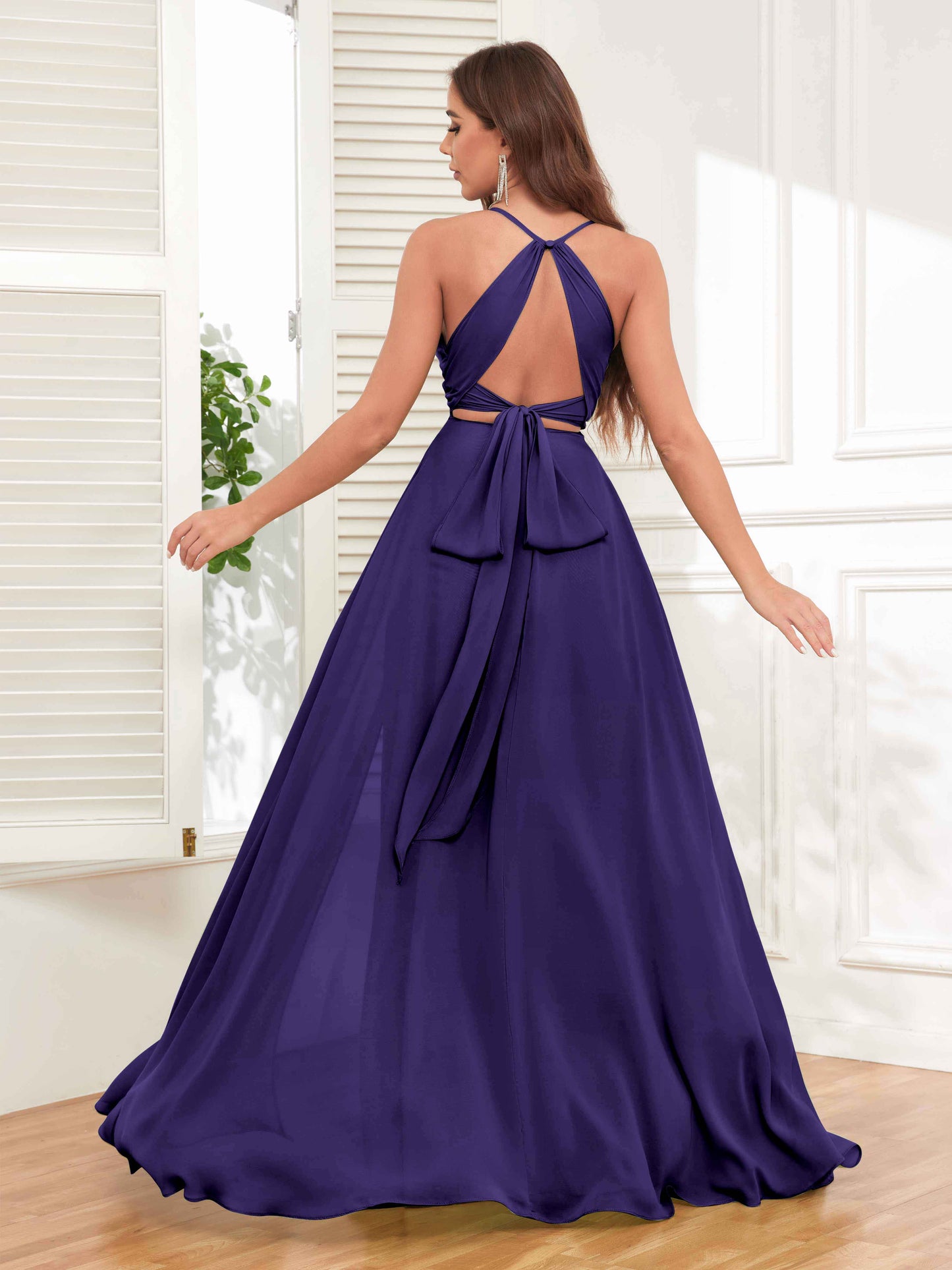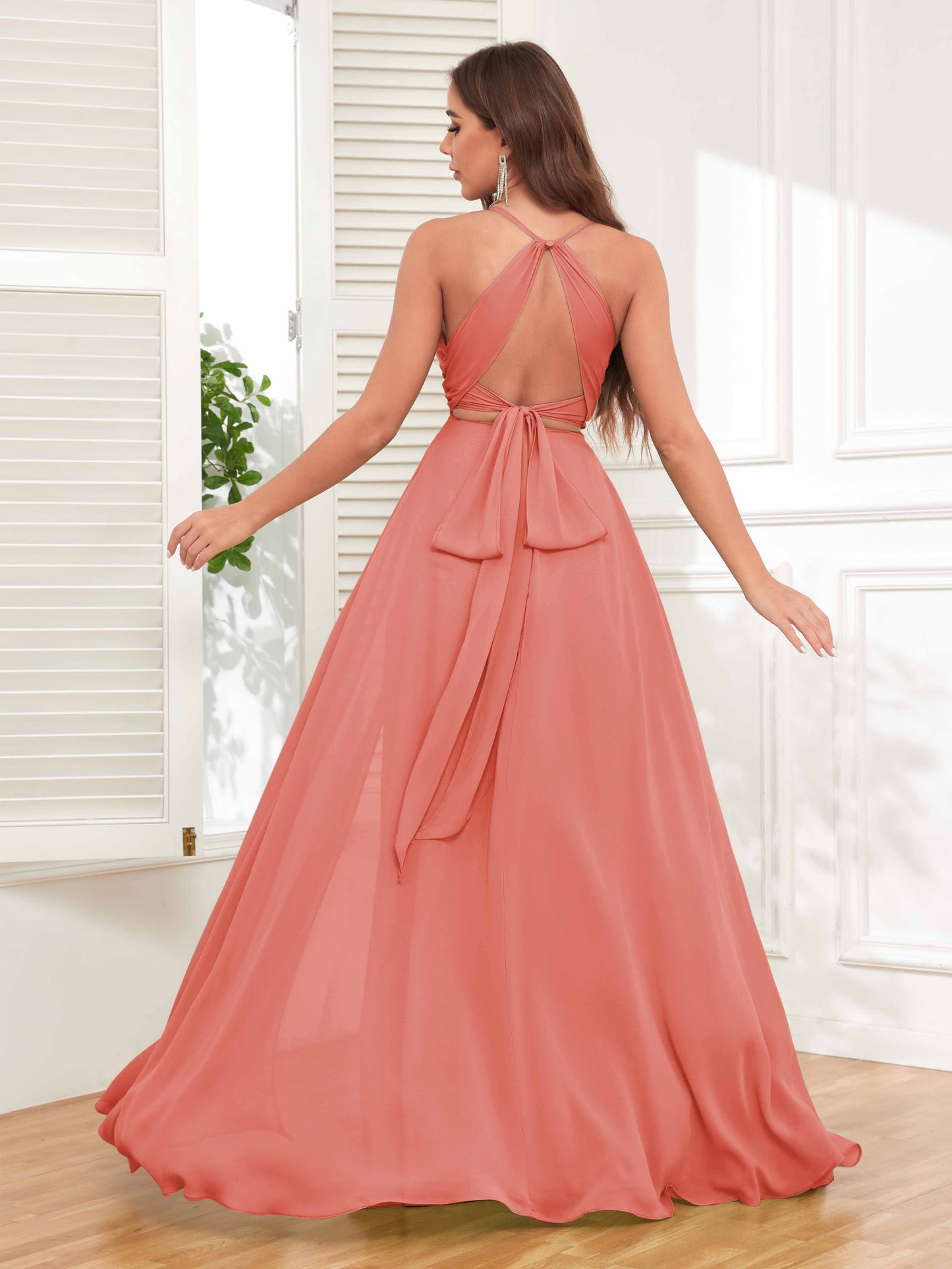 Captivating Halter Sleeveless Bow Back Chiffon Bridesmaid Dresses UK