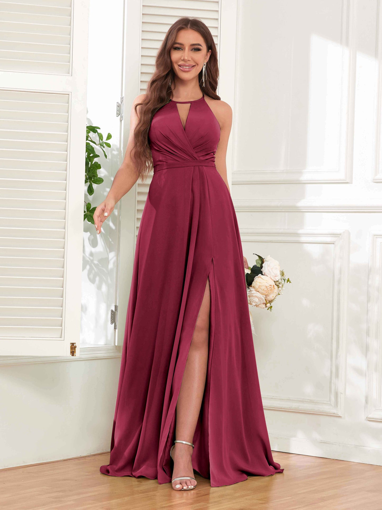 • Make a captivating statement with Mollyevers' halter chiffon bridesmaid dress featuring a sleeveless design and a bow back. The halter neckline adds a touch of sophistication, while the bow back creates a feminine and playful look. This dress is perfect for those who want to exude charm and support the bride in style.