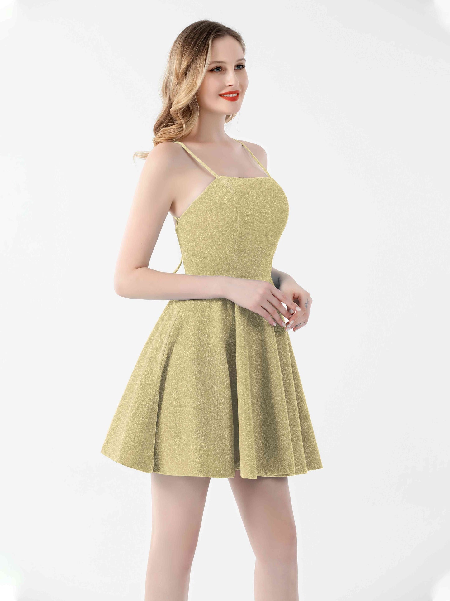 • Captivate the crowd with Mollevers' mesmerizing Spaghetti Straps Lace Up Mini Glitter Party Dresses UK. These dresses feature captivating spaghetti straps and a lace-up back, exuding glamour and allure.