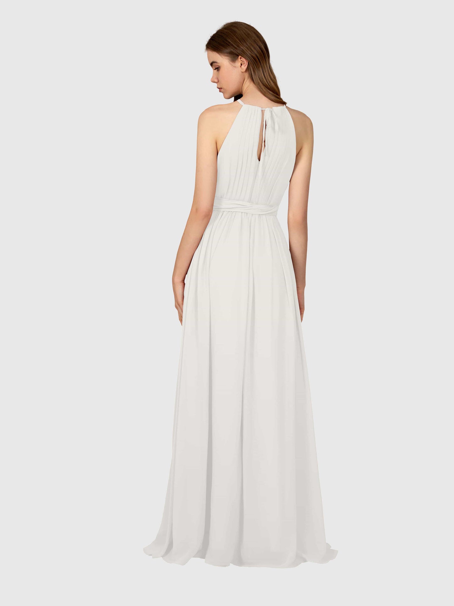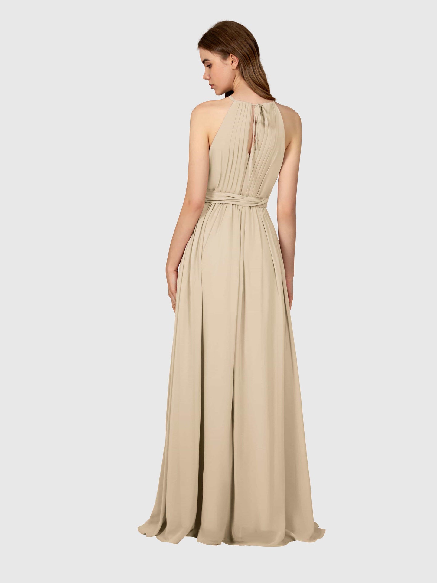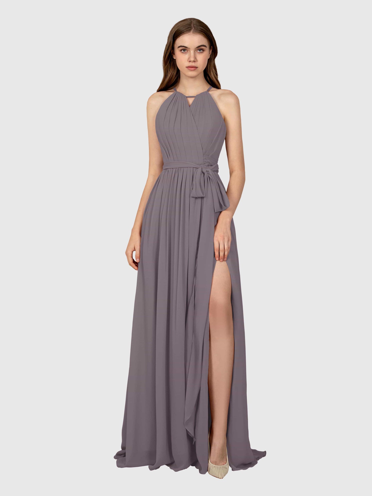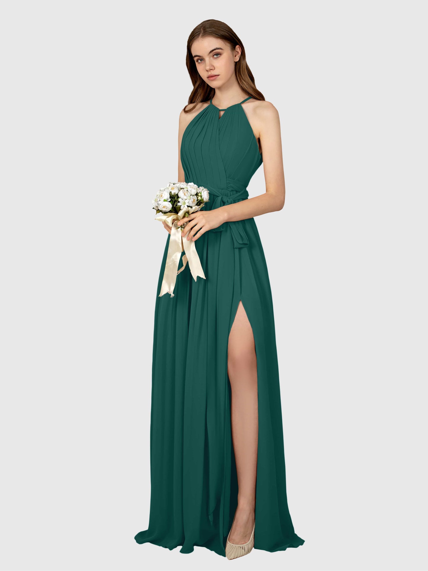 This dress was a total win for my sister's wedding! The chiffon flows so nicely, and the halter neck made it super flattering. Got tons of compliments all night.