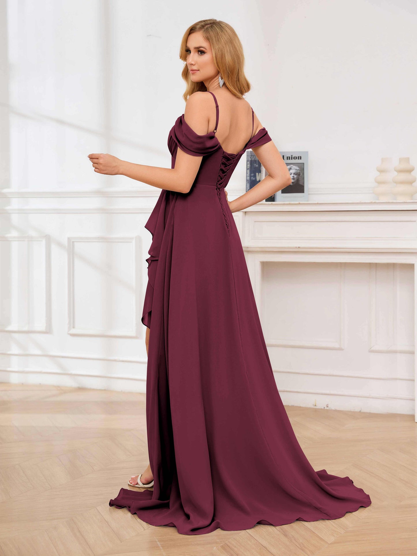The moment I saw my bridesmaids in this dress, I was over the moon. The chiffon drapes beautifully, and the slit adds a hint of playfulness without being too daring. Perfect for an afternoon garden wedding. Shipping was quick and the quality exceeded my expectations.