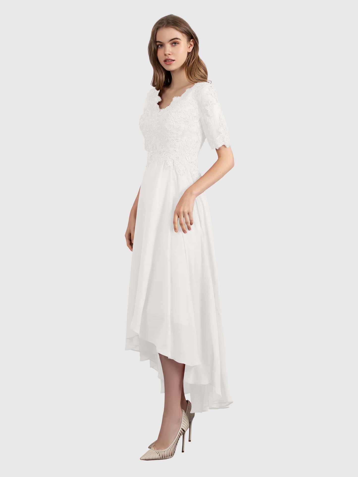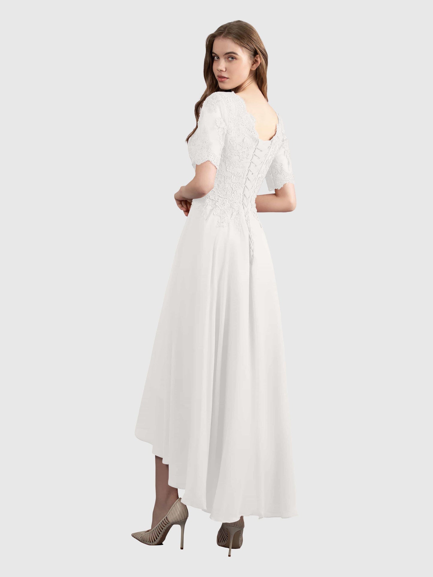 Honestly, this dress made me feel like I belonged in a wedding magazine. The short sleeves were perfect for an afternoon ceremony, and the chiffon moves gorgeously. I also appreciated that it wasn't clingy-always a bonus after a few glasses of fizz. Couldn't recommend it more!