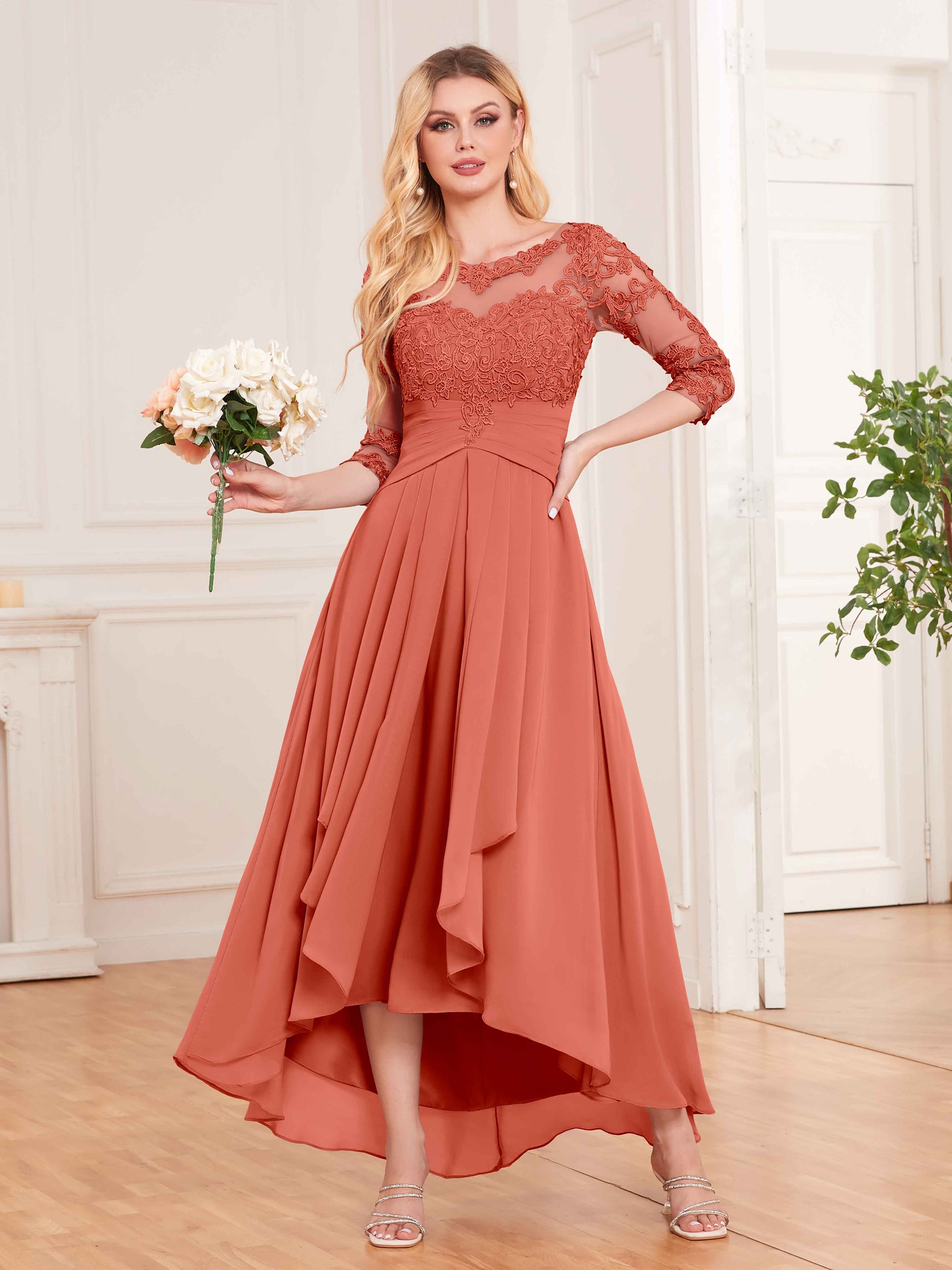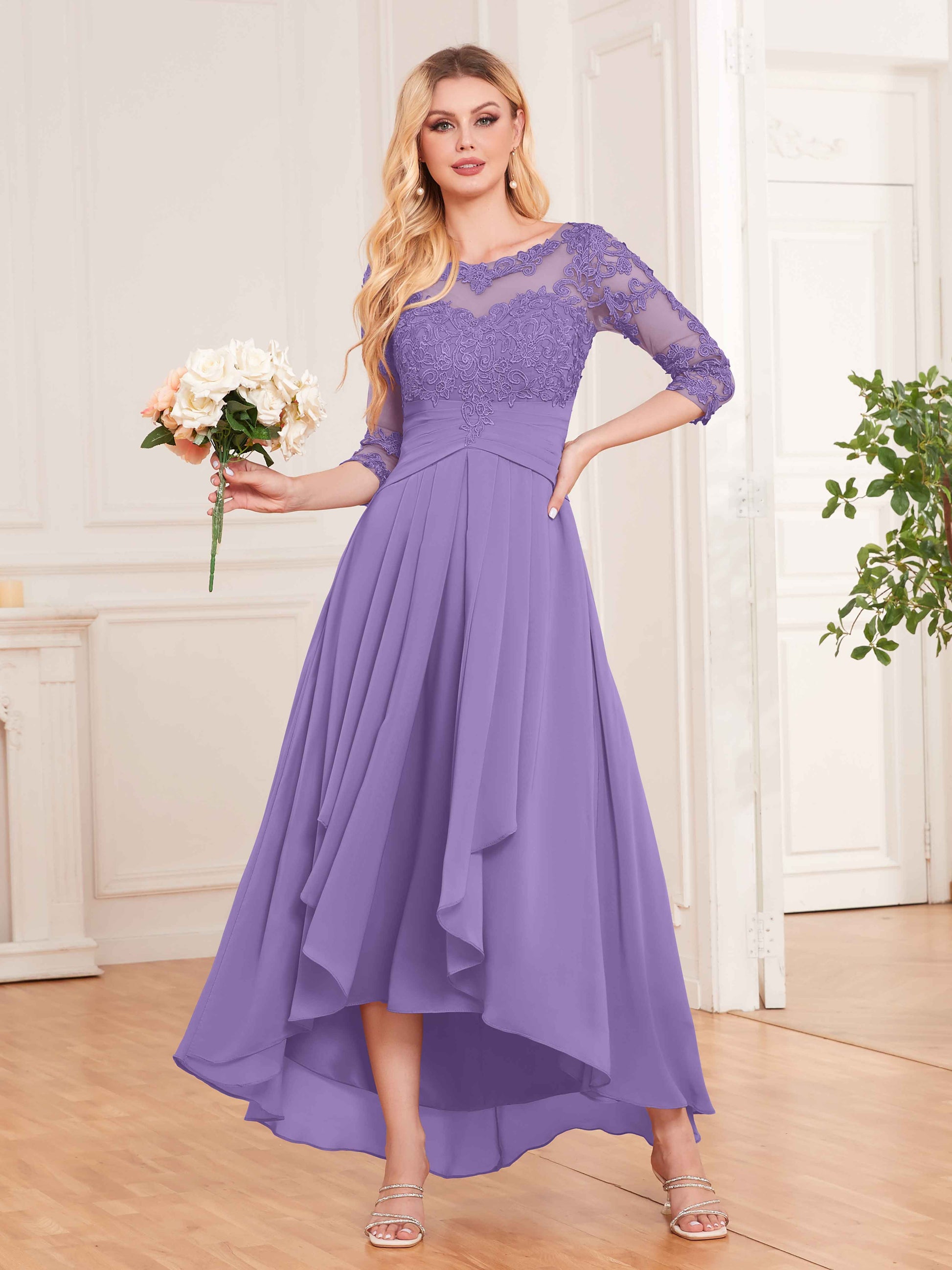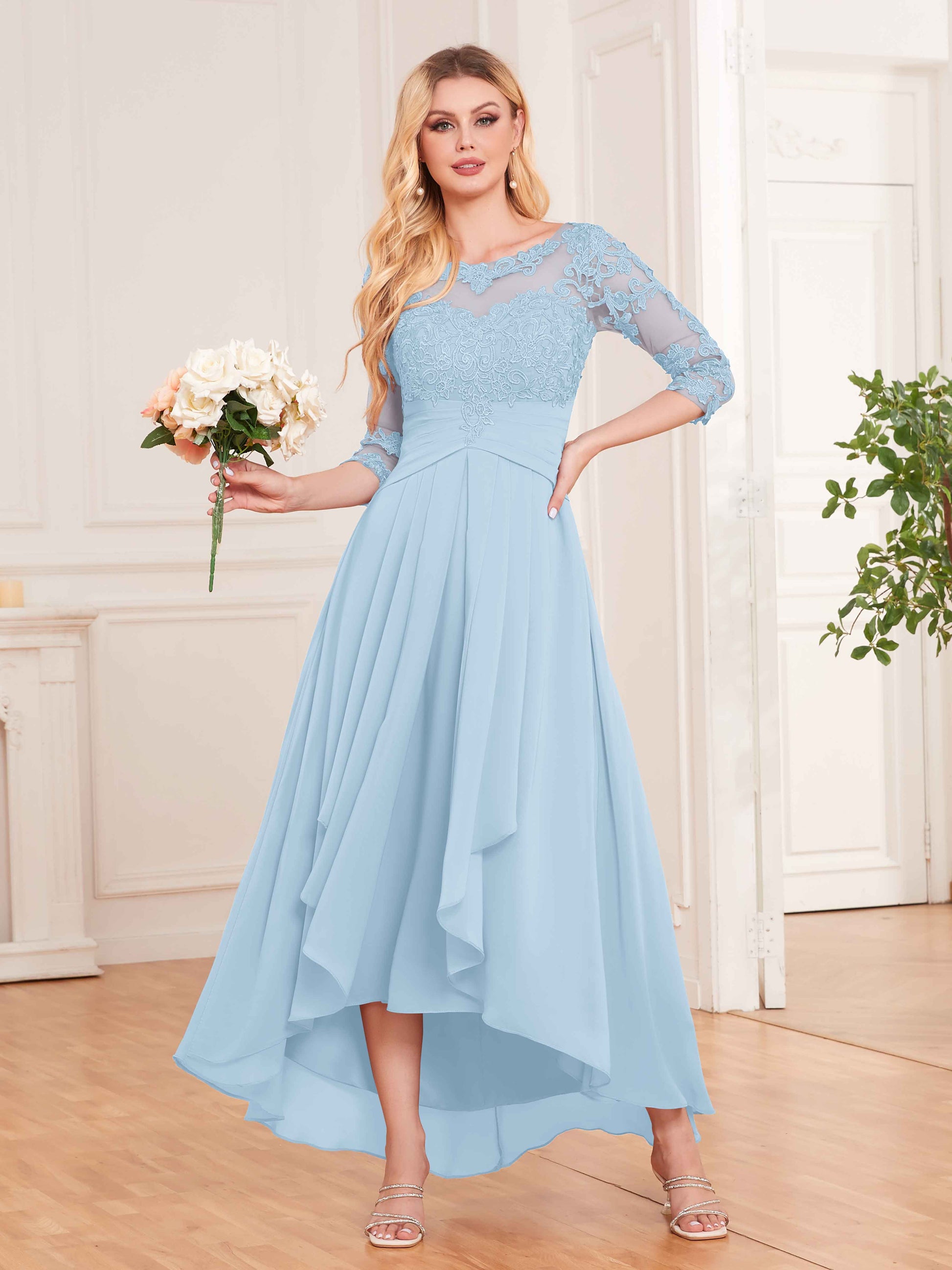 Chic Illusion Lace Half Sleeves High Low Chiffon Bridesmaid Dresses UK