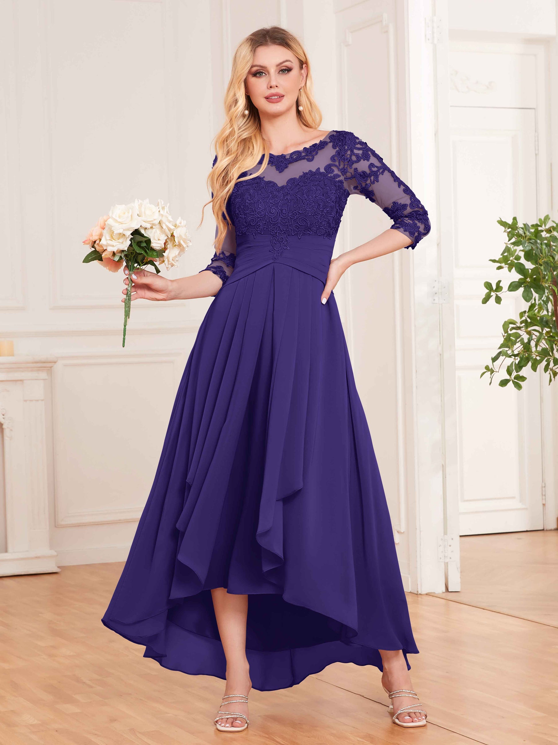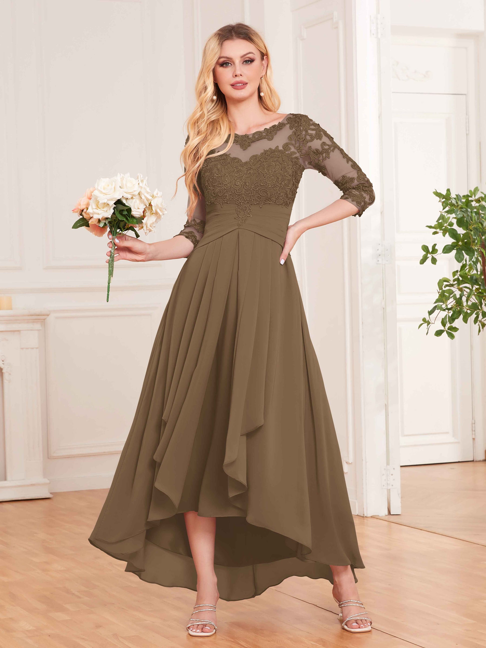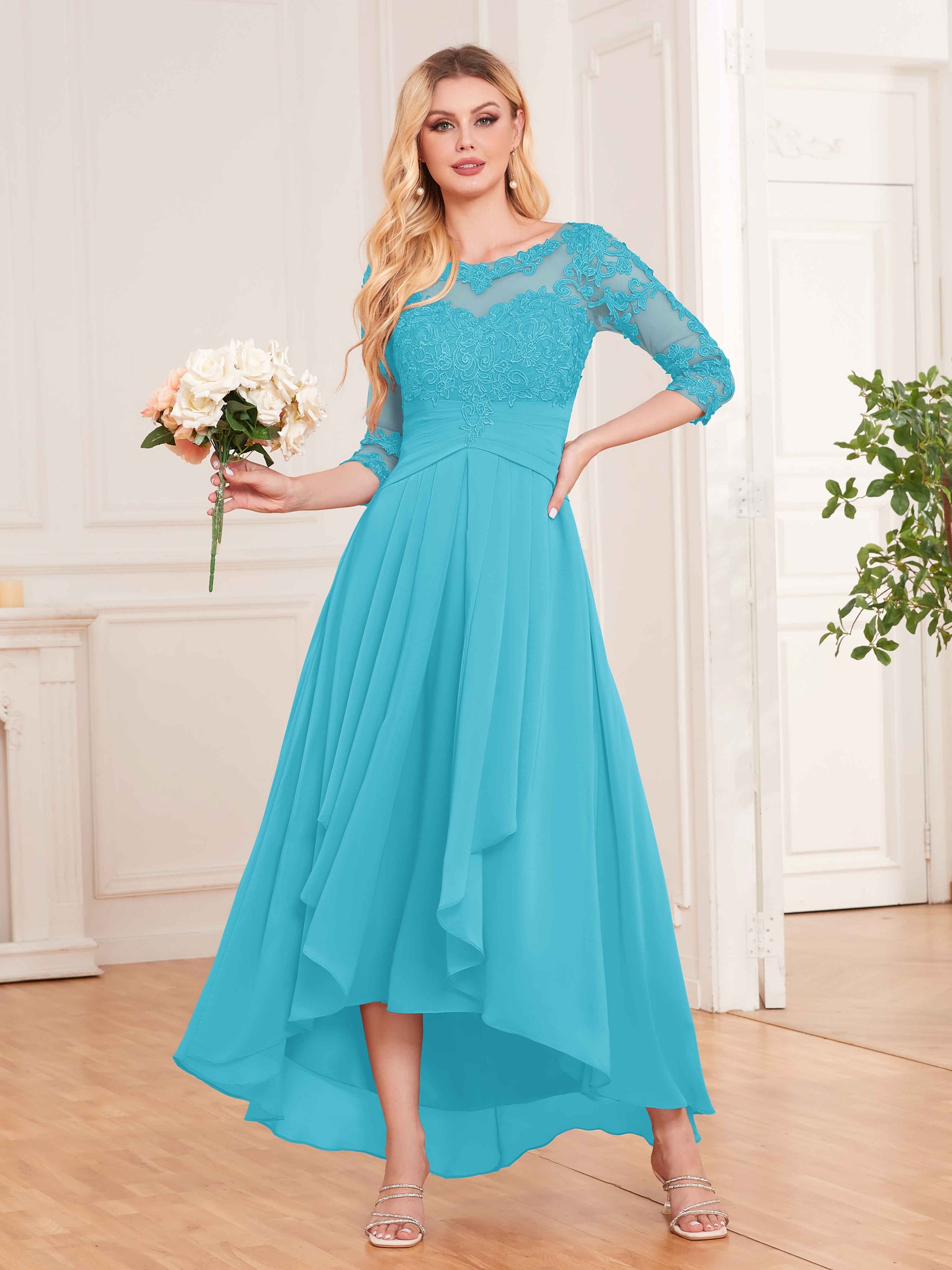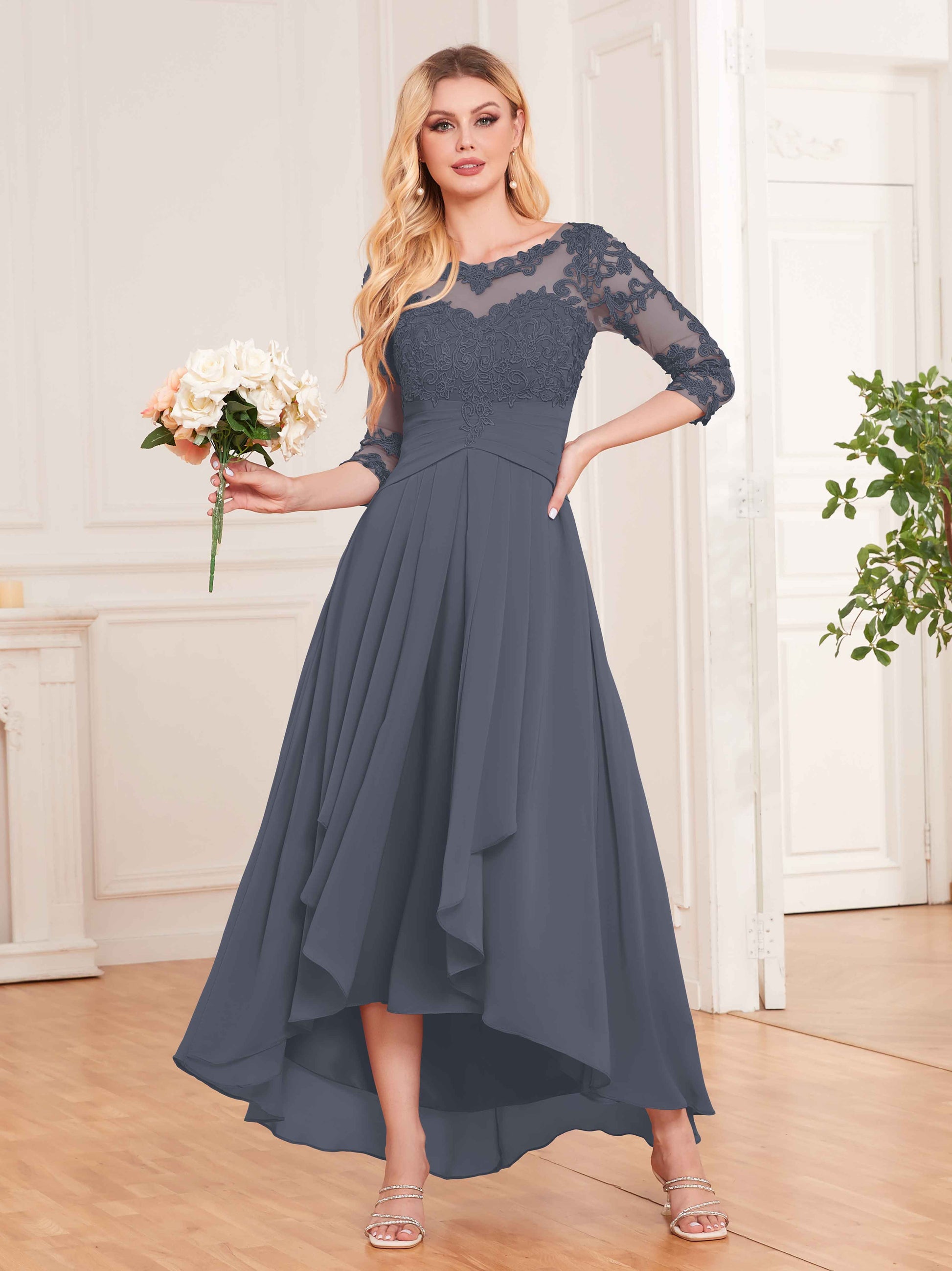 Chic Illusion Lace Half Sleeves High Low Chiffon Bridesmaid Dresses UK