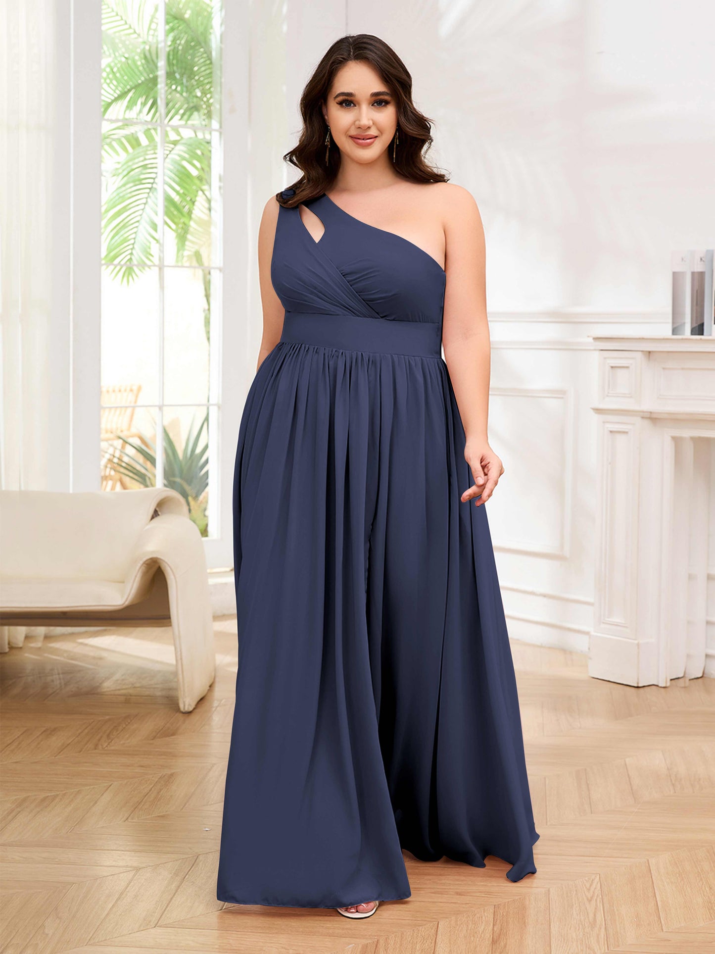 Chic One Shoulder Ruched Chiffon Plus Size Bridesmaid Dresses UK