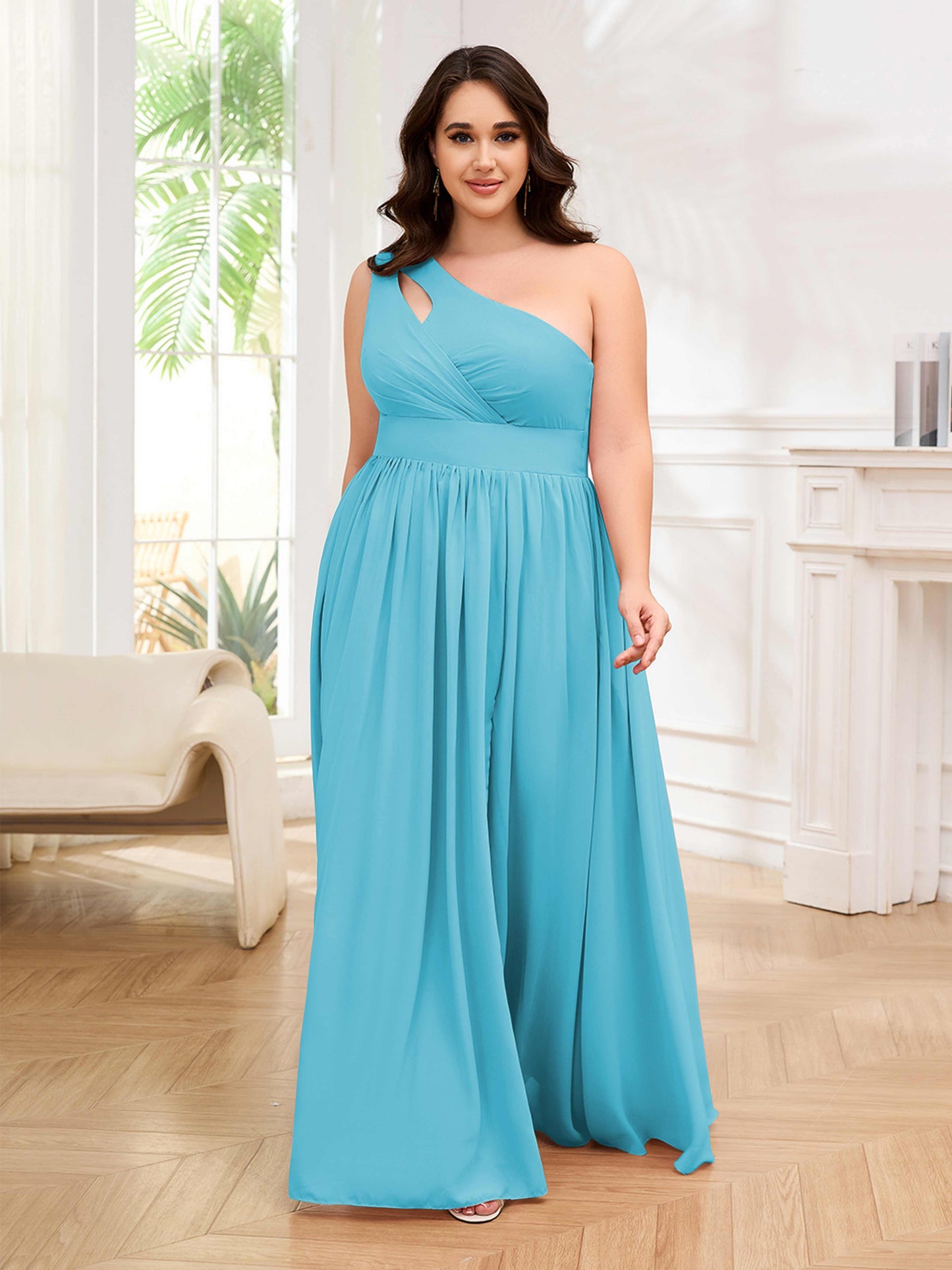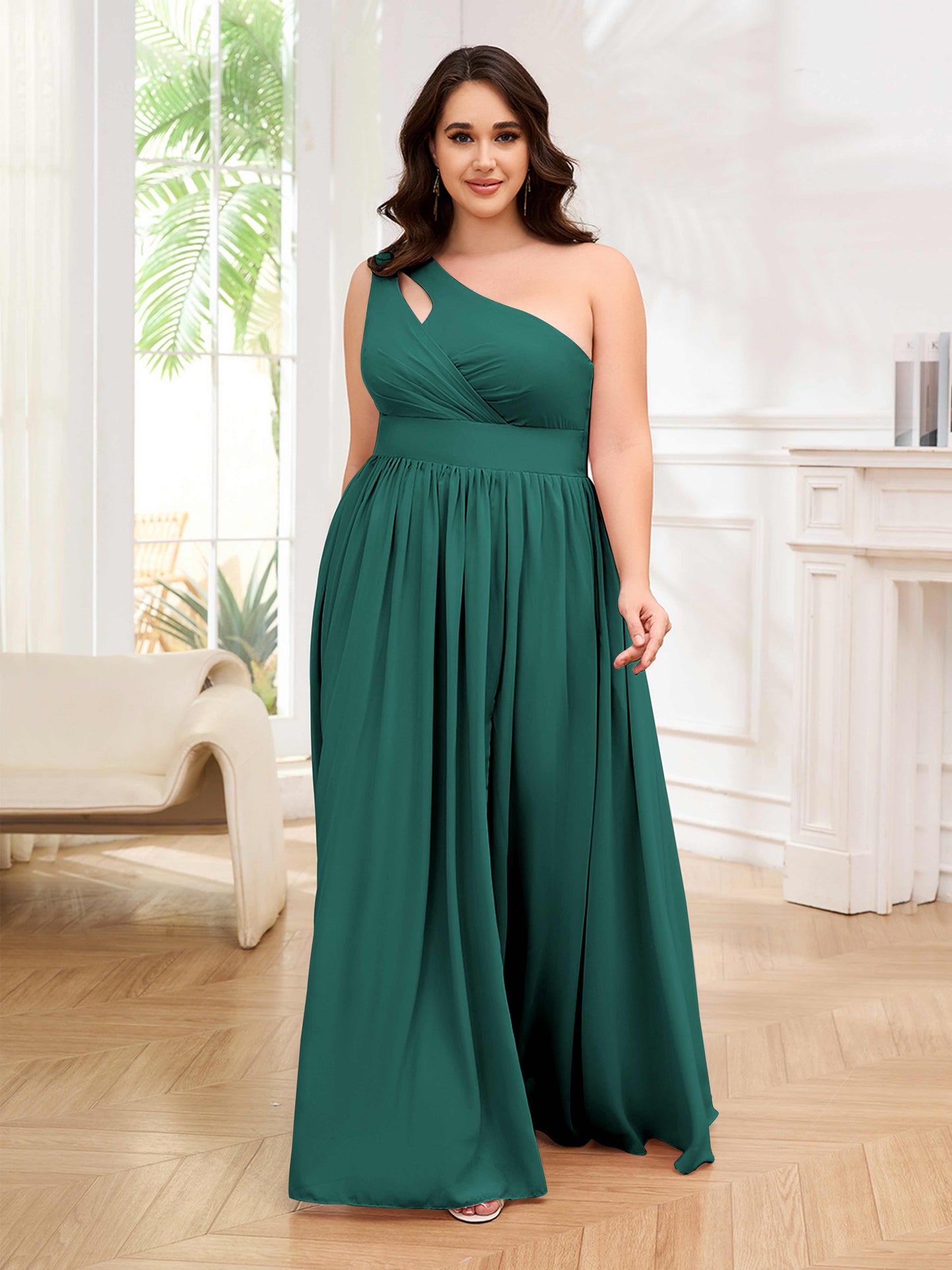 • Turn heads with these chic one-shoulder ruched chiffon bridesmaid dresses. Designed for UK plus-size women, these dresses offer a flattering silhouette and modern style. Perfect for a contemporary wedding, these dresses will make your bridesmaids look effortlessly chic.
