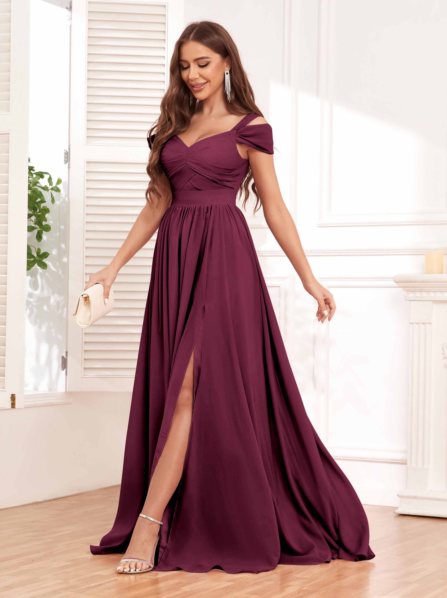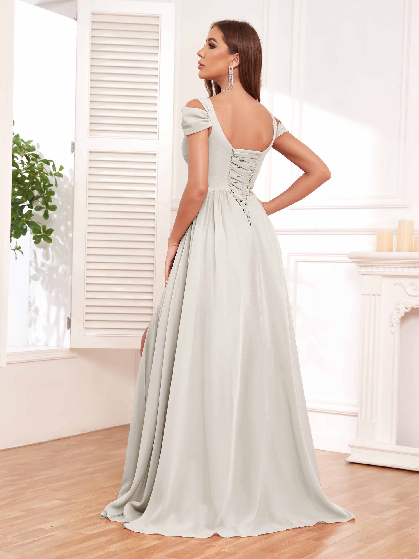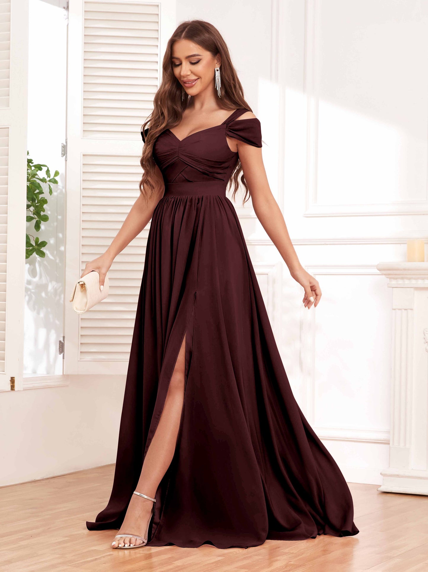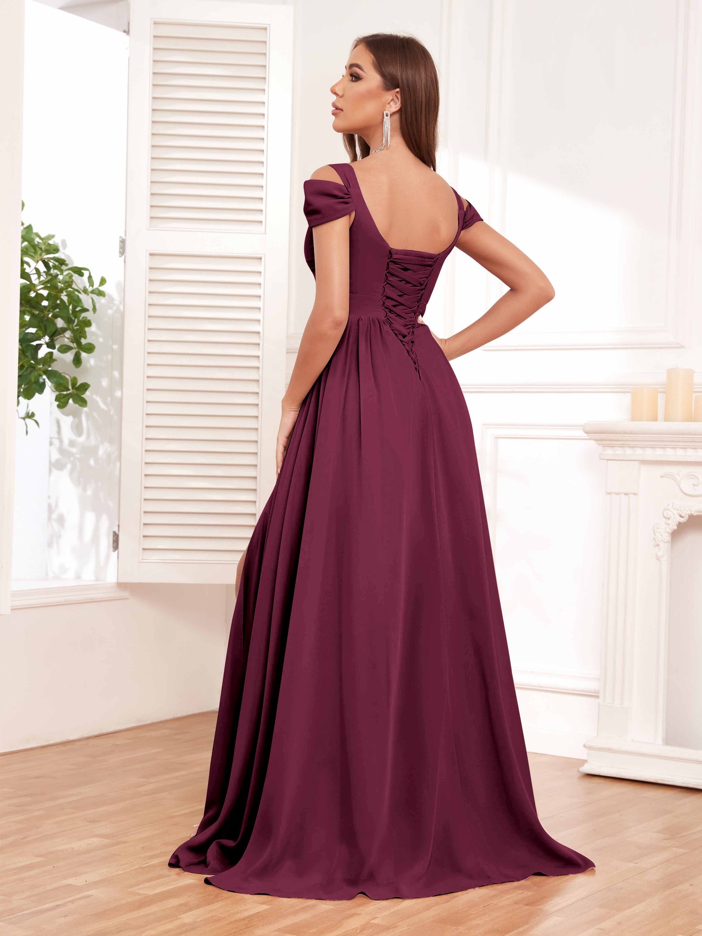 • Elevate your bridesmaid style with the chic and sophisticated Mollyevers' bridesmaid dress. The ruched details accentuate your curves, while the floor-length design exudes timeless elegance. The lace-up back adds a touch of femininity, and the high slit adds a hint of allure.