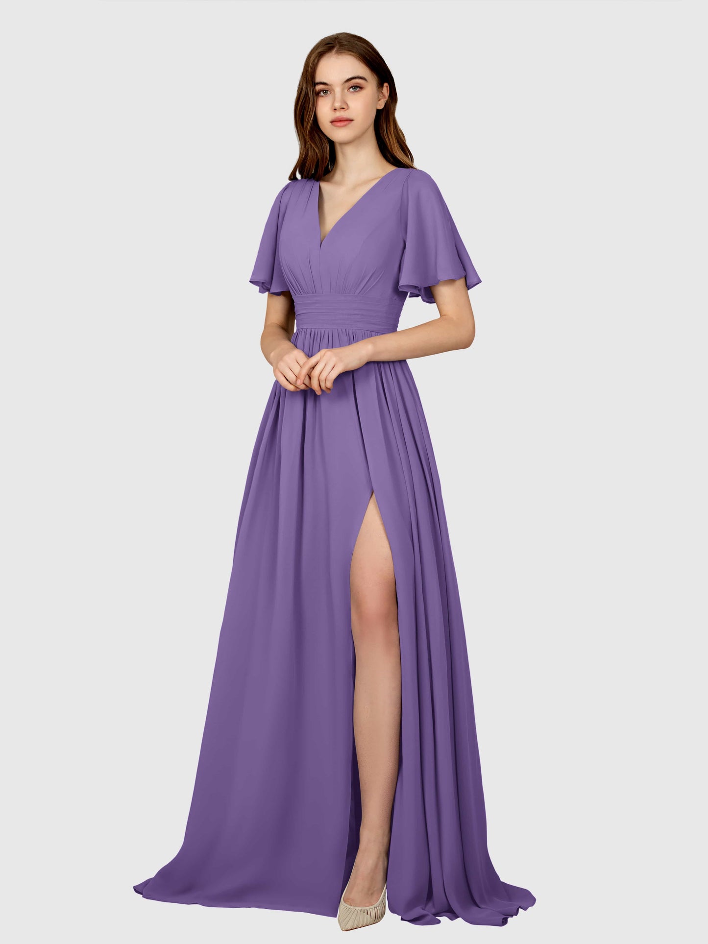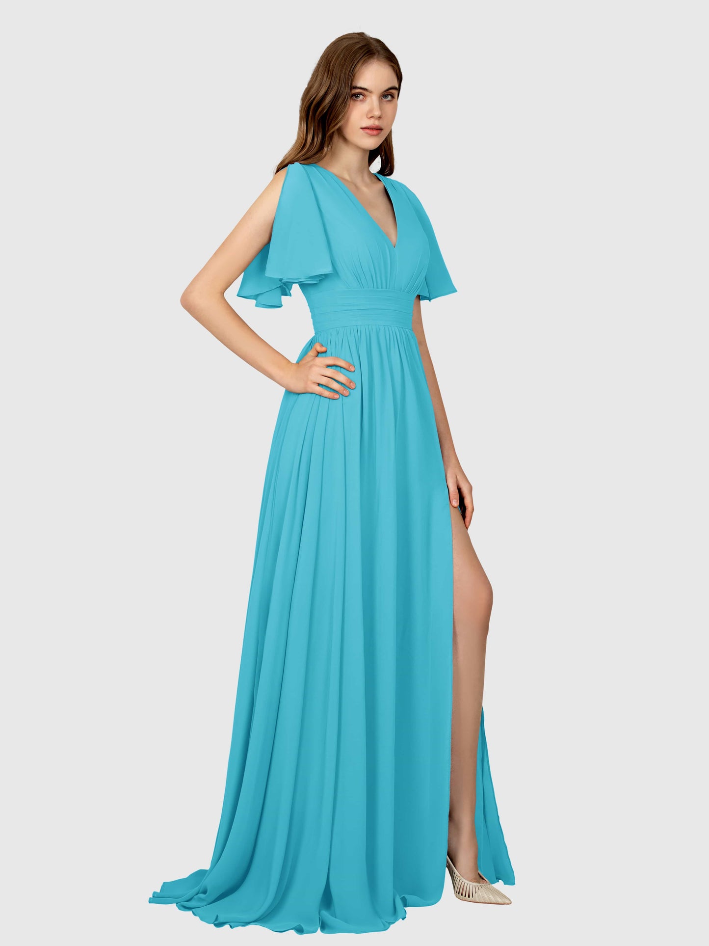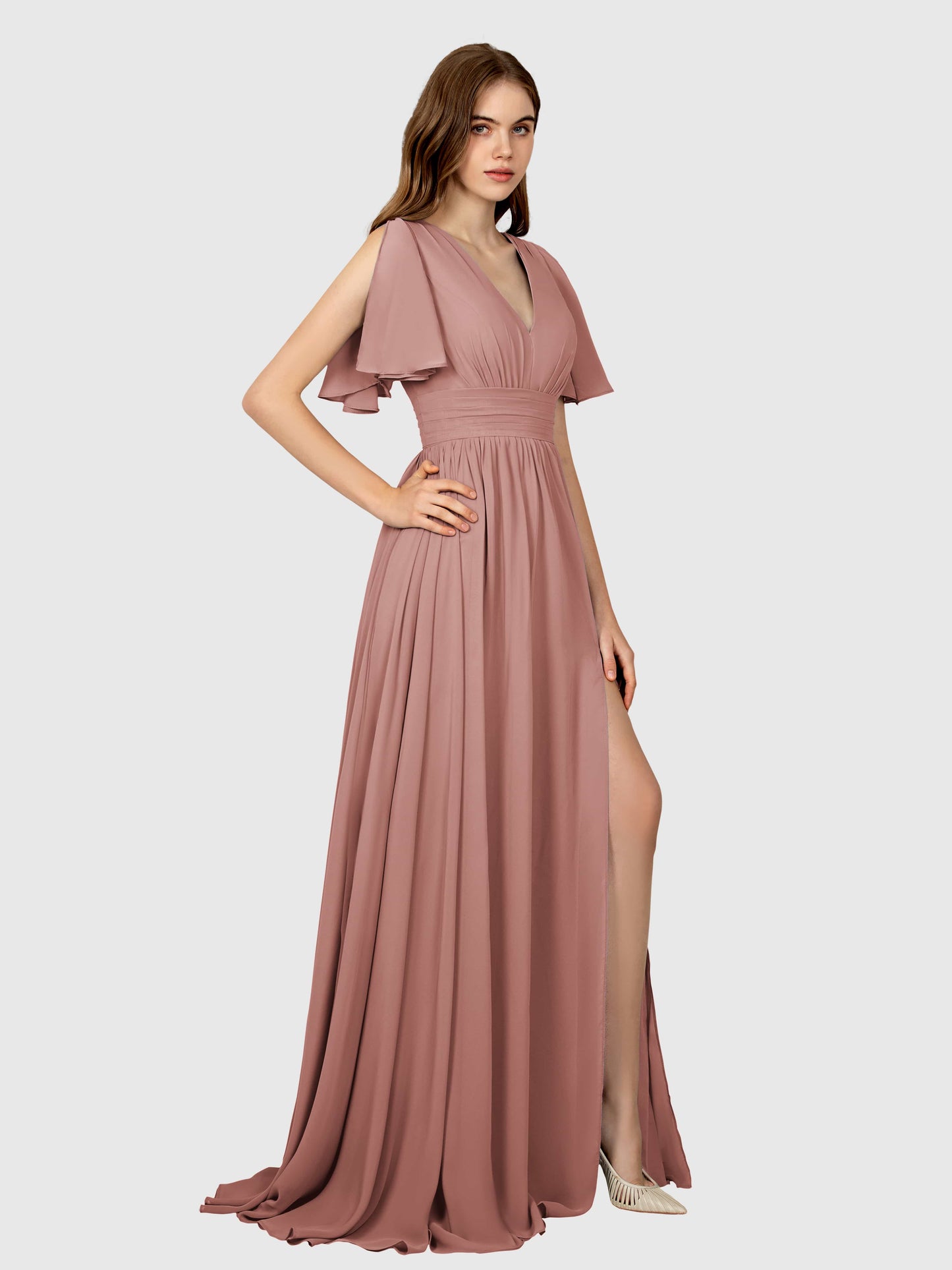 • Experience elegance and allure with Mollyevers' Eleanor Chic V Neck Floor Length Bridesmaid Dresses. Featuring a V-neckline and slit, these dresses offer modern sophistication. Perfect for any wedding, shop now and make a statement with these stunning floor-length gowns.