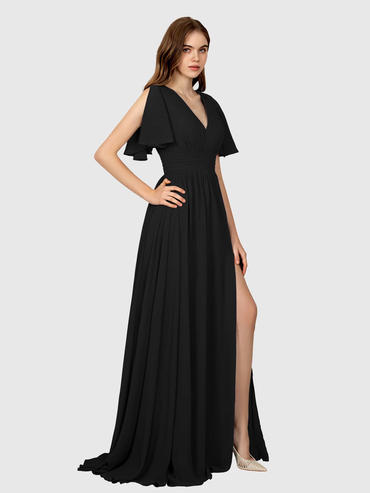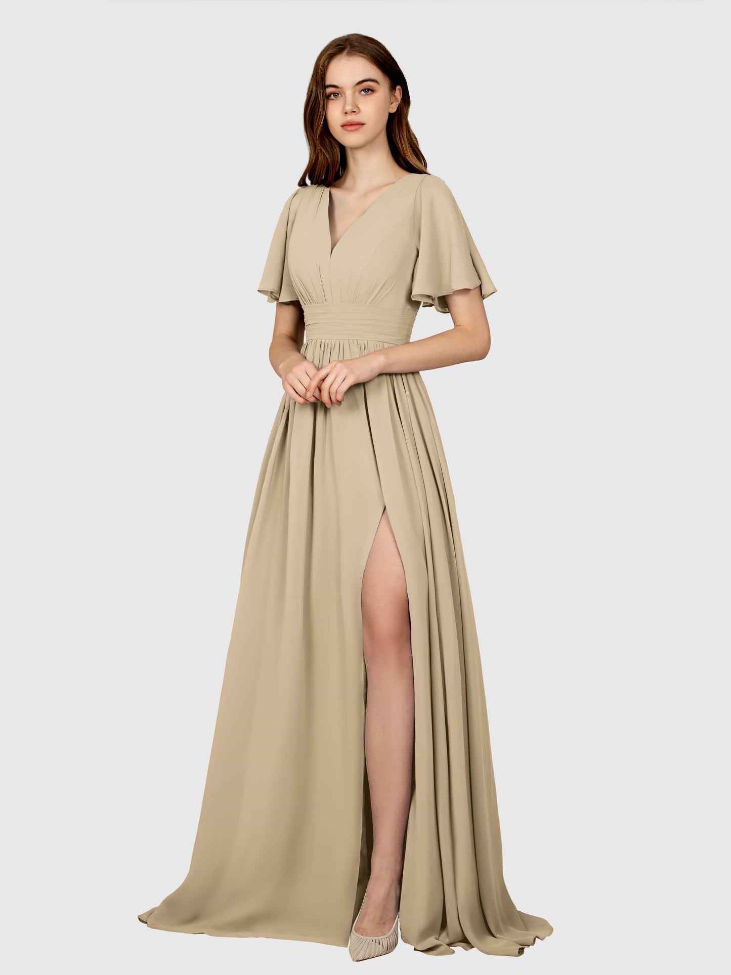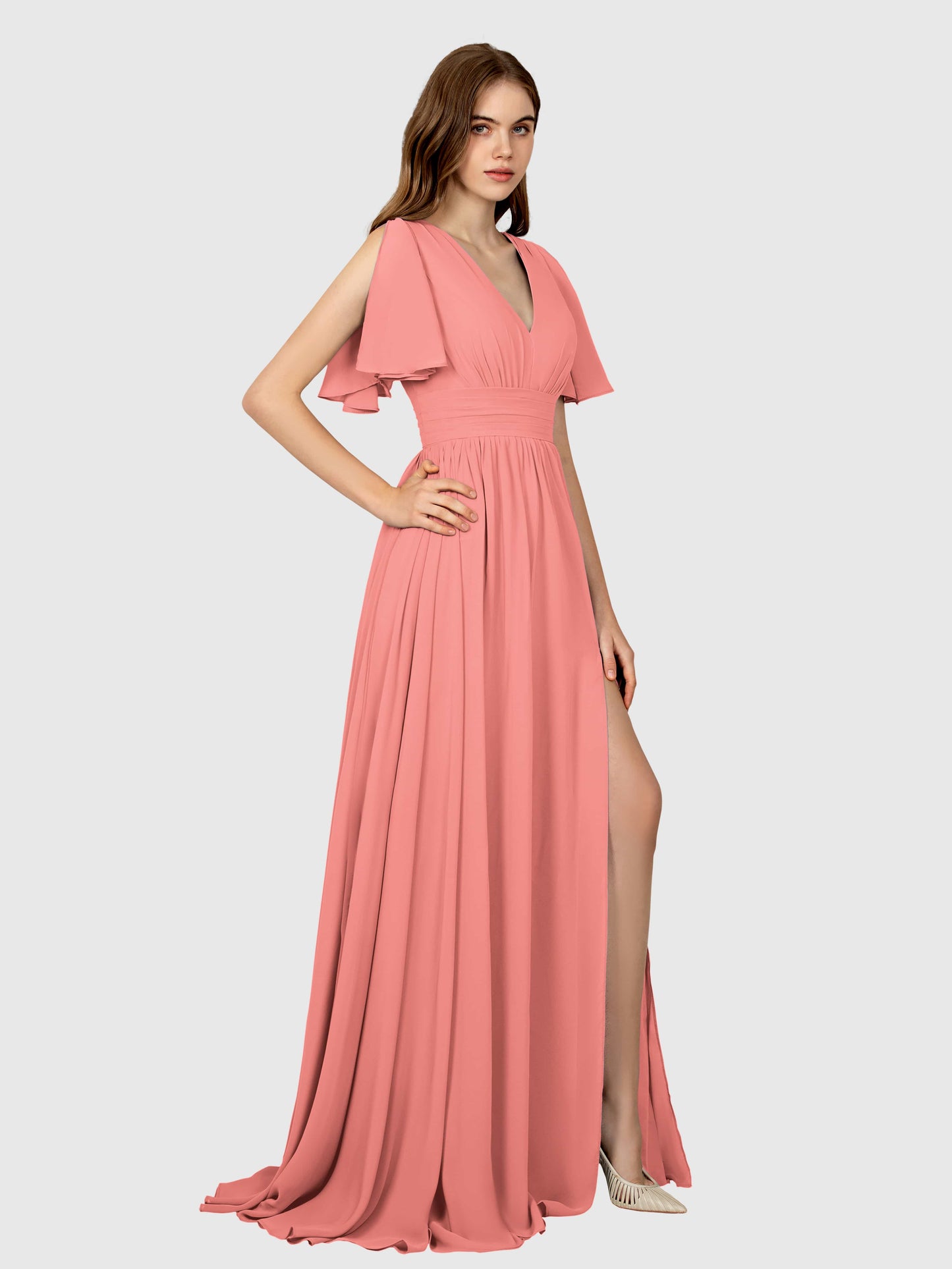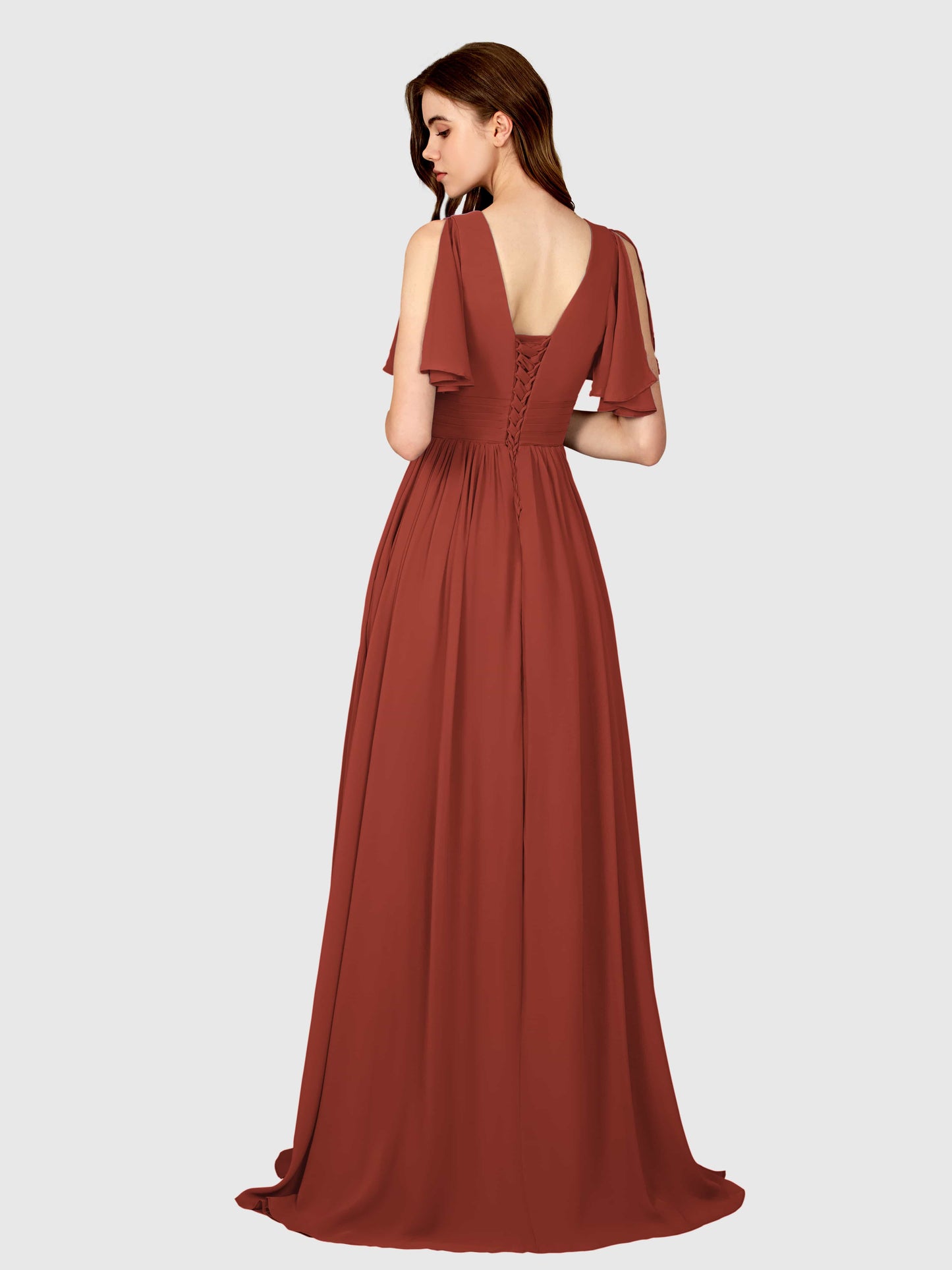 • Experience elegance and allure with Mollyevers' Eleanor Chic V Neck Floor Length Bridesmaid Dresses. Featuring a V-neckline and slit, these dresses offer modern sophistication. Perfect for any wedding, shop now and make a statement with these stunning floor-length gowns.