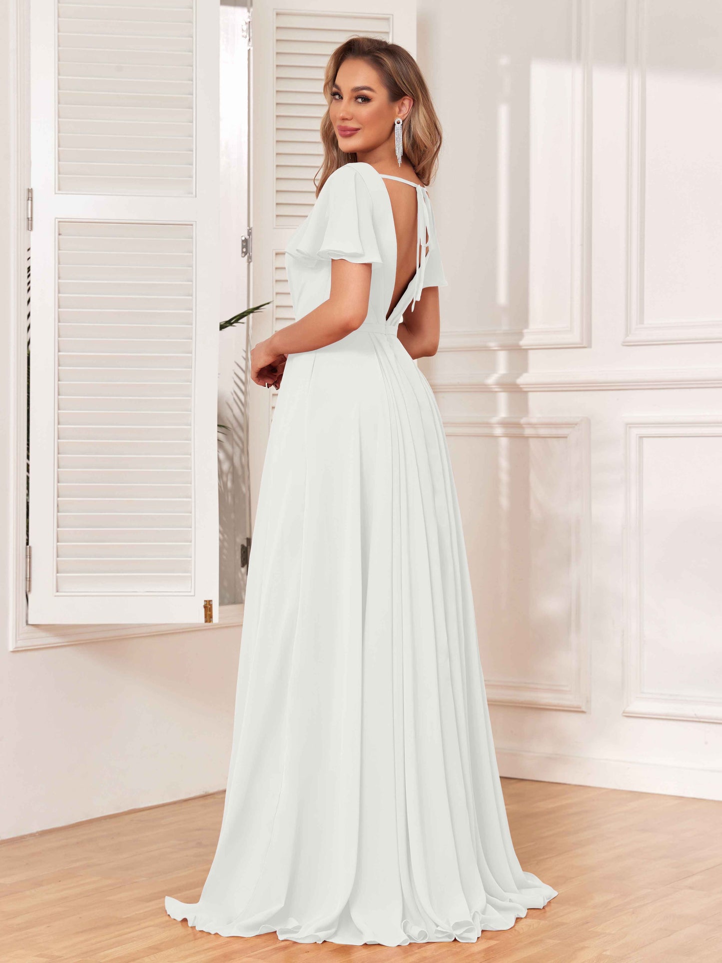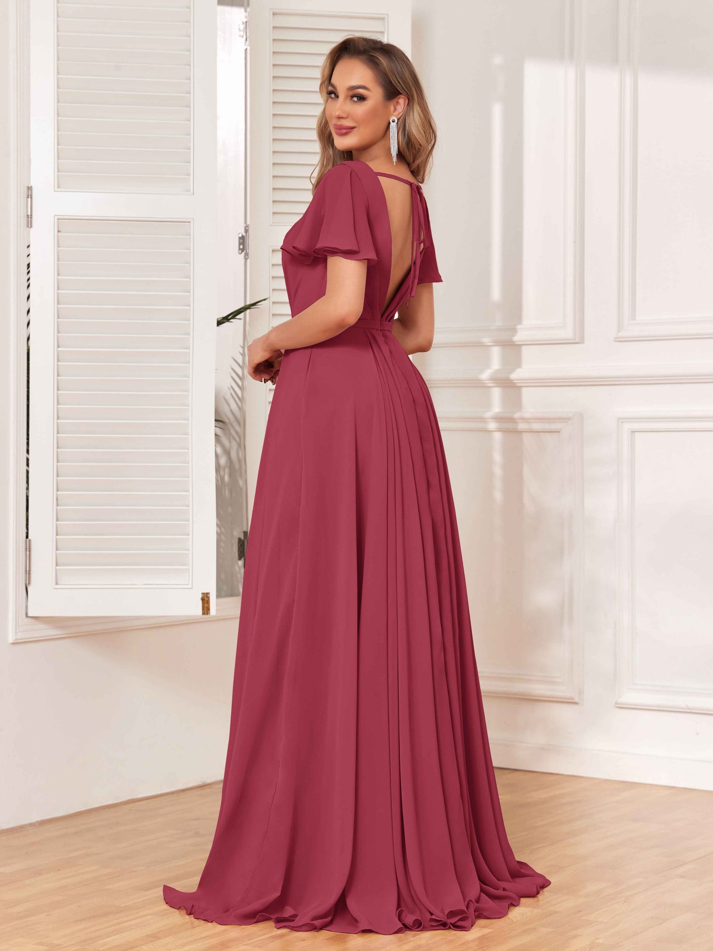 Classy Deep V Neck V Back Ruched Chiffon Bridesmaid Dresses UK