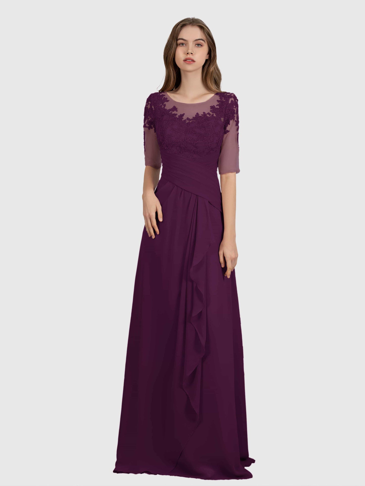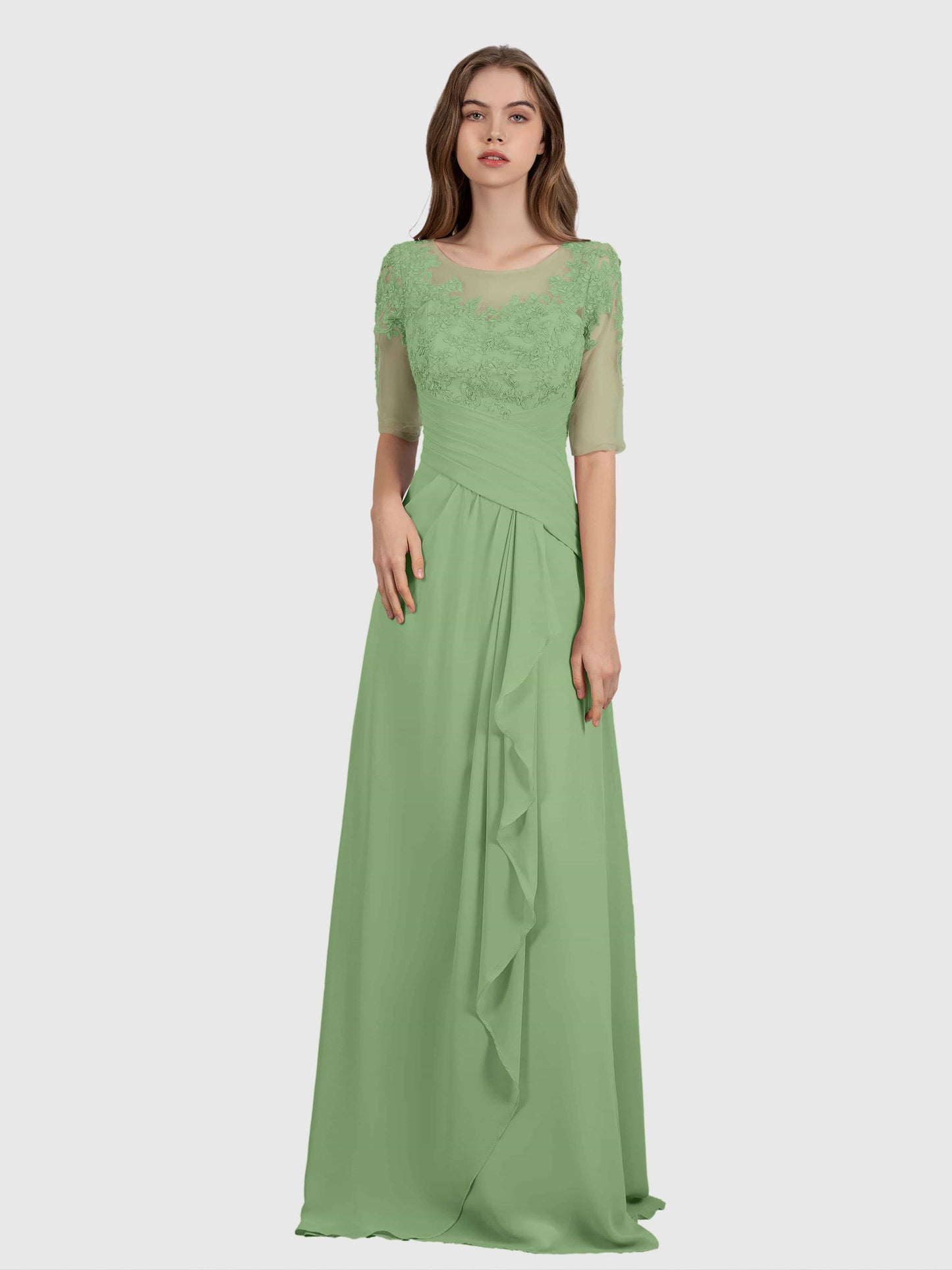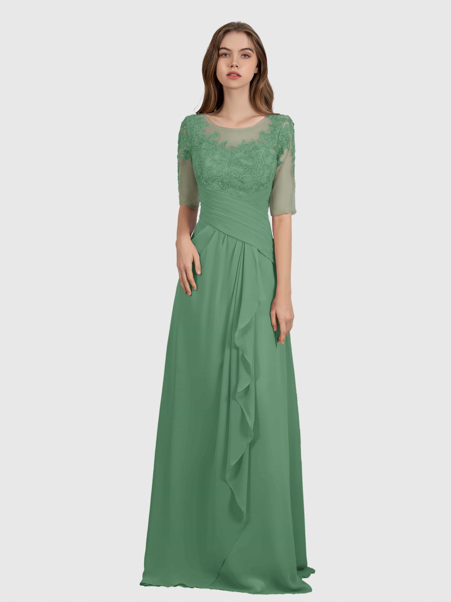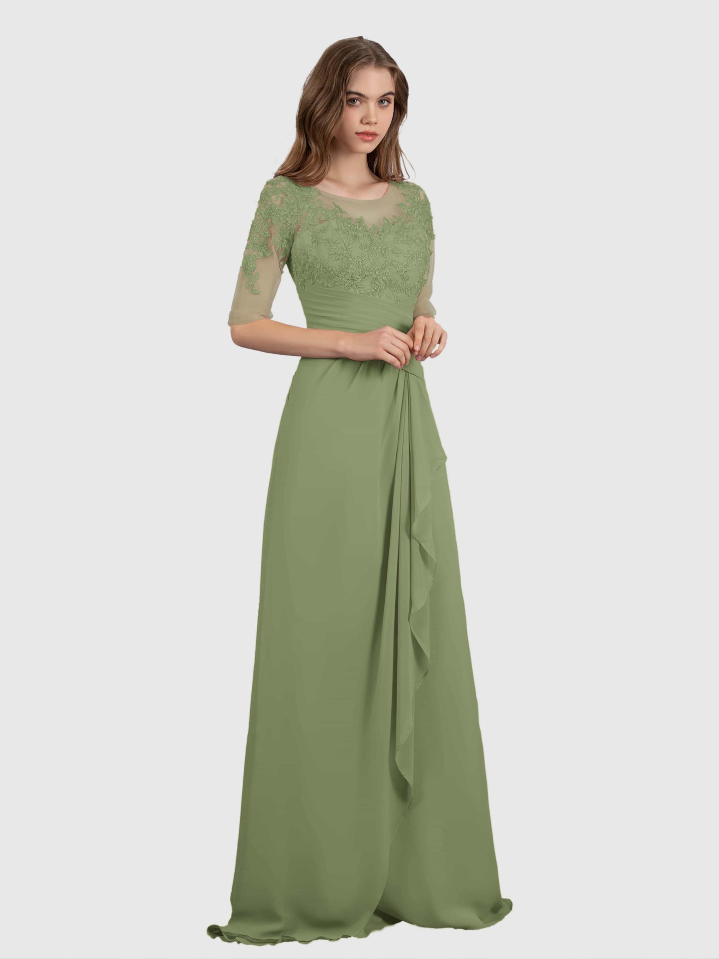 Elegant Illusion Ruffles Lace Chiffon Mother Of The Bride Dresses UK