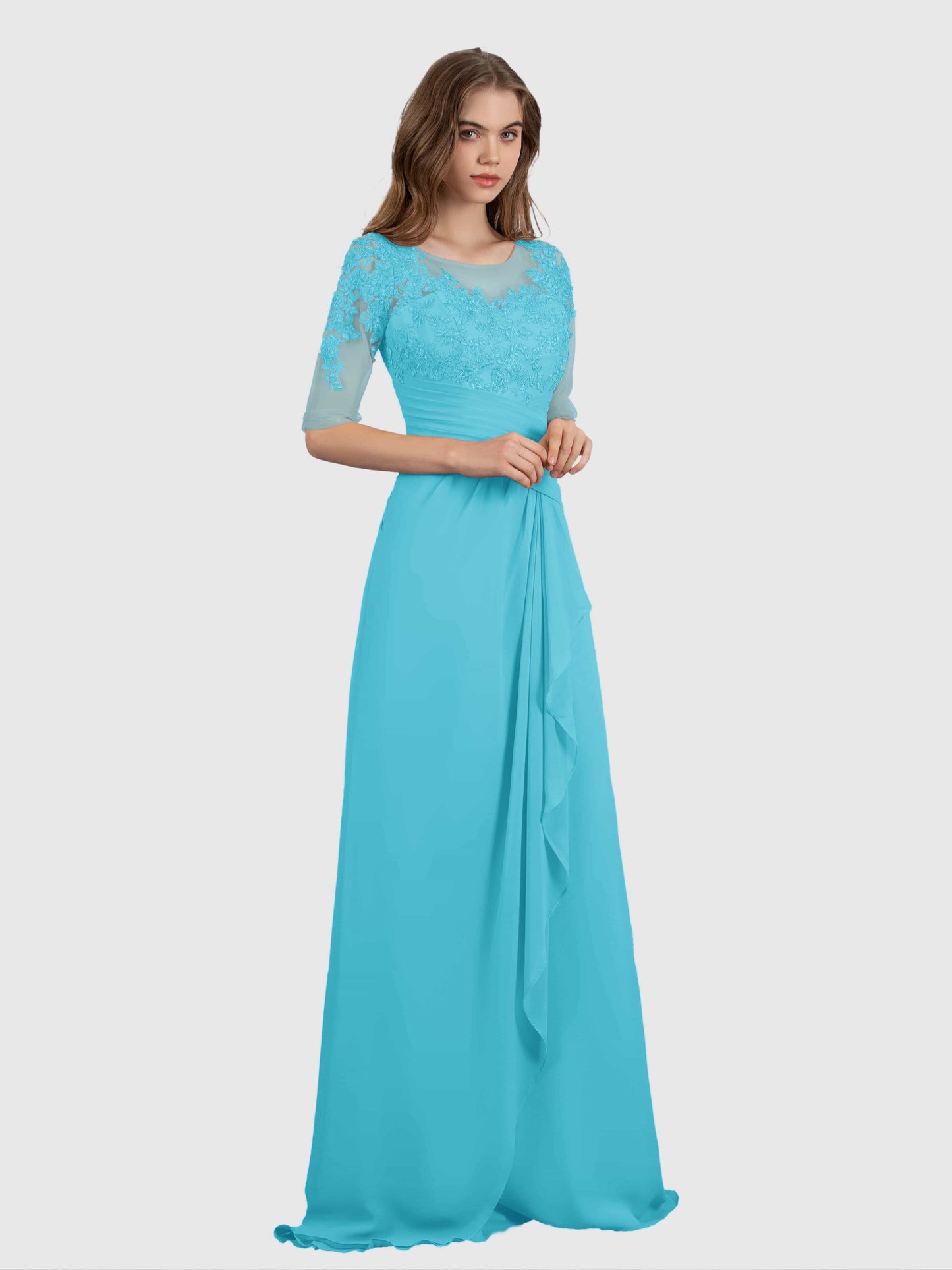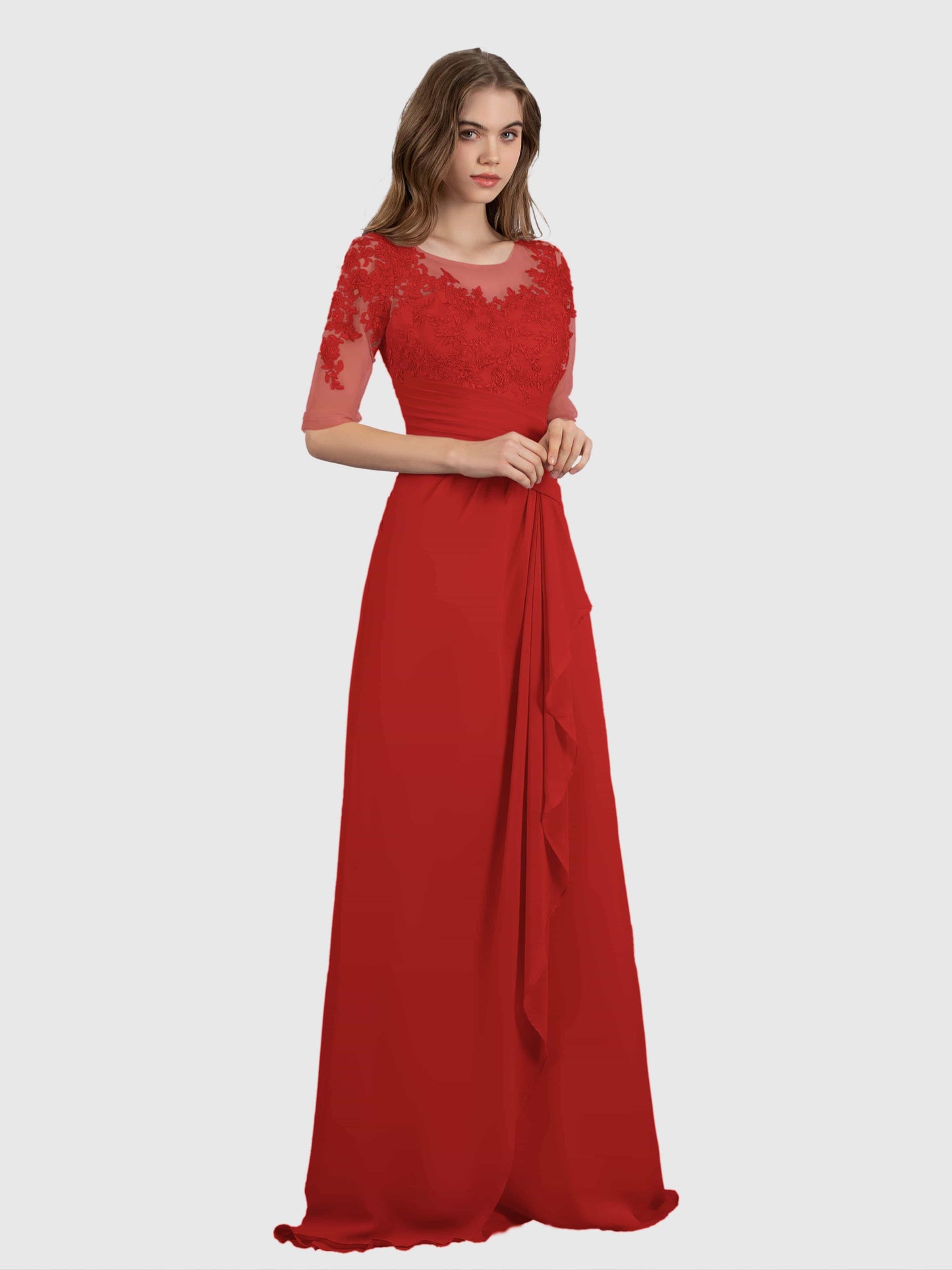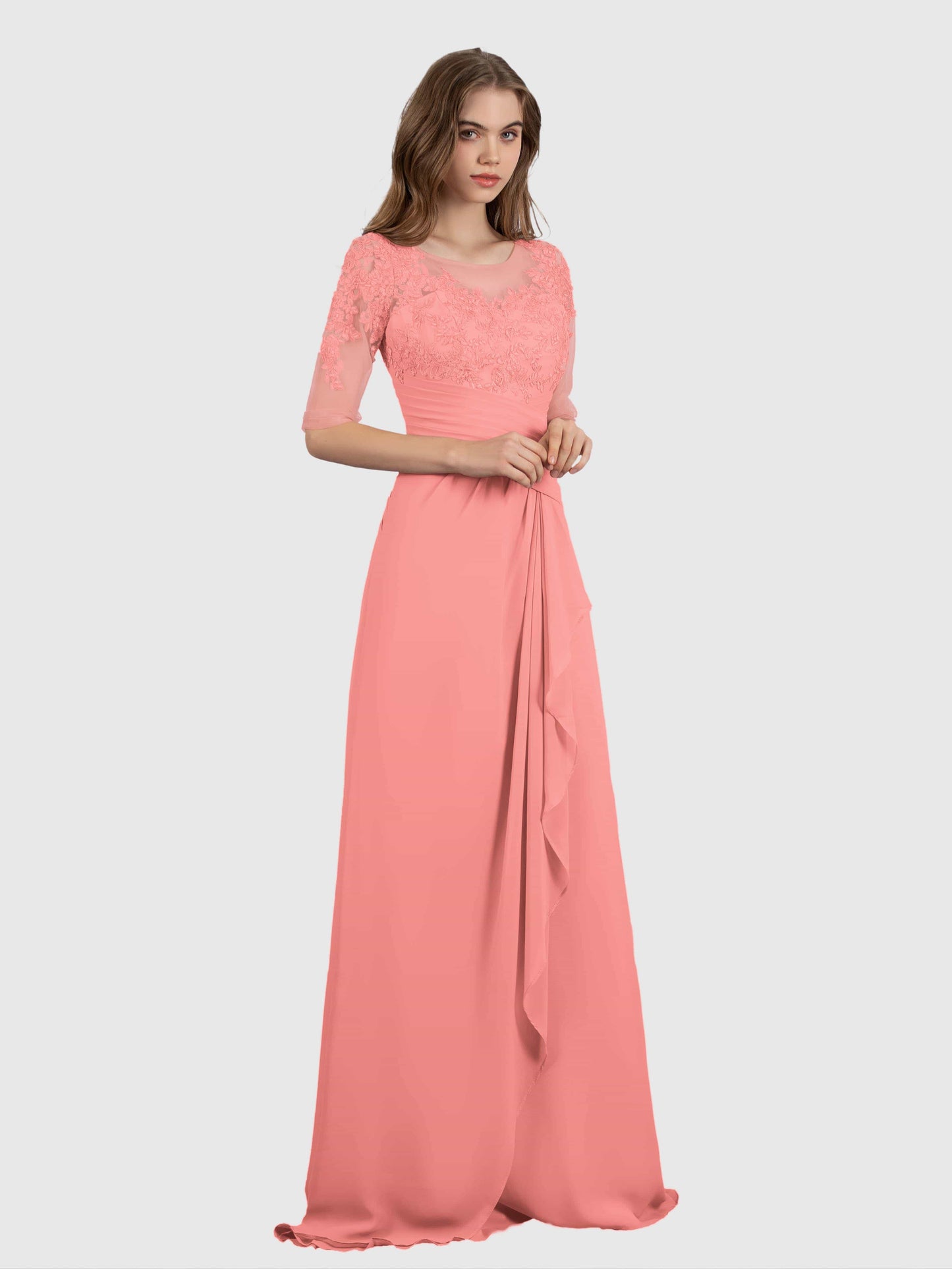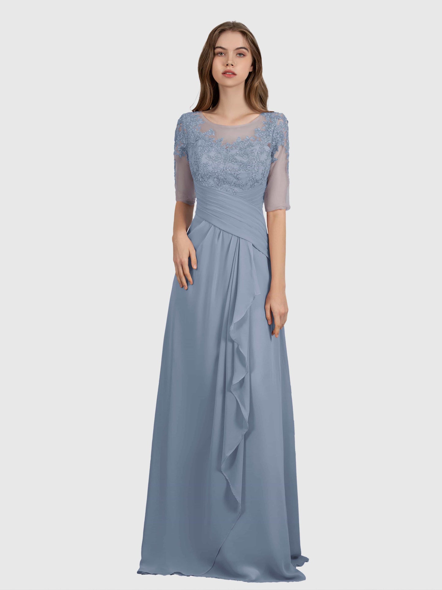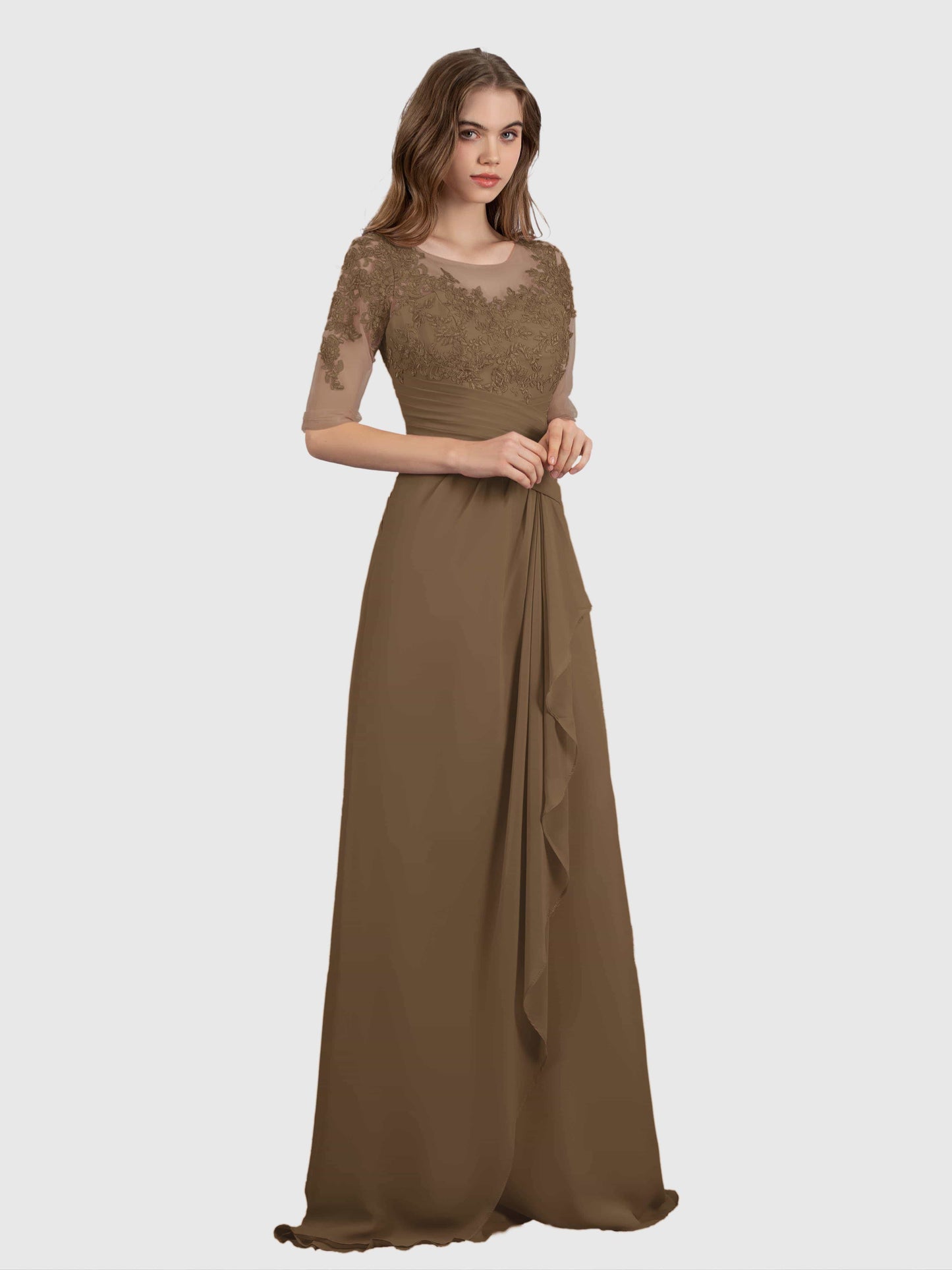 Elegant Illusion Ruffles Lace Chiffon Mother Of The Bride Dresses UK