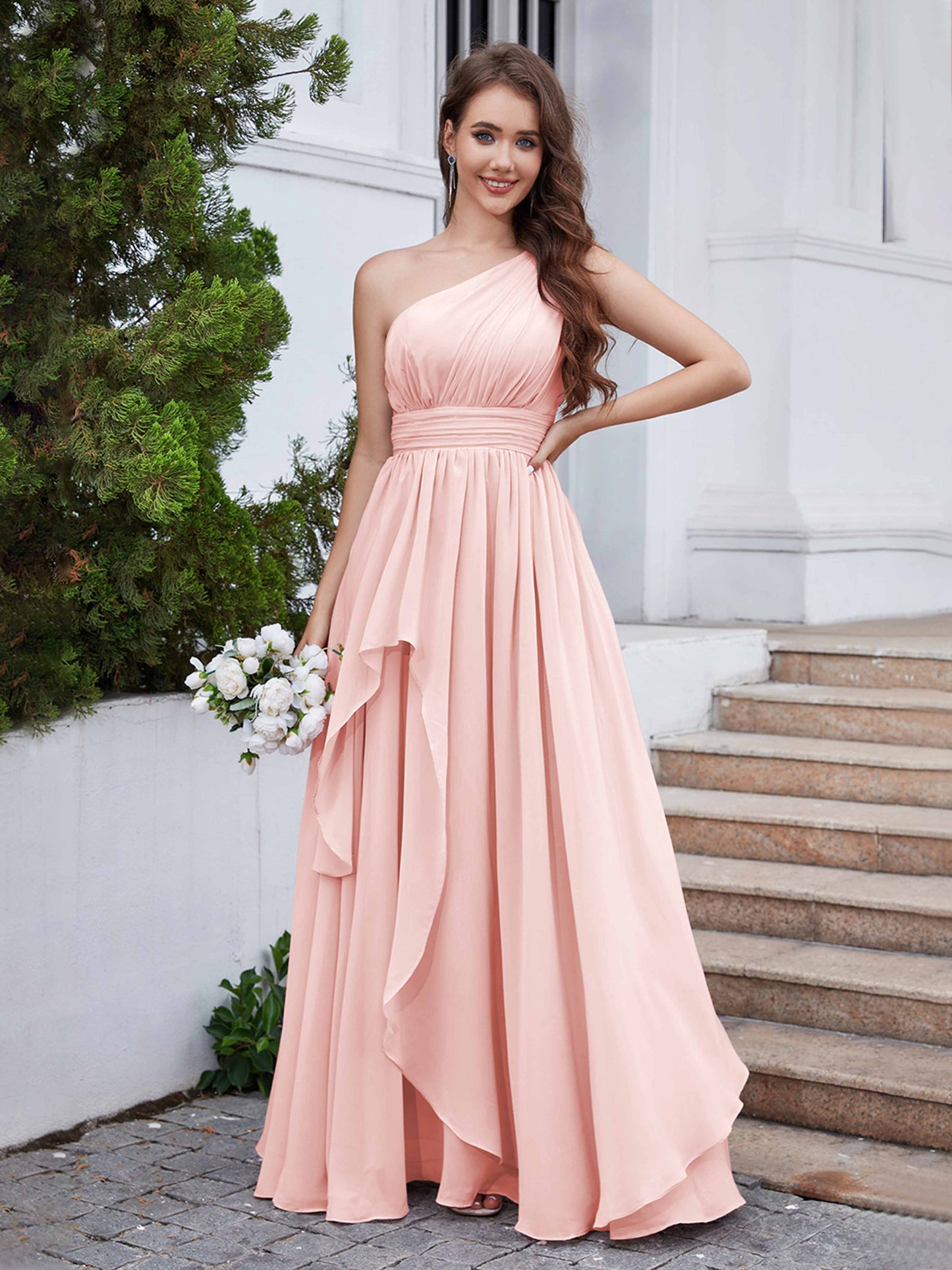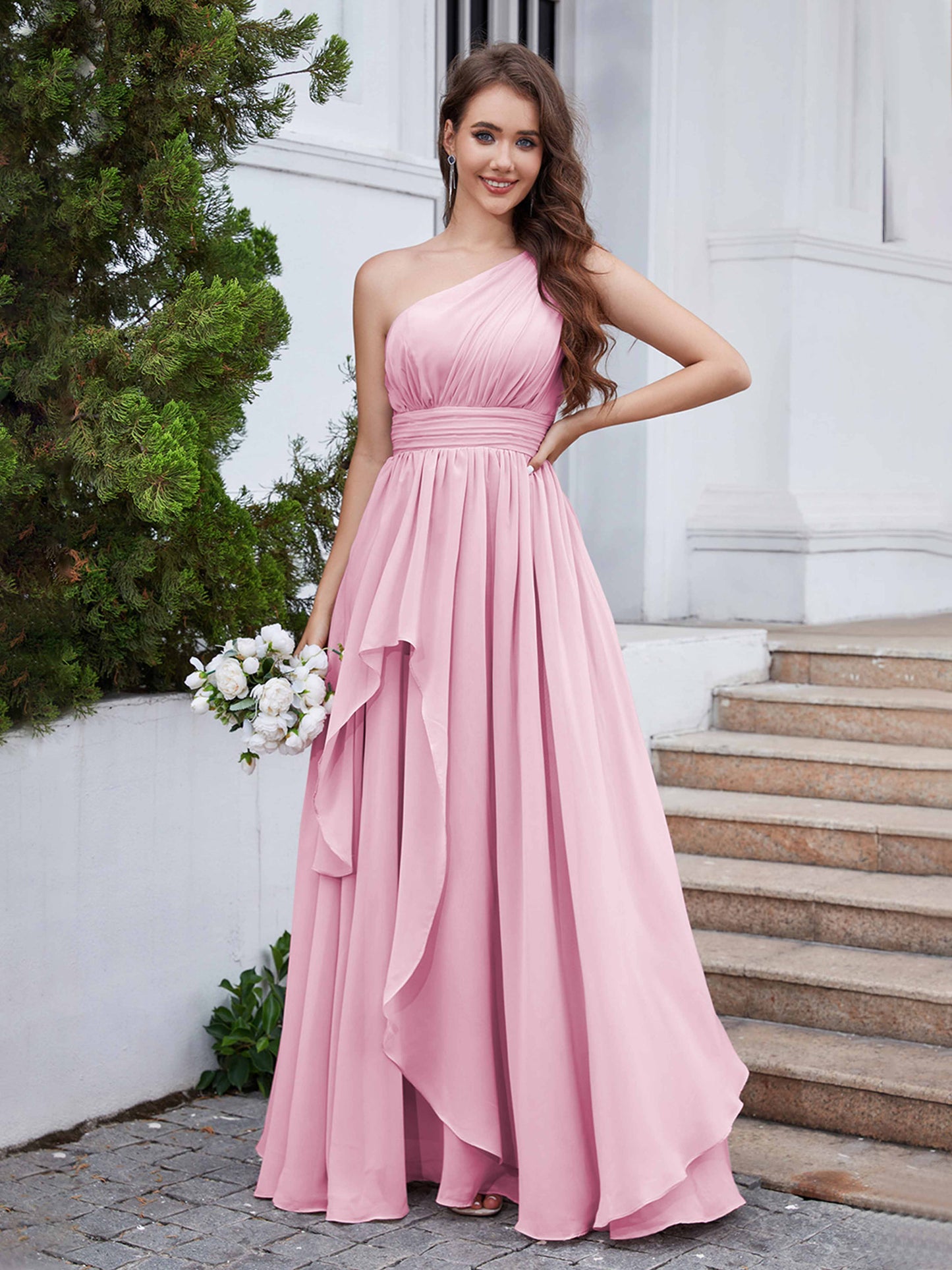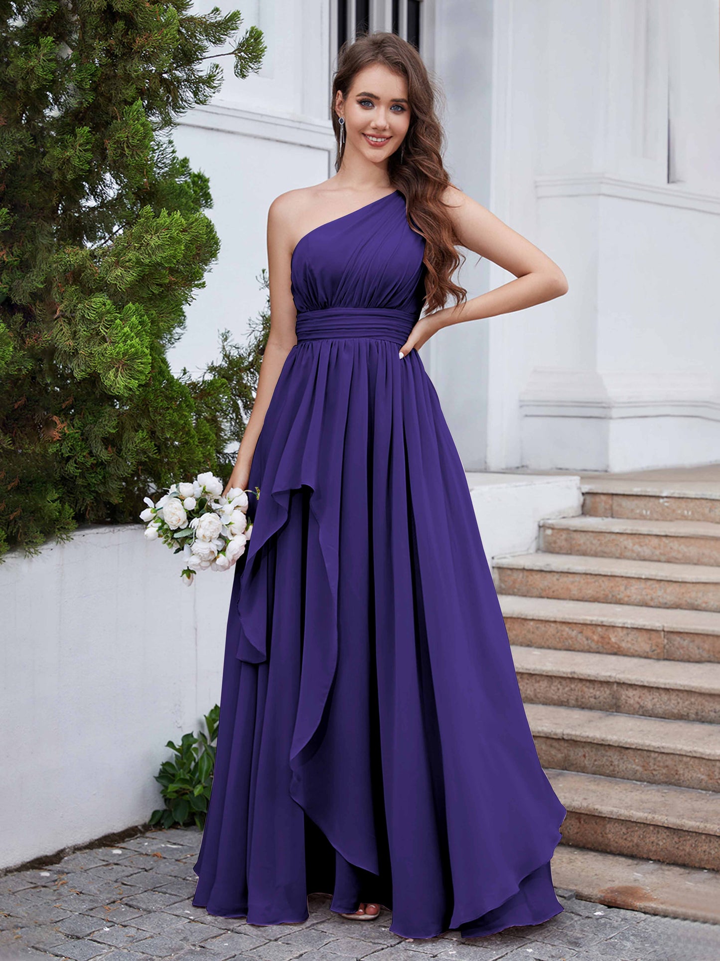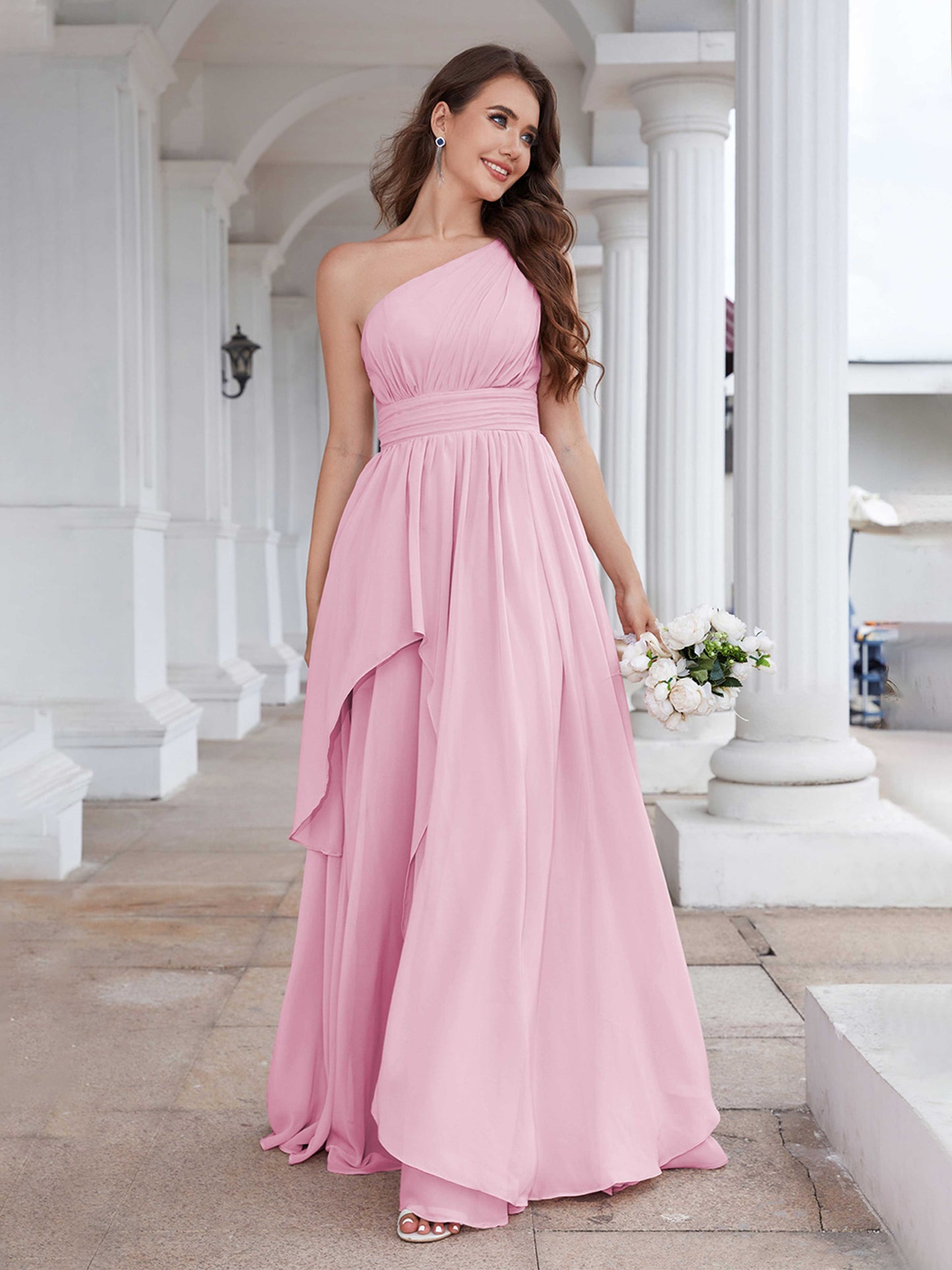 Elegant One Shoulder Sleeveless Maxi Chiffon Bridesmaid Dresses UK