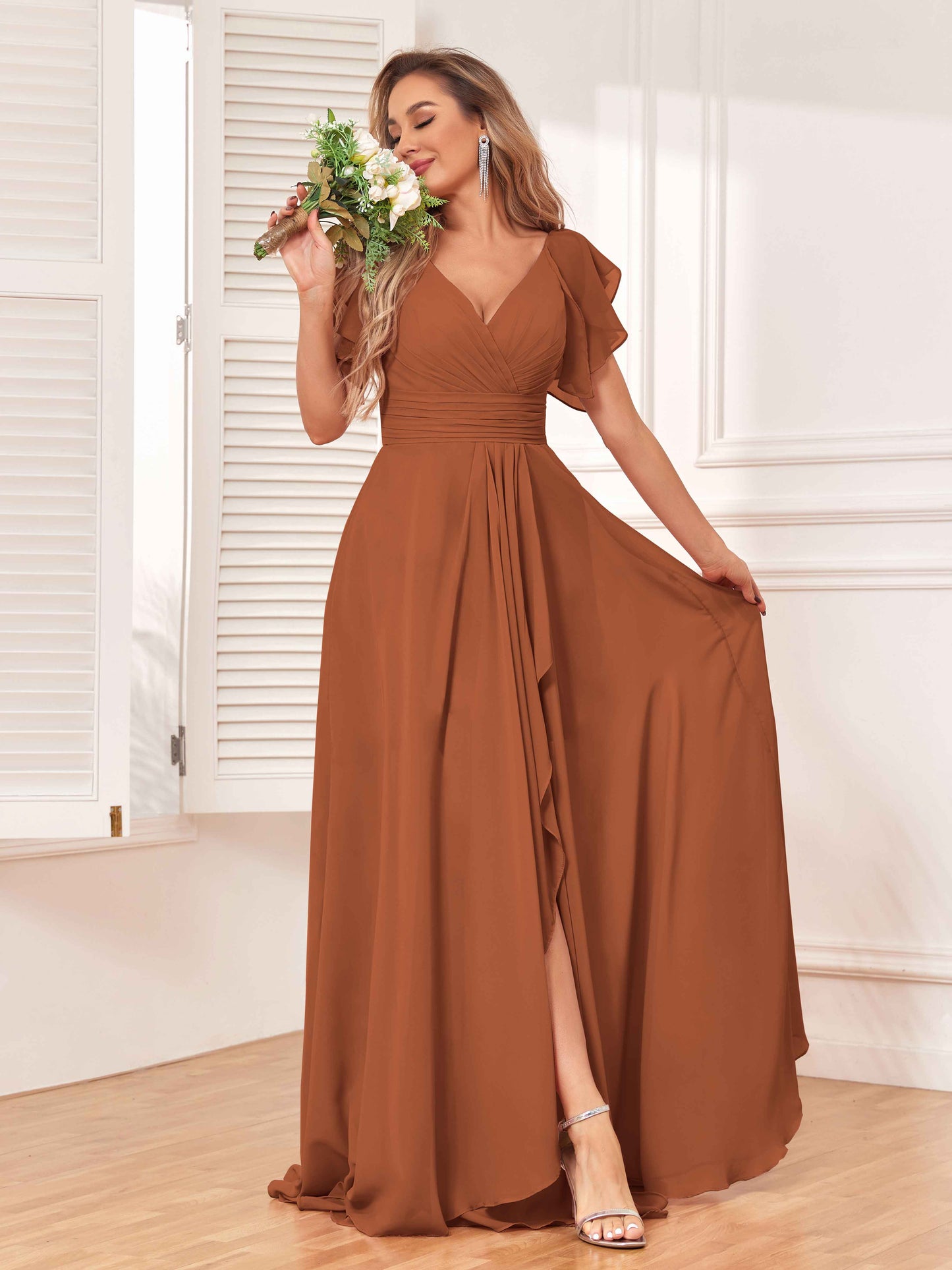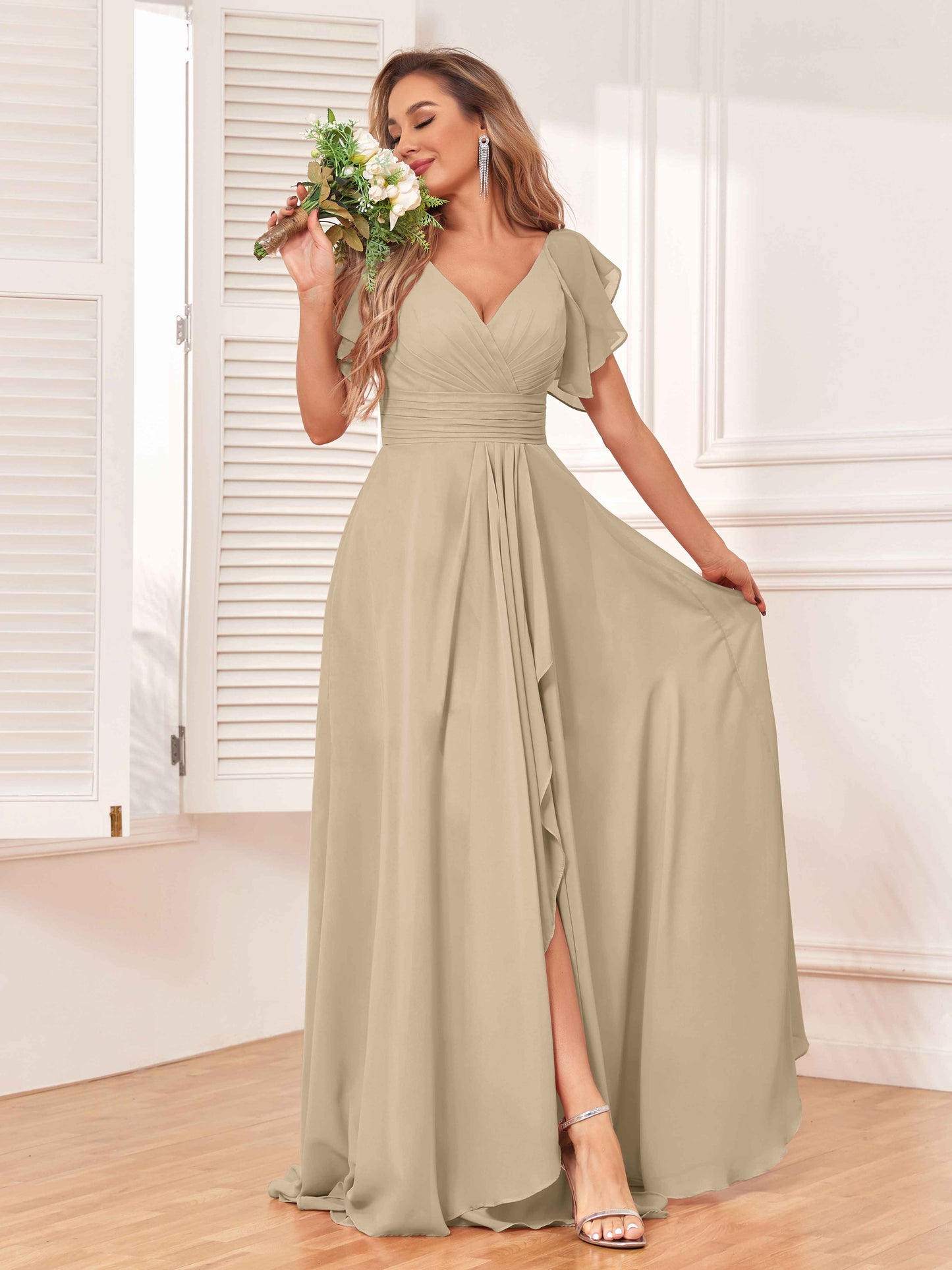 I was worried this might be too fancy, but the chiffon is light, breathable, and actually practical for a summer wedding. The ruffles add movement without looking fussy, and the lace-up back is more forgiving than I expected. We spent the day running around the venue and nobody complained about comfort-always a win.