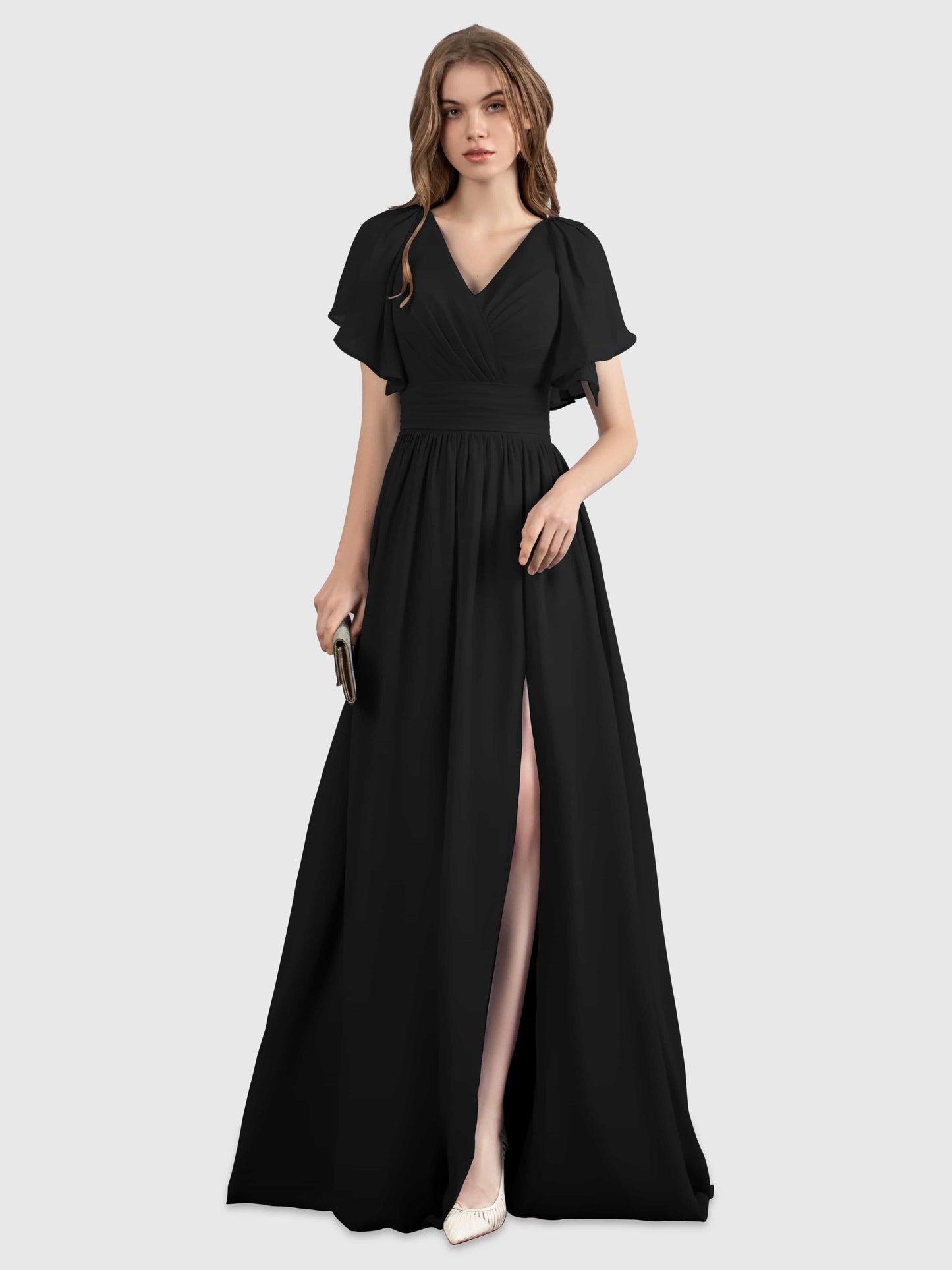 Bought this as a bridesmaid dress and it's absolutely lovely. The chiffon is breathable, which was perfect for a summer wedding. The slit adds a subtle hint of sass without being risque, and the ruffles catch the light beautifully. I'd happily wear this again for any fancy occasion.