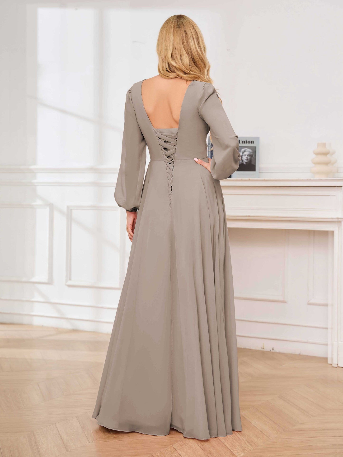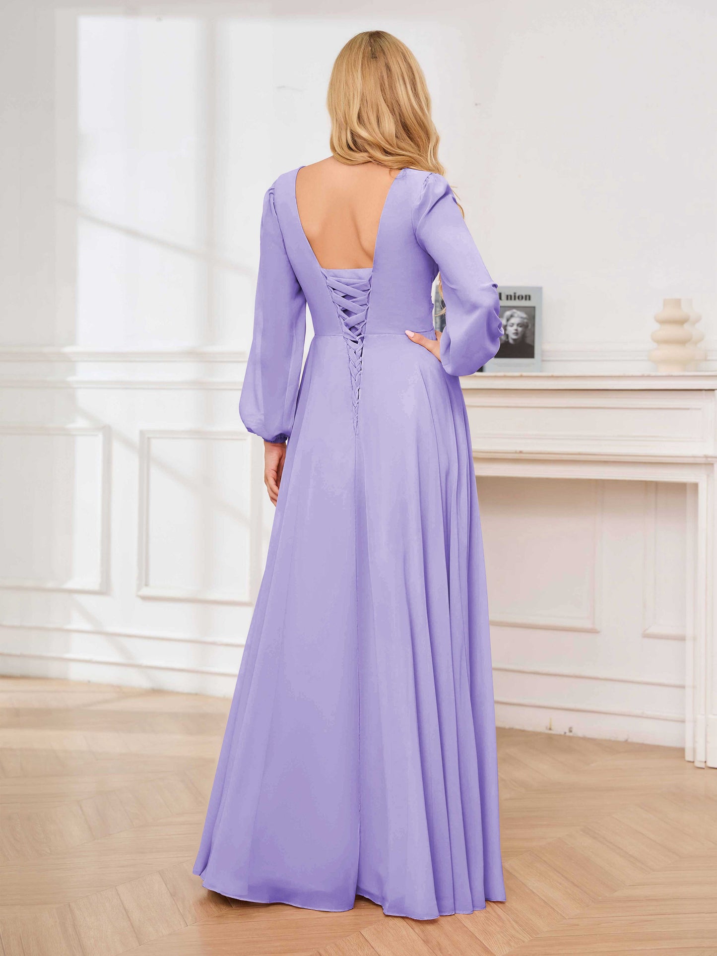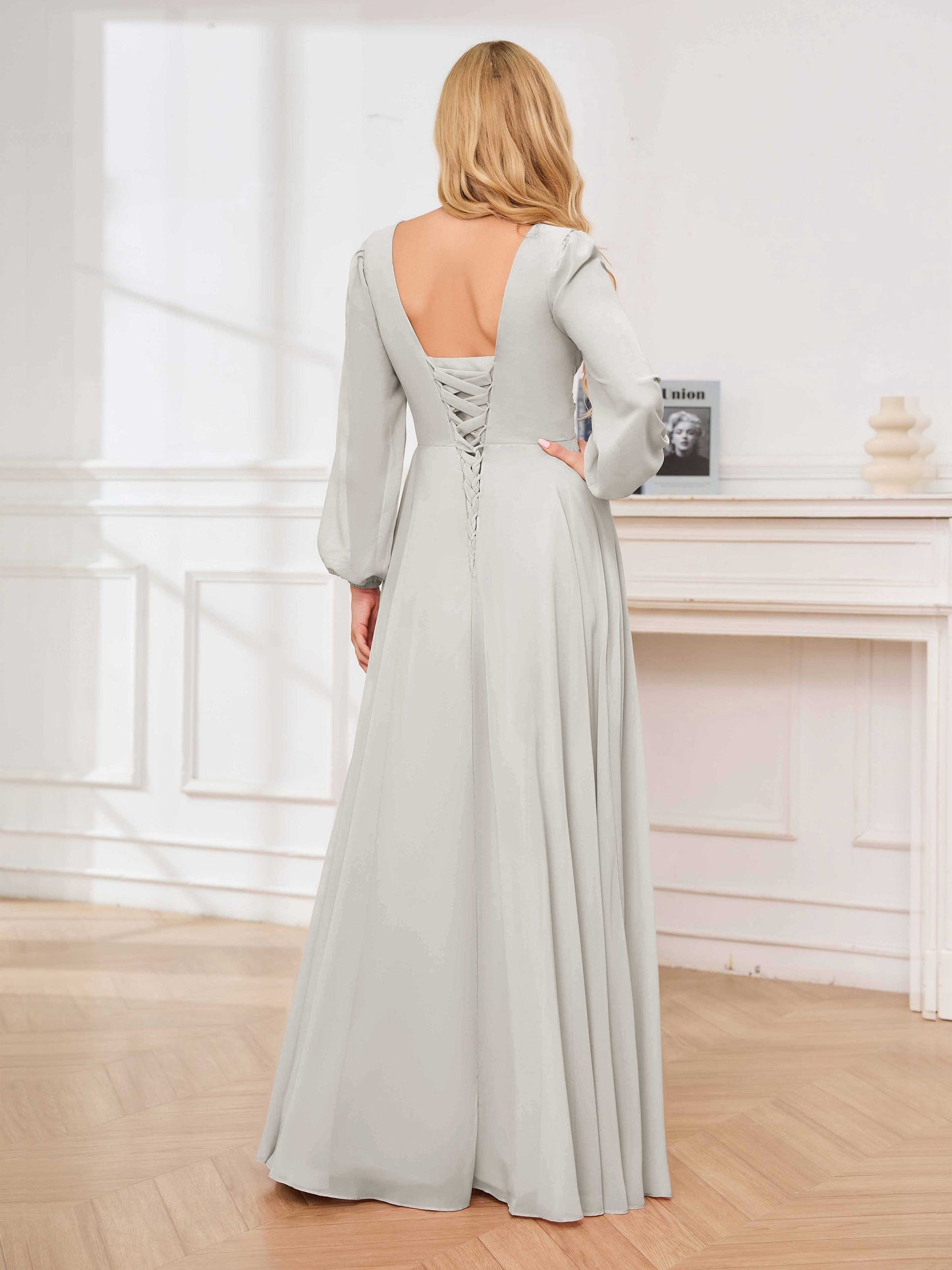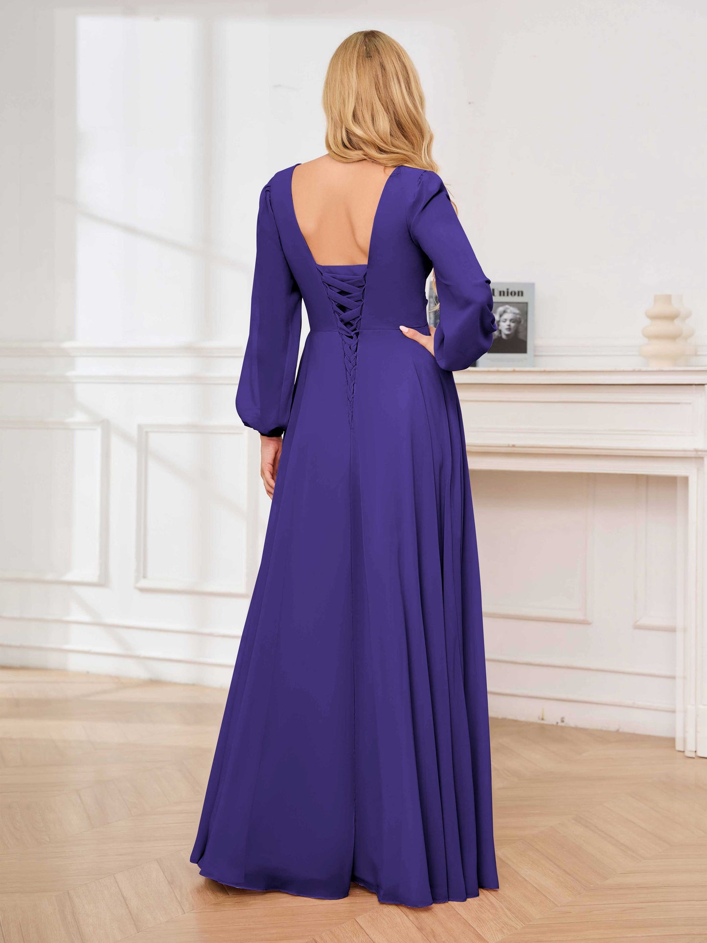 Feminine Pleats Long Sleeves Slit Chiffon Bridesmaid Dresses UK