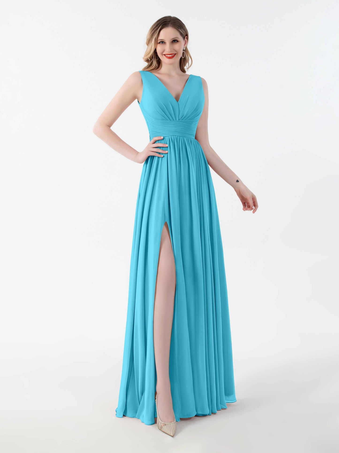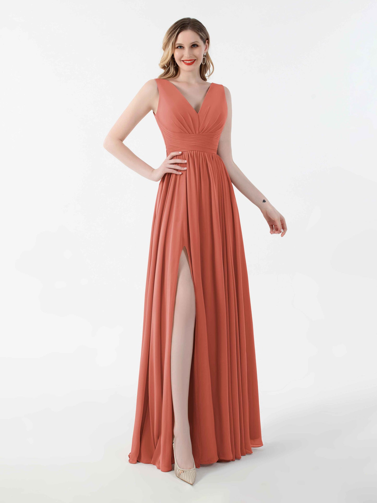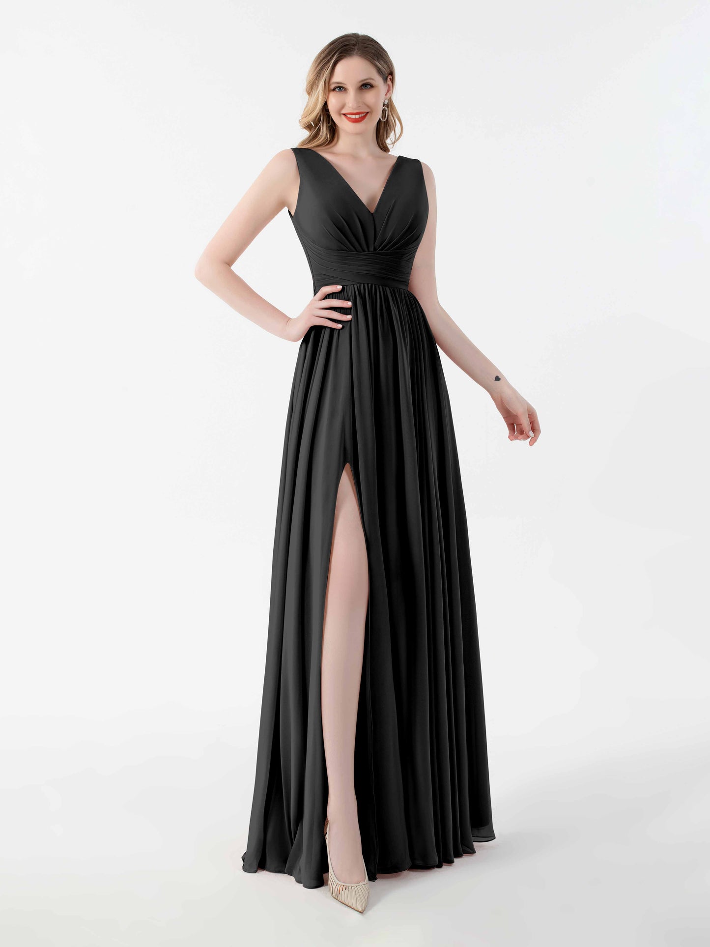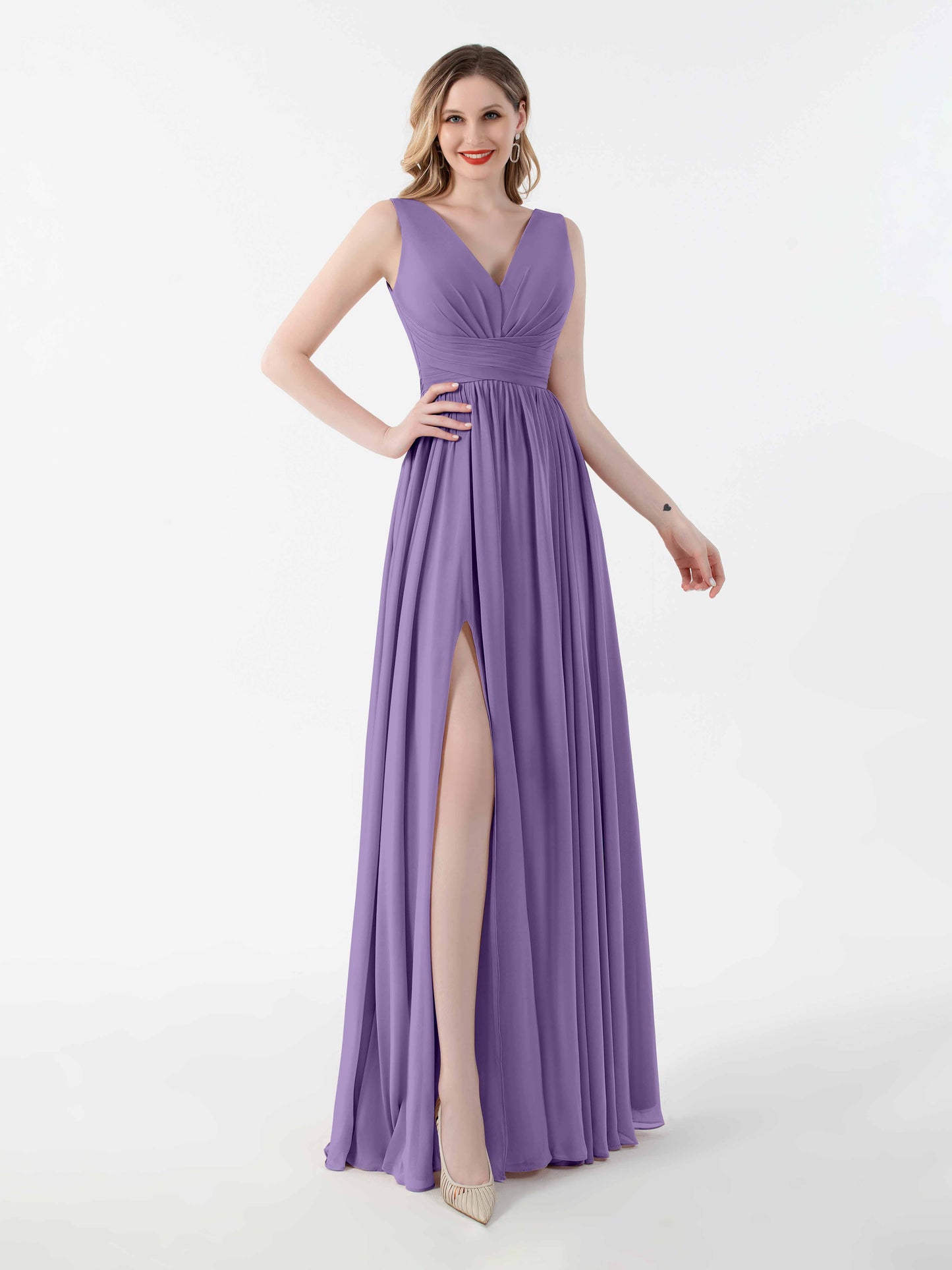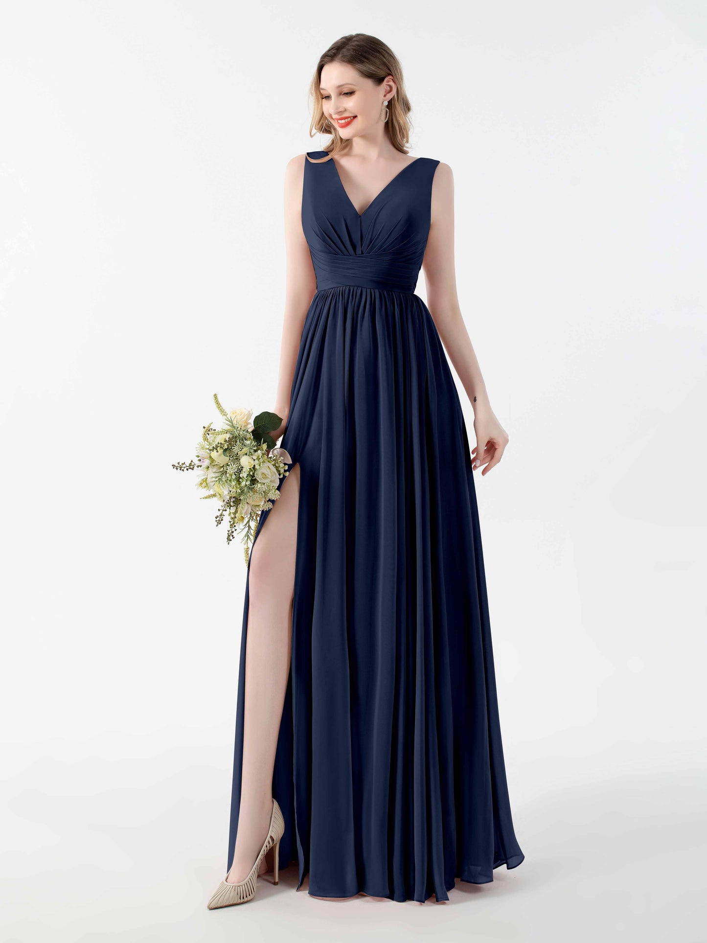 • Flatter your figure with Mollyevers'bridesmaid dresses. These dresses feature a flattering V-back design, a graceful floor-length silhouette, and a seductive slit, adding a touch of allure to your look. Crafted from delicate chiffon fabric, they offer both style and comfort. Dress your bridesmaids in elegance and sophistication with Mollyevers.