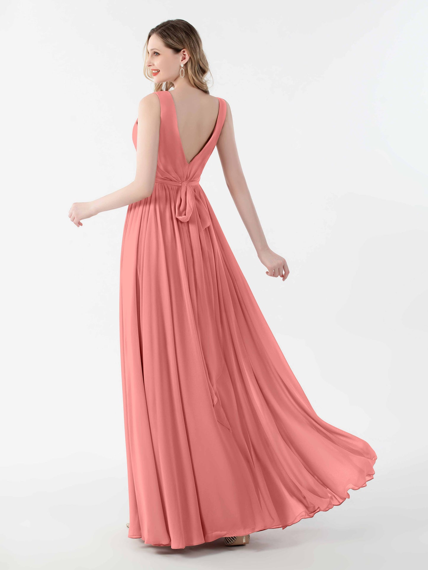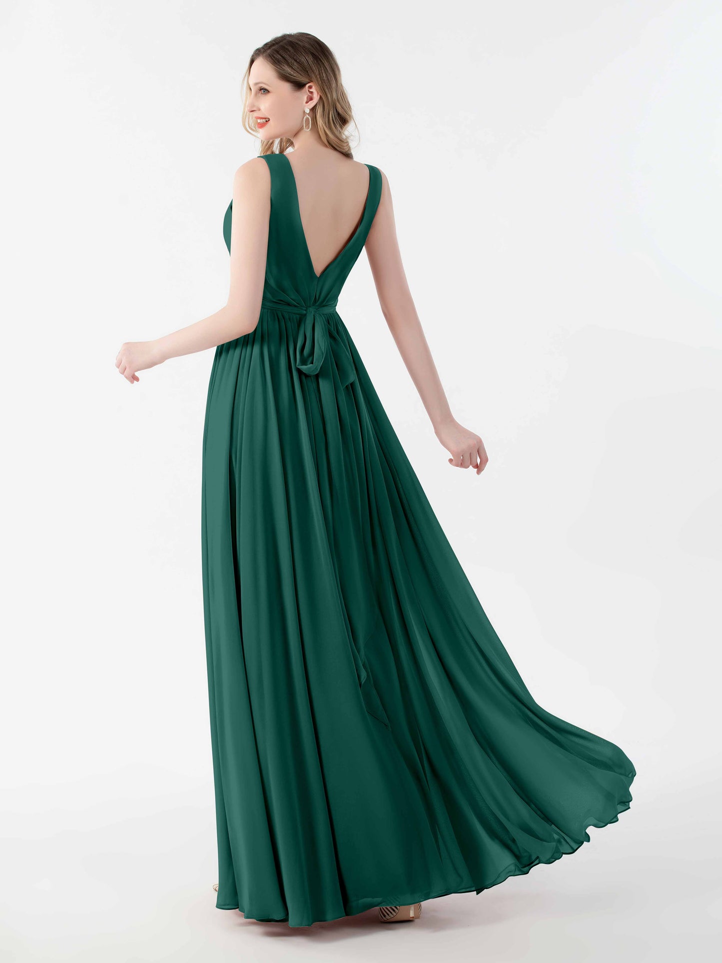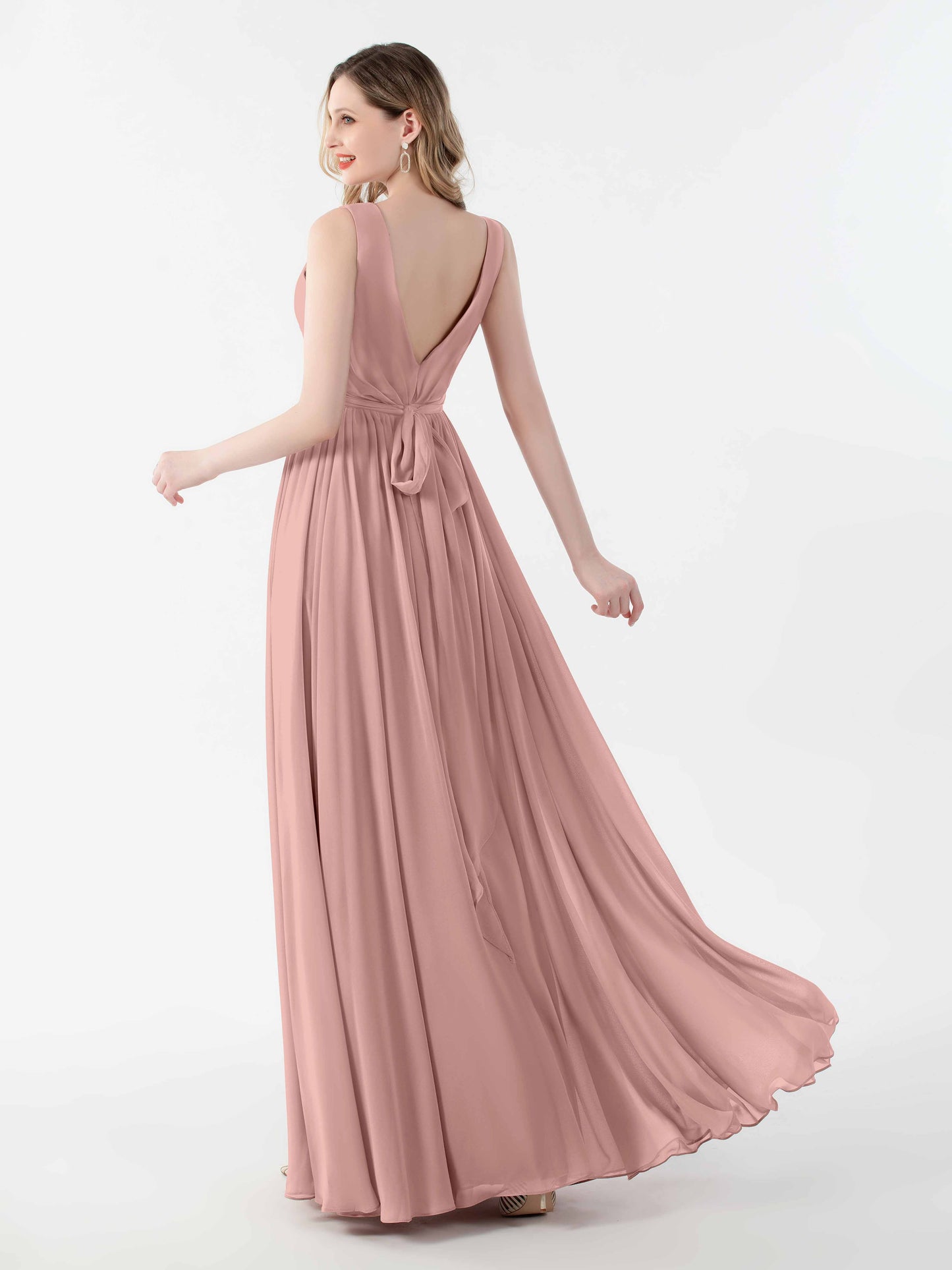 The dress fit like a dream, even on my slightly awkward body shape. I love how the V-back gives a hint of elegance without making it feel over the top. We had a bit of a windy day, but the floor-length chiffon just danced in the breeze. Perfect for the ceremony and the dance floor!