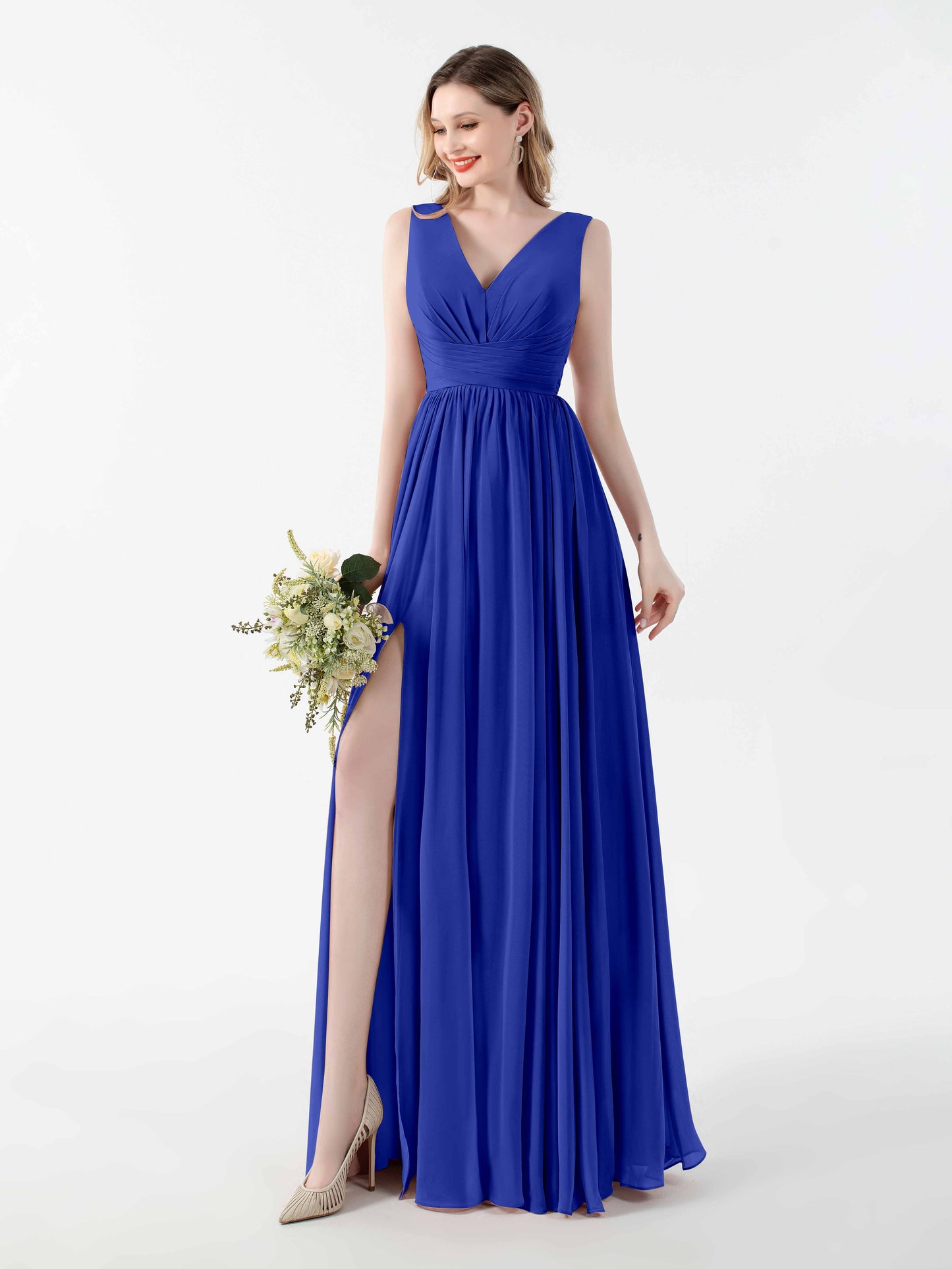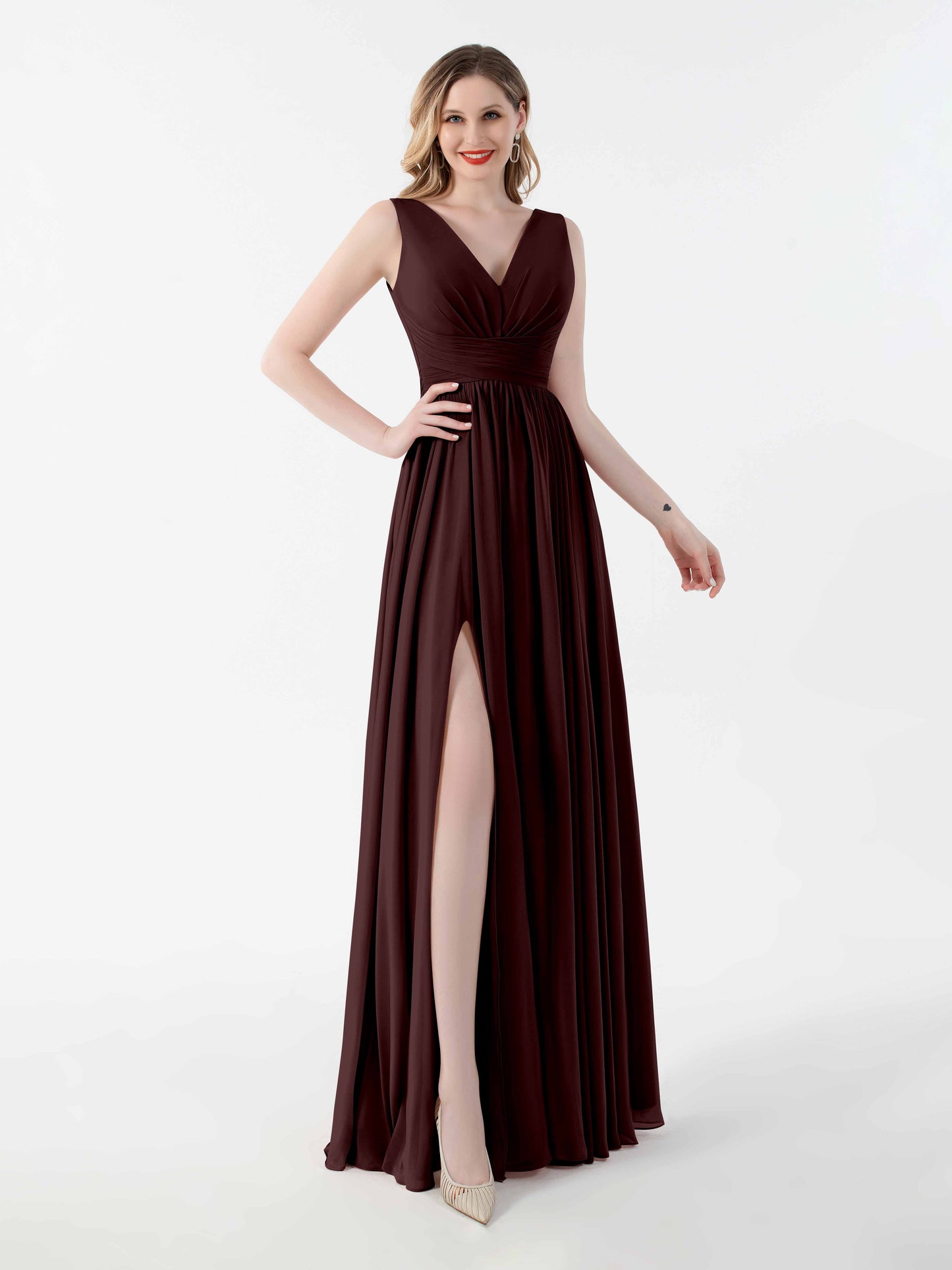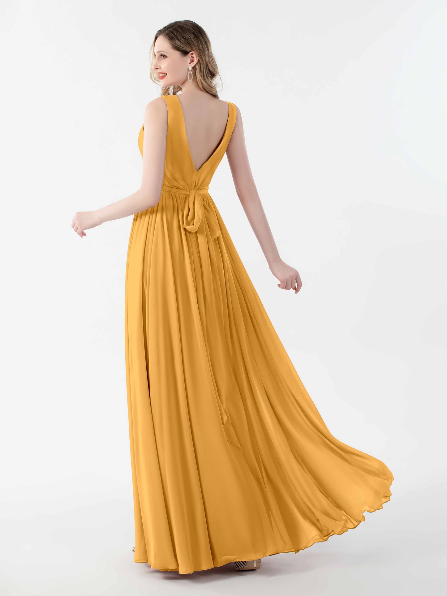 The dress fit like a dream, even on my slightly awkward body shape. I love how the V-back gives a hint of elegance without making it feel over the top. We had a bit of a windy day, but the floor-length chiffon just danced in the breeze. Perfect for the ceremony and the dance floor!