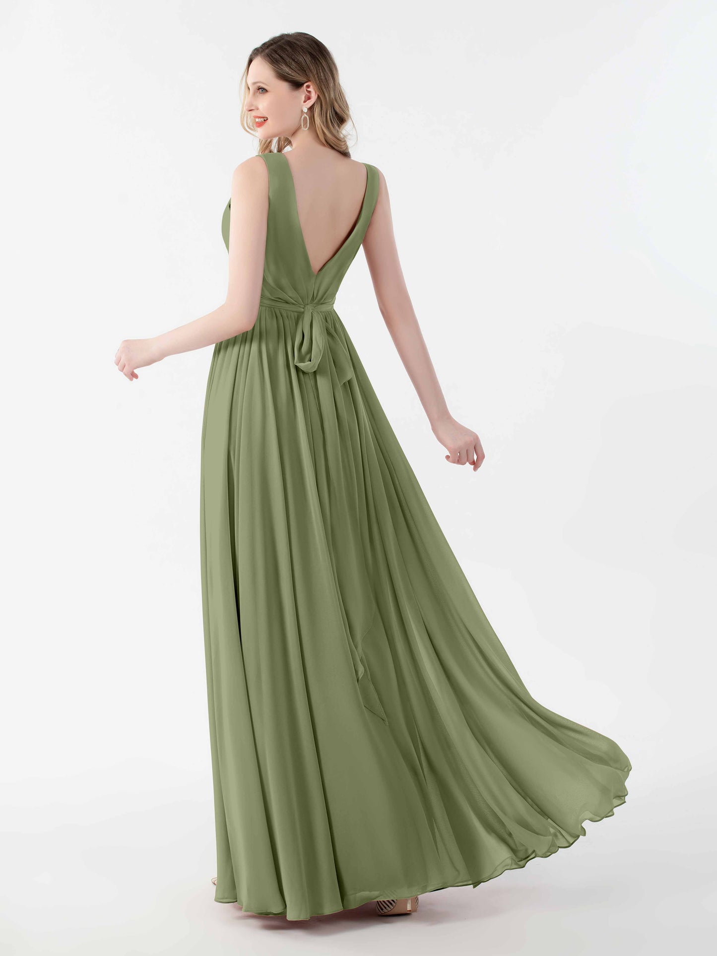 Flattering V Back Slit Floor Length Chiffon Bridesmaid Dresses UK