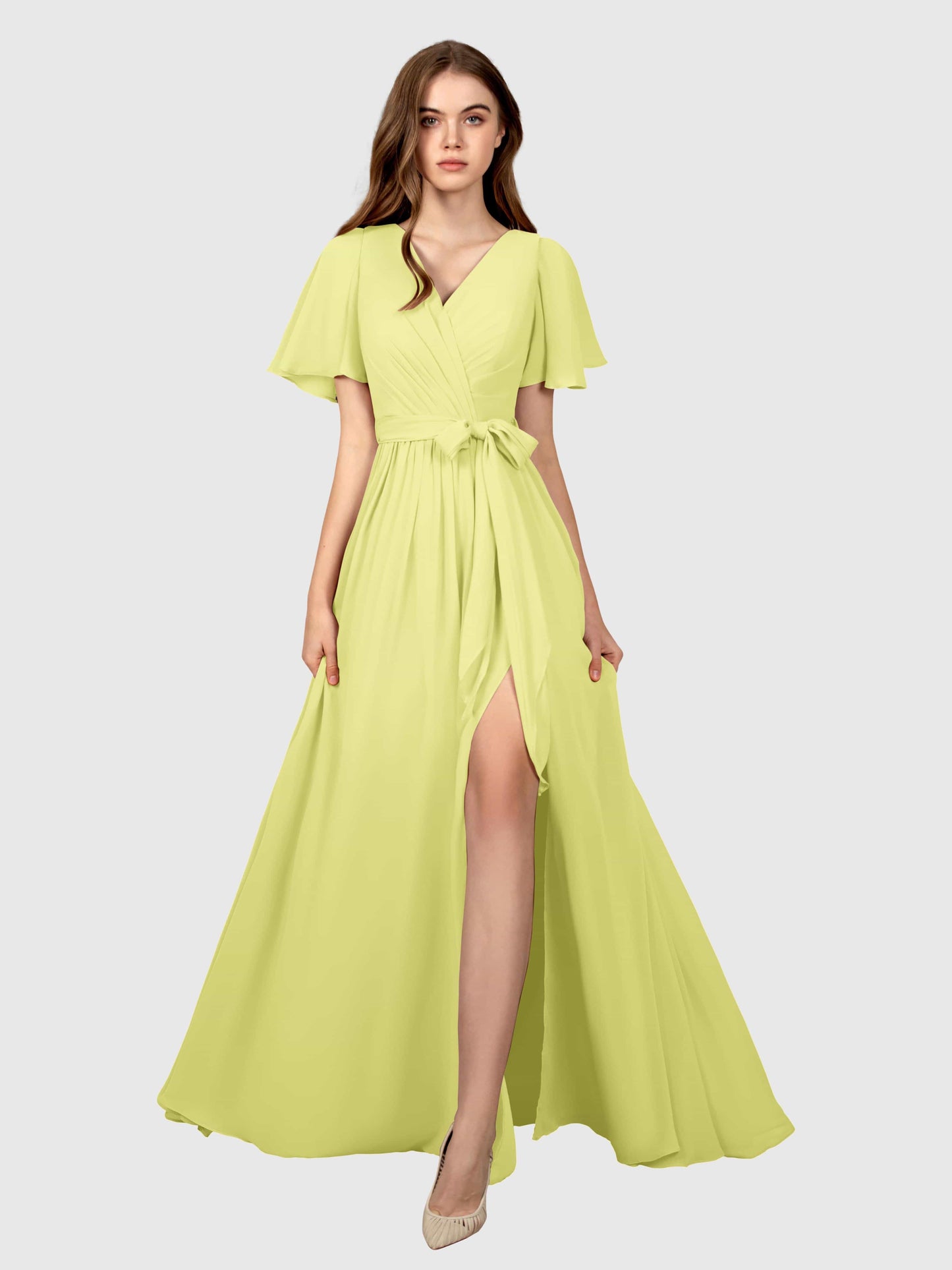 Glamorous V Neck Lace Up Chiffon Bridesmaid Dresses UK