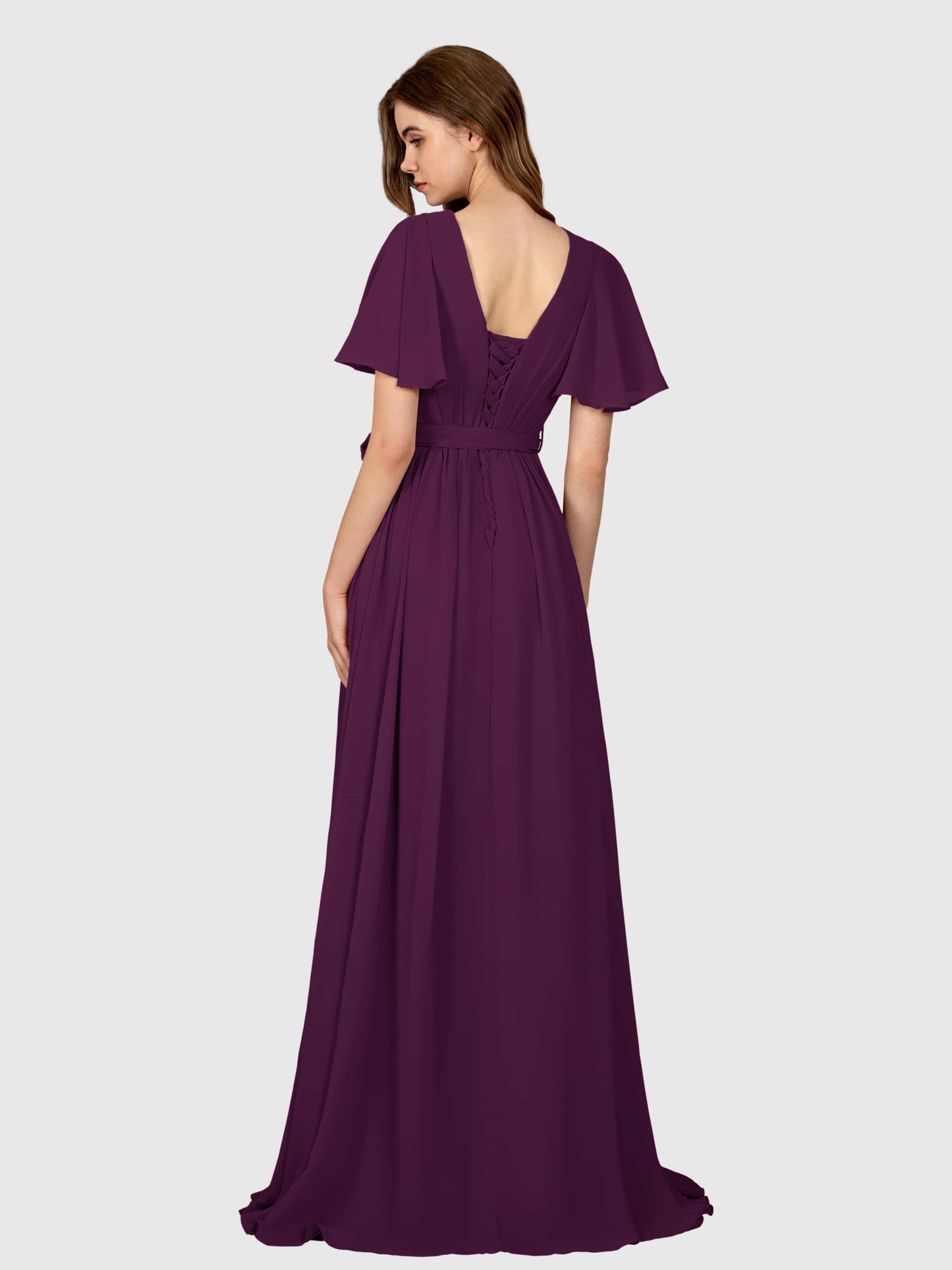 • Step into glamour with the Harper Glamorous V Neck Lace Up Chiffon Bridesmaid Dress by Mollyevers. With its glamorous V-neckline and lace-up back, this dress is a showstopper. Made from exquisite chiffon fabric, it offers both style and comfort. Elevate your bridal party's look with this stunning dress!