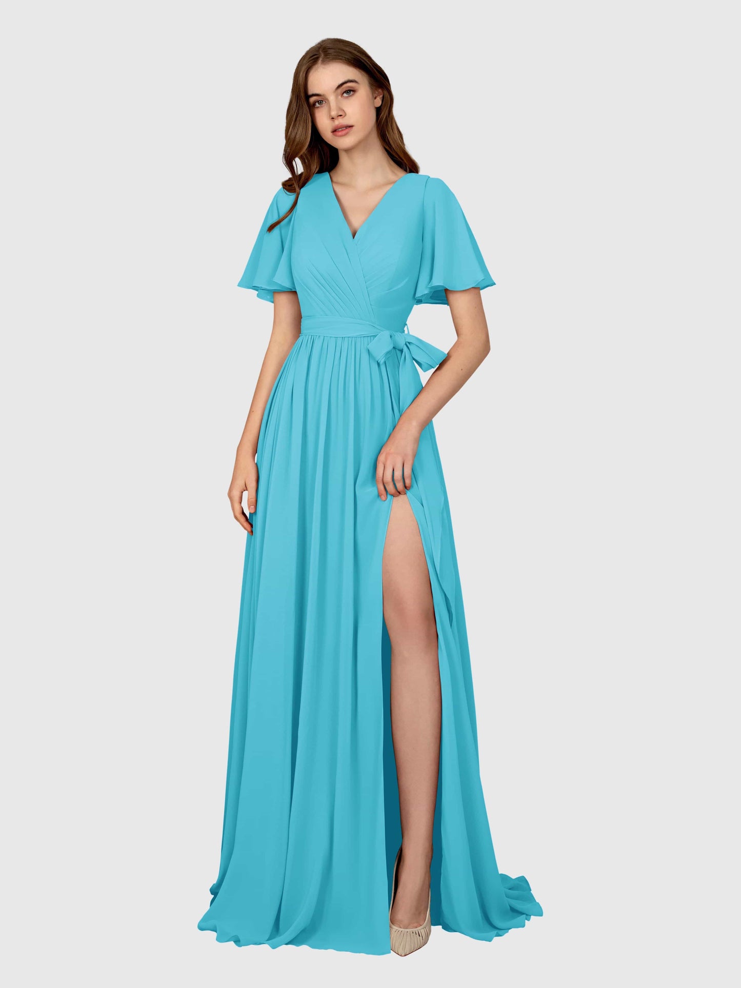 Ordered this for my mate's garden wedding and it's spot on. Fits like a glove (thank you, lace-up back!), the V-neck is classy but not boring, and the colour stayed vibrant despite a very enthusiastic bouquet toss. Even my gran complimented me, which is high praise indeed.
