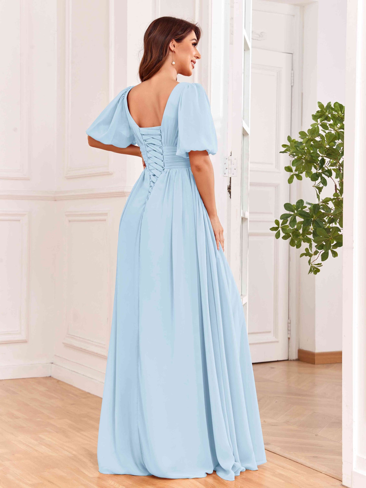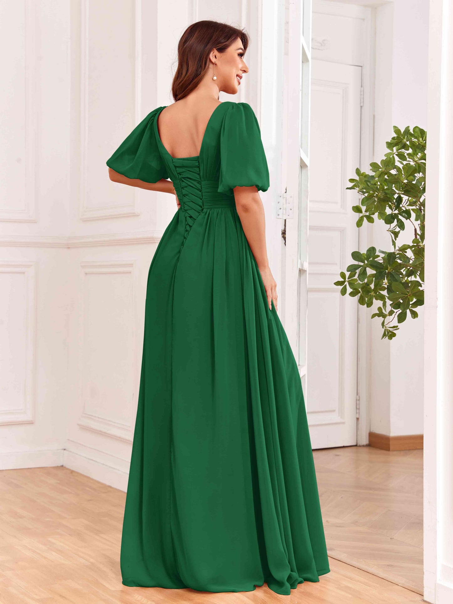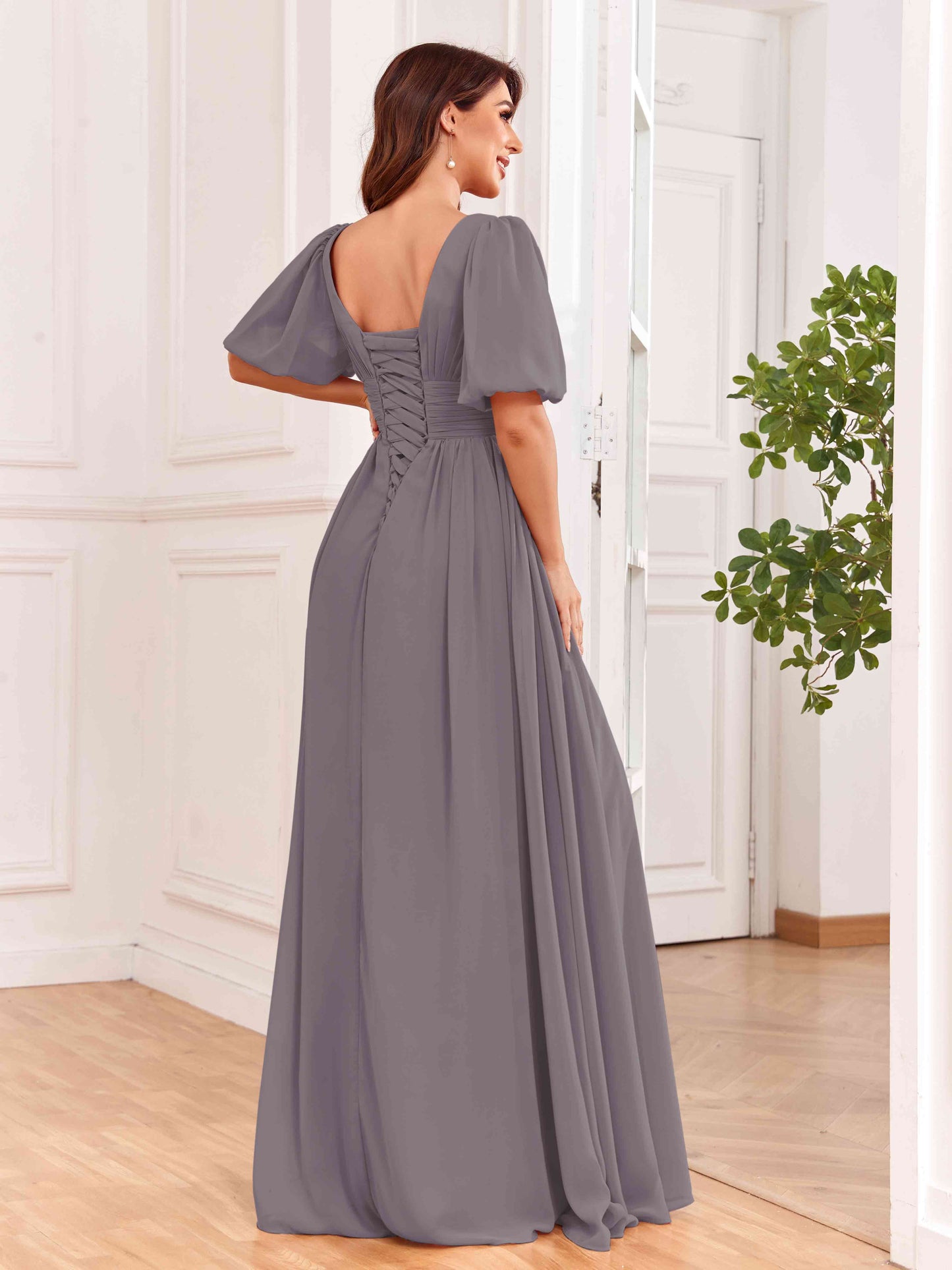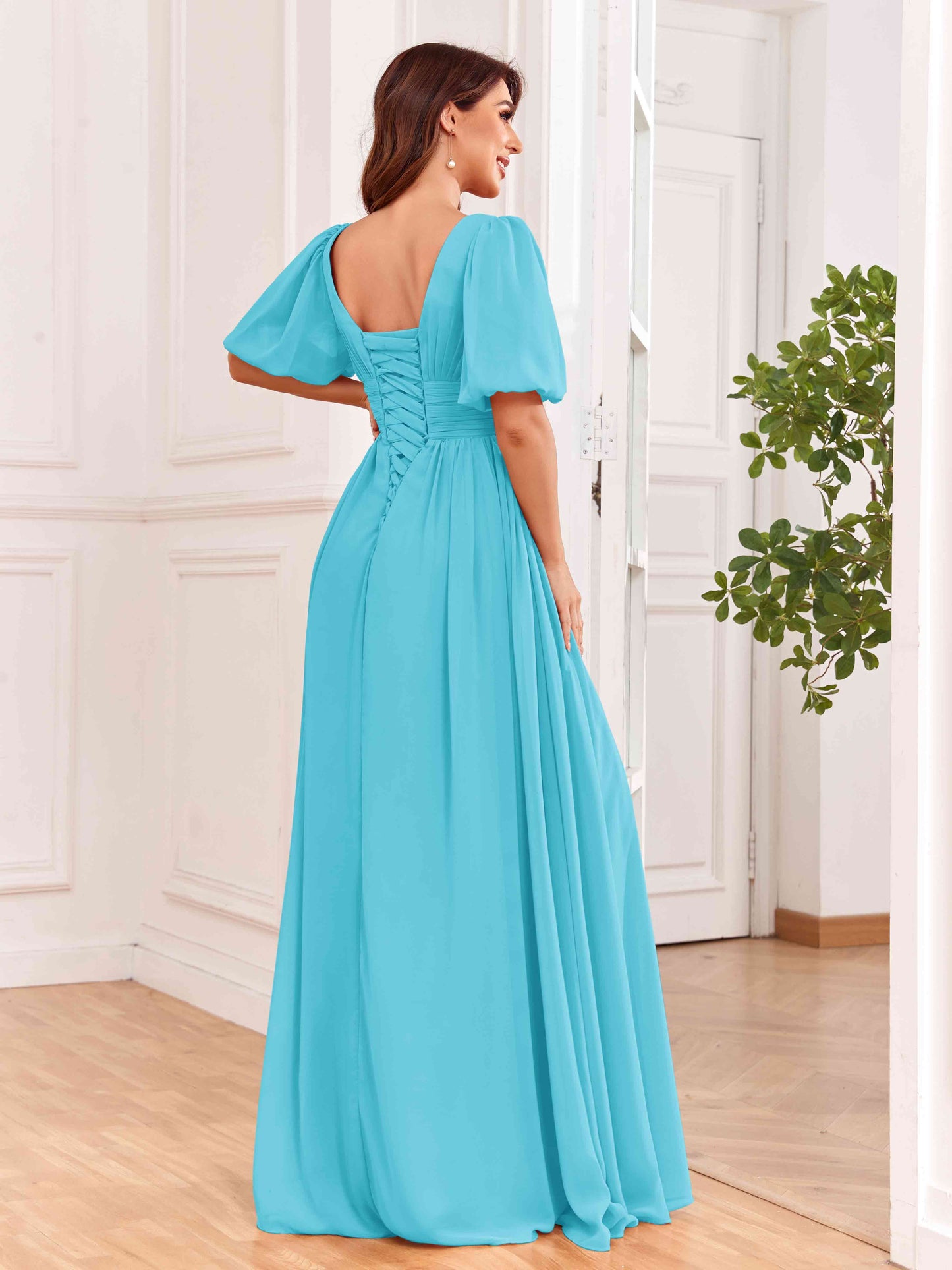 Gleaming V Neck Lantern Sleeves Slit Chiffon Bridesmaid Dresses UK