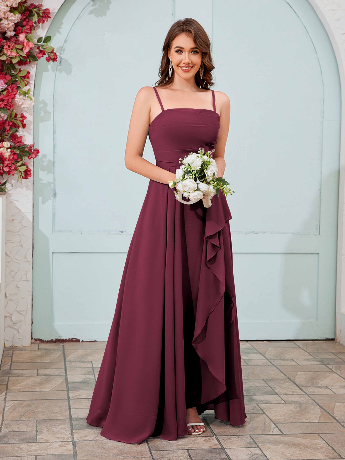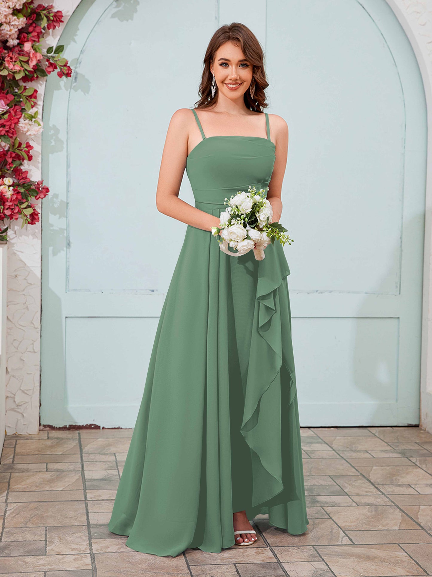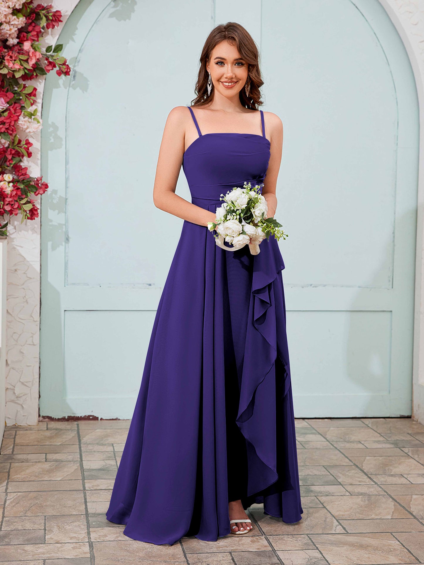 • Elevate your bridal party with Mollyevers' Graceful A-Line Slit Ruched Maxi Chiffon Bridesmaid Dresses. Featuring a flattering ruched bodice, thigh-high slit, and flowing chiffon design, this elegant dress ensures timeless beauty and comfort for any wedding or formal occasion. Perfectly chic and graceful.