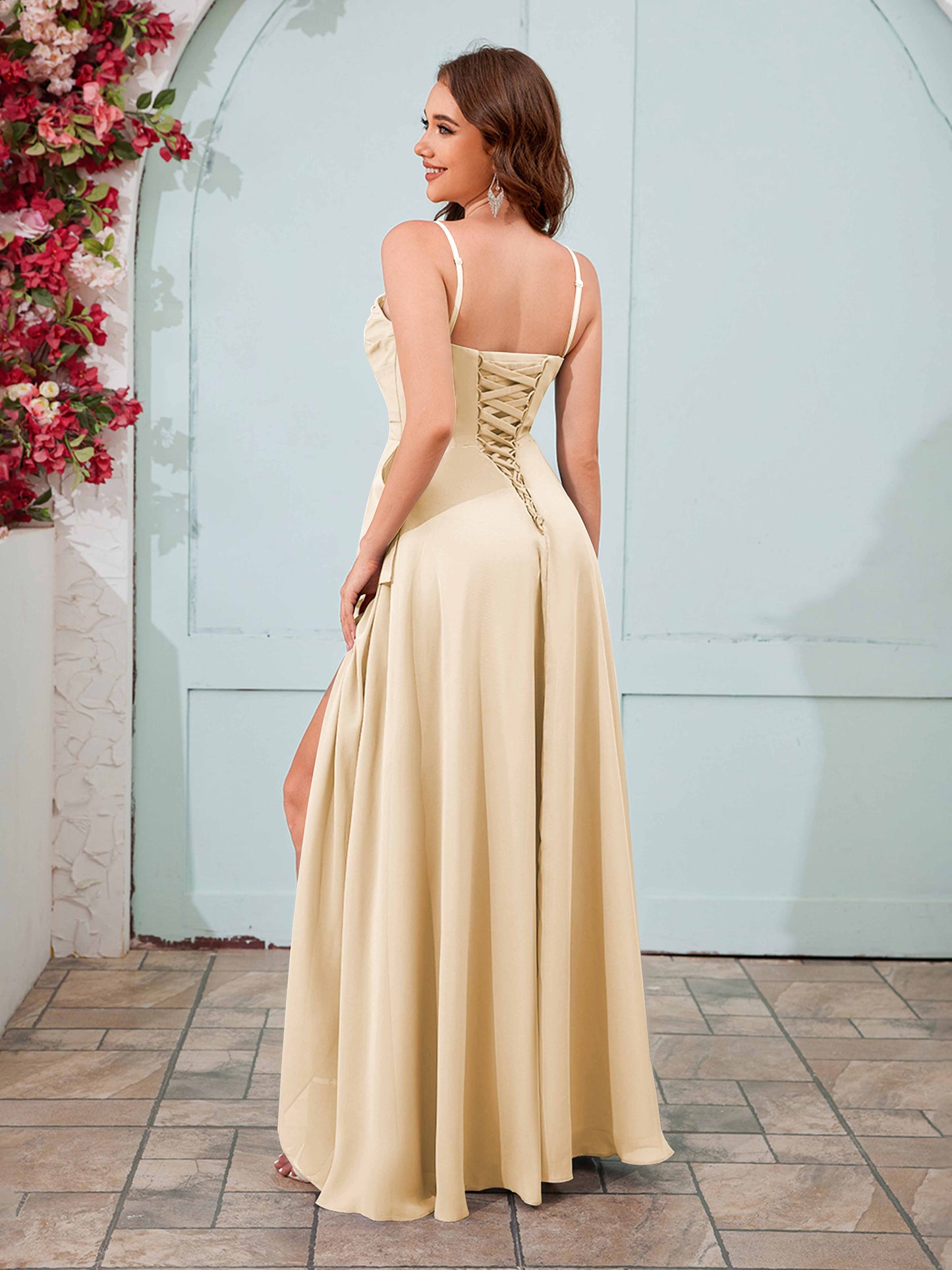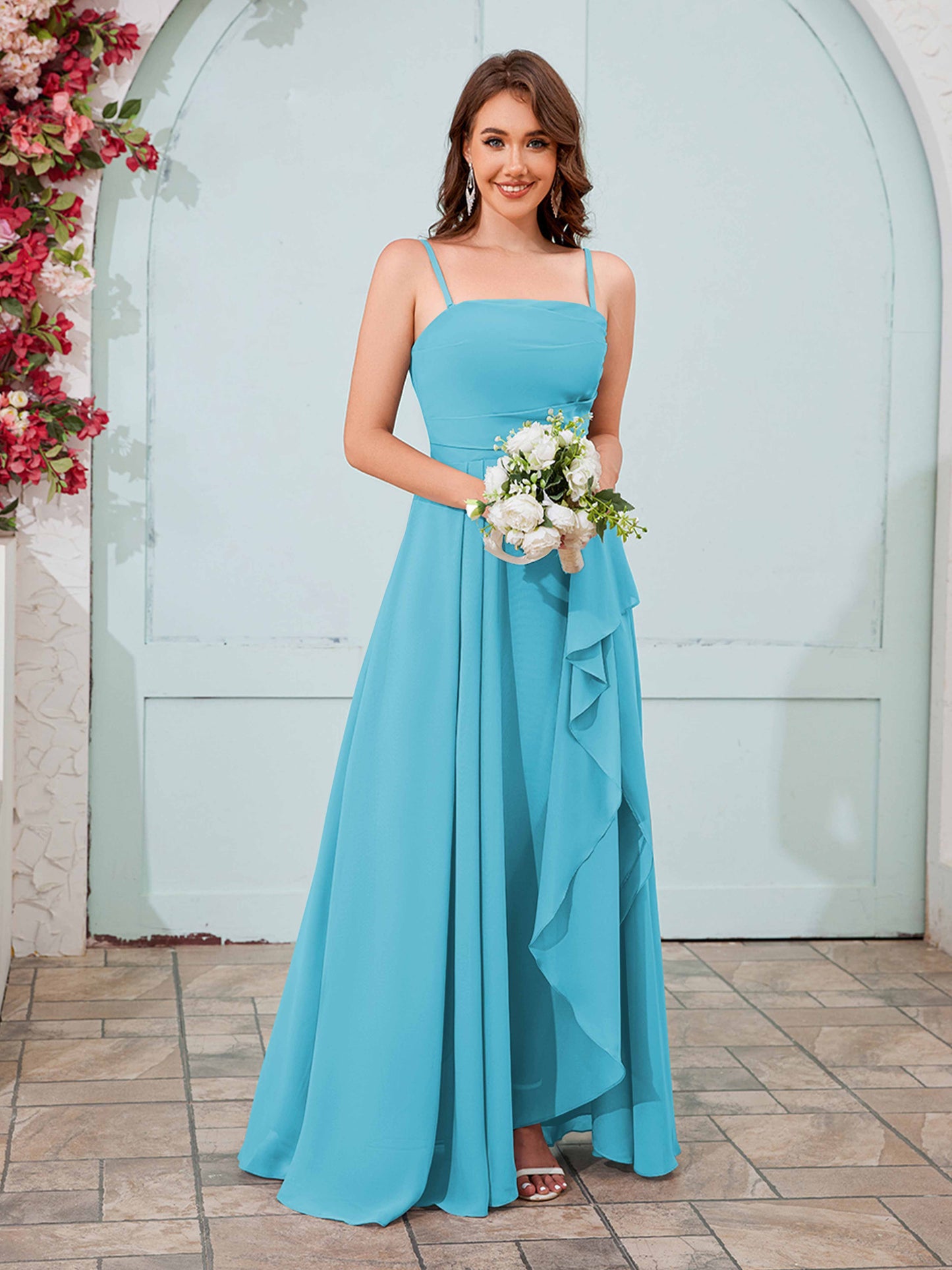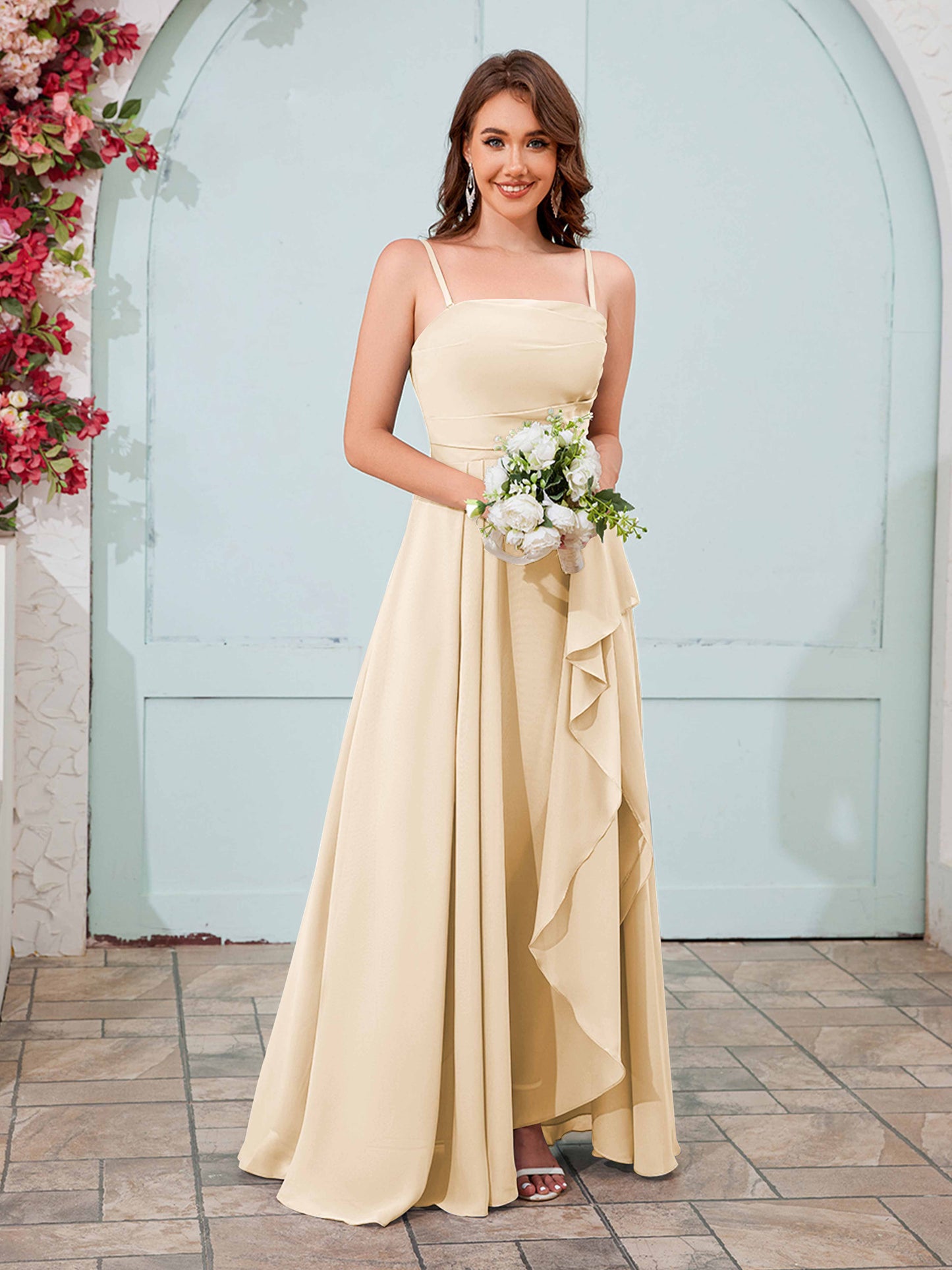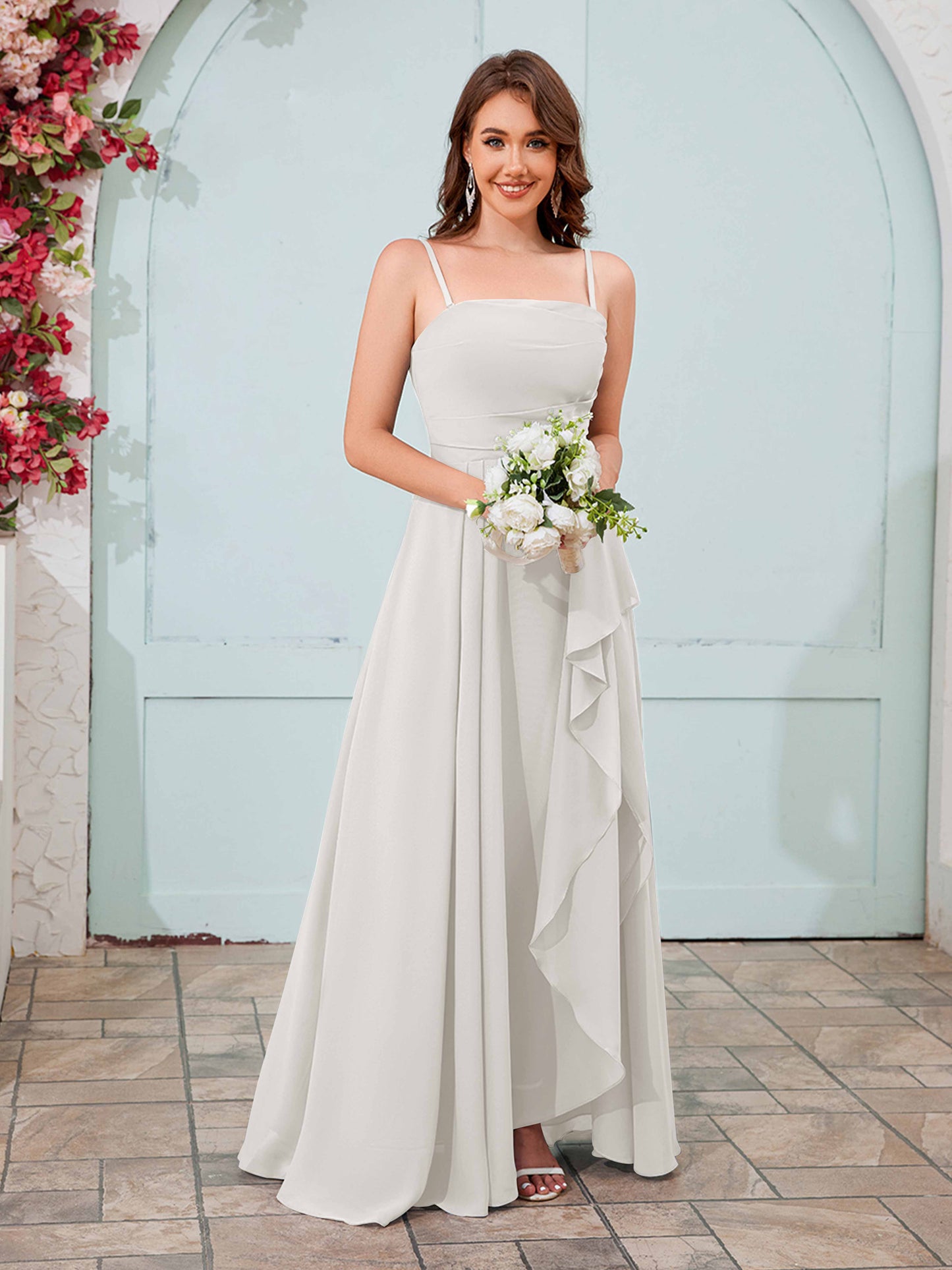 • Elevate your bridal party with Mollyevers' Graceful A-Line Slit Ruched Maxi Chiffon Bridesmaid Dresses. Featuring a flattering ruched bodice, thigh-high slit, and flowing chiffon design, this elegant dress ensures timeless beauty and comfort for any wedding or formal occasion. Perfectly chic and graceful.