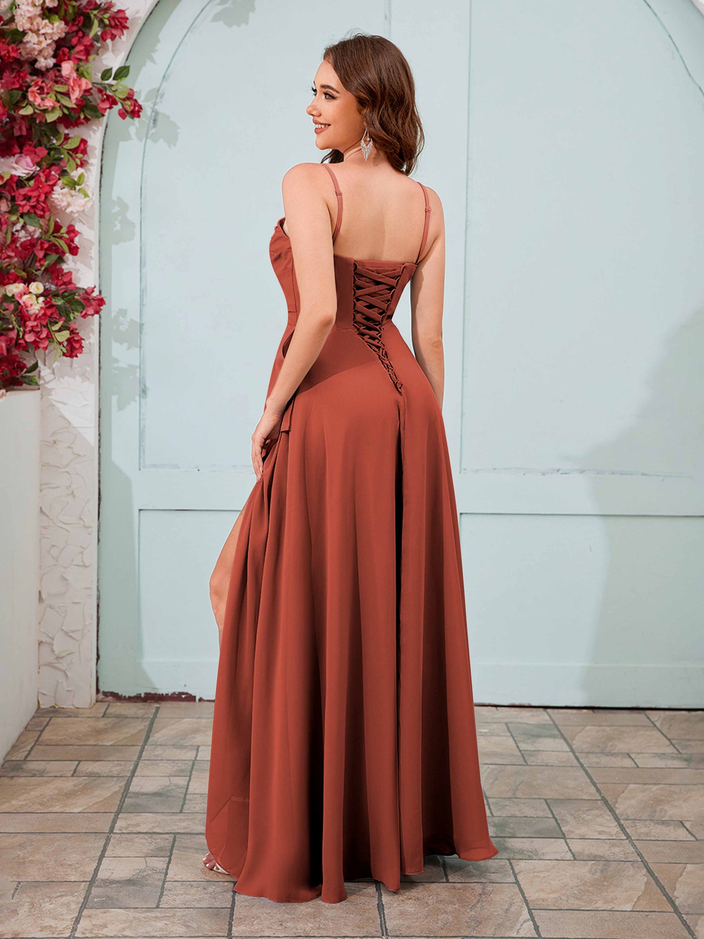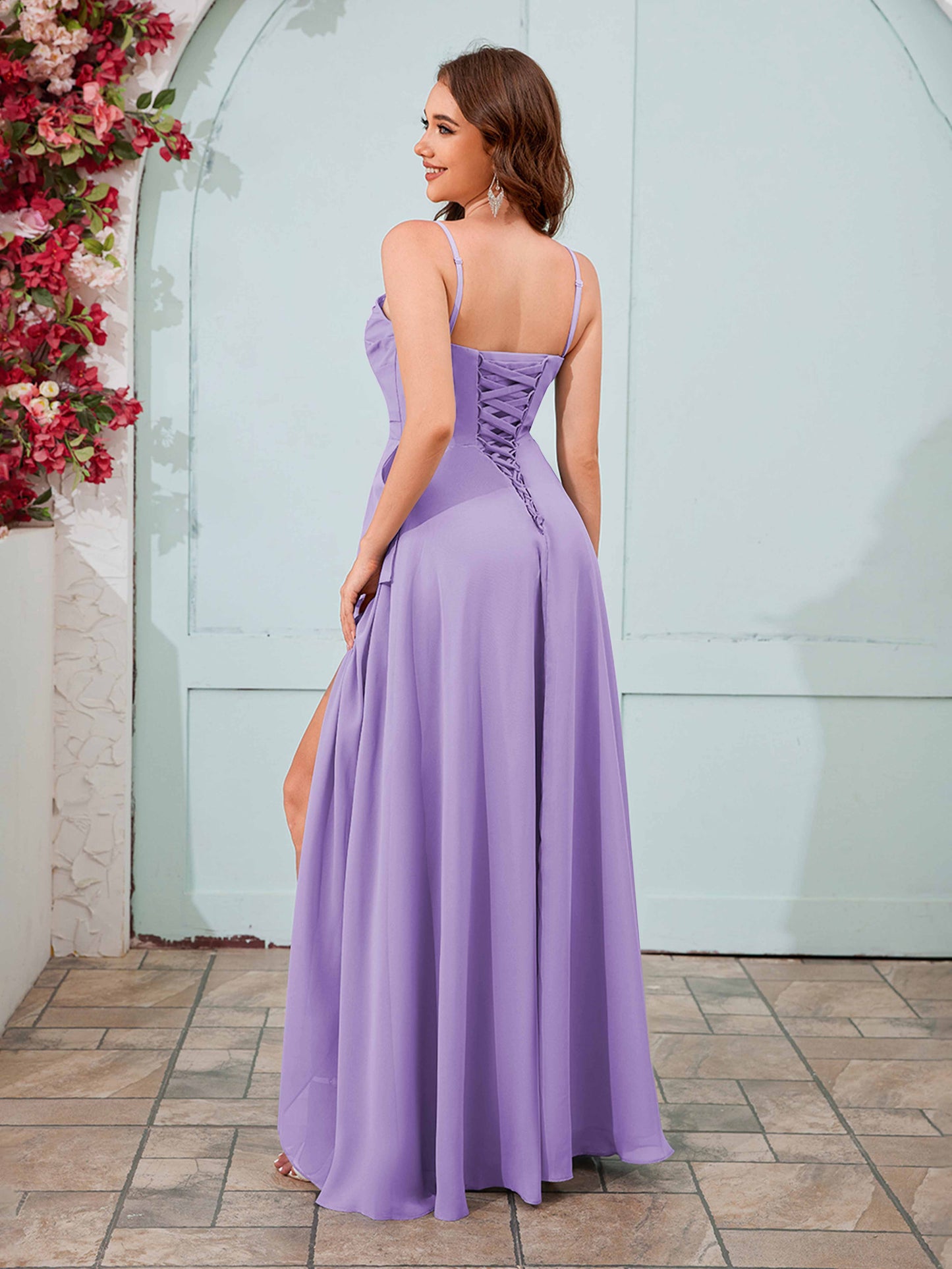 Graceful A-Line Slit Ruched Maxi Chiffon Bridesmaid Dresses UK