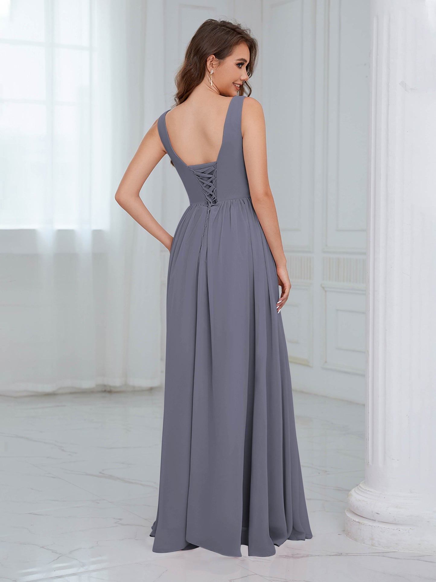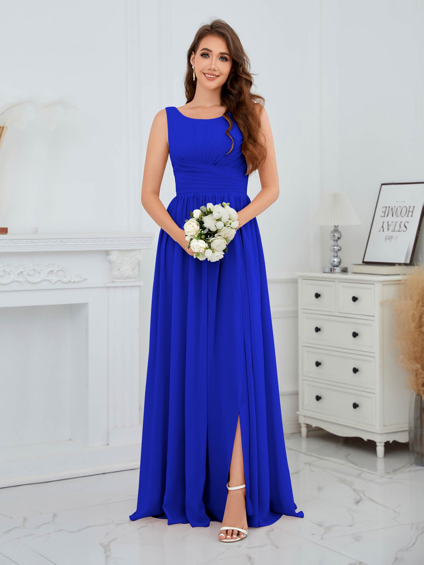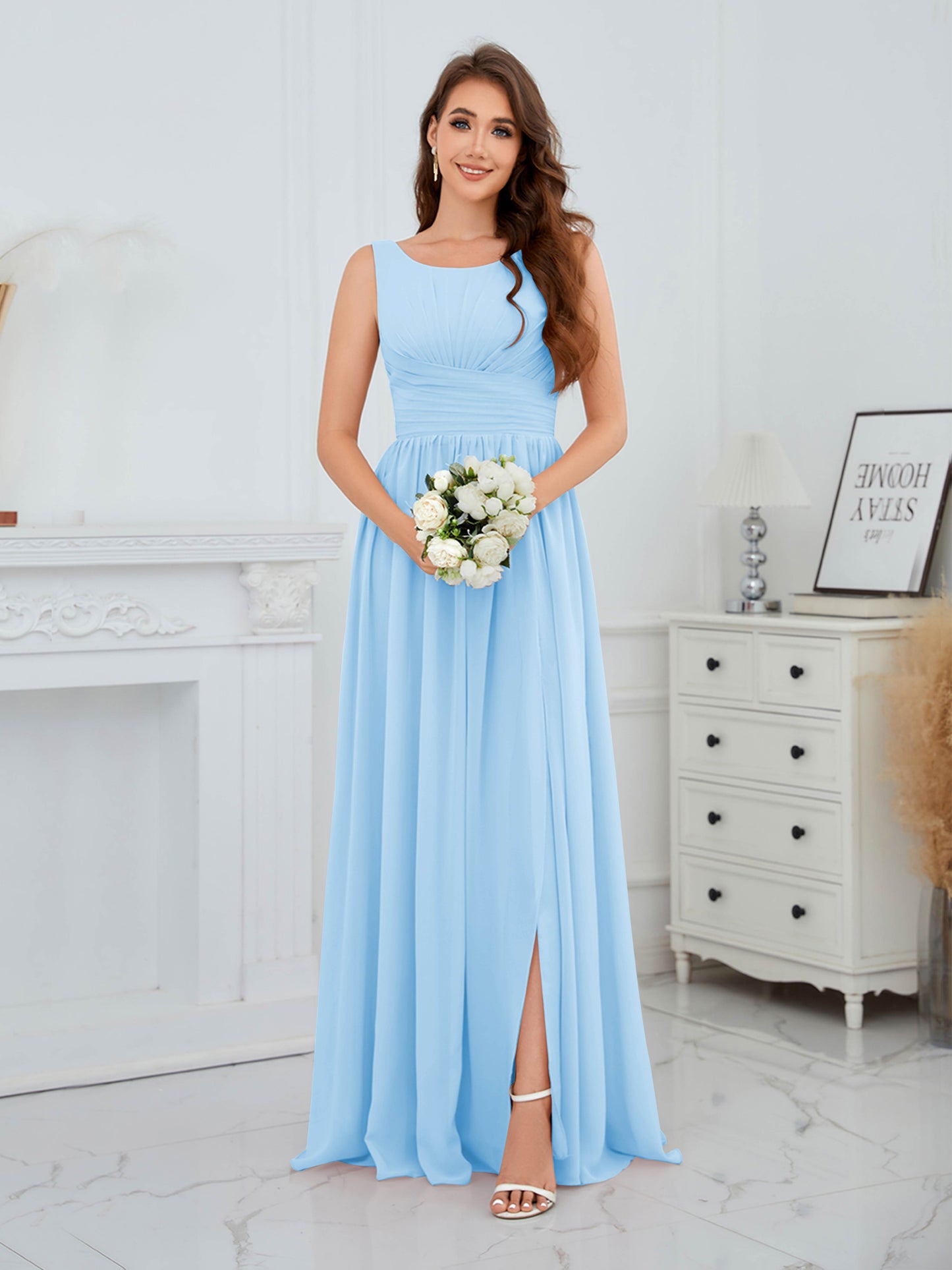 Graceful Sleeveless Pleated Slit Floor Length Chiffon Bridesmaid Dresses UK