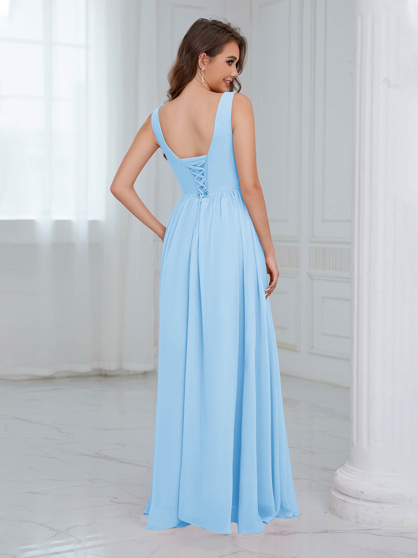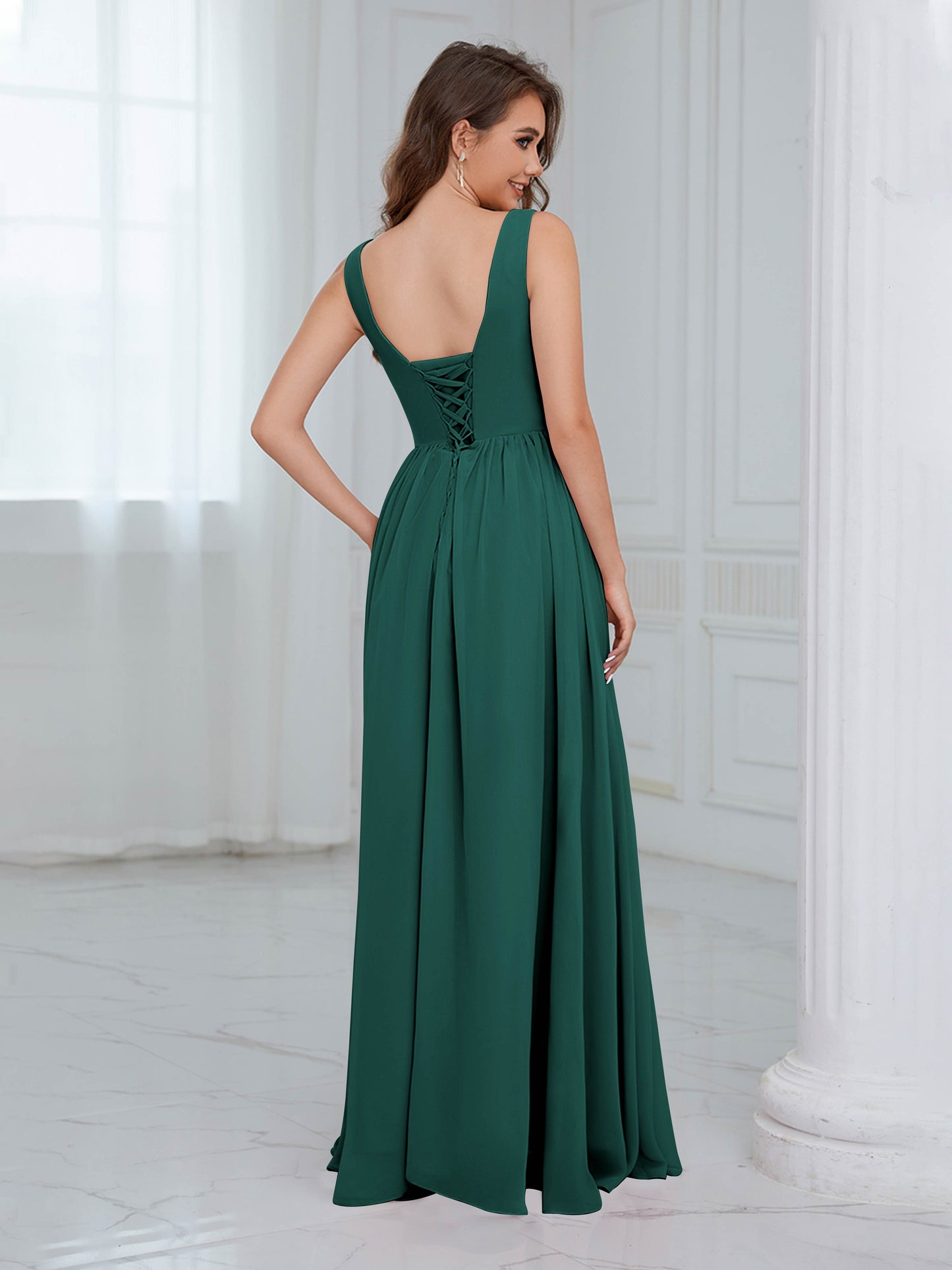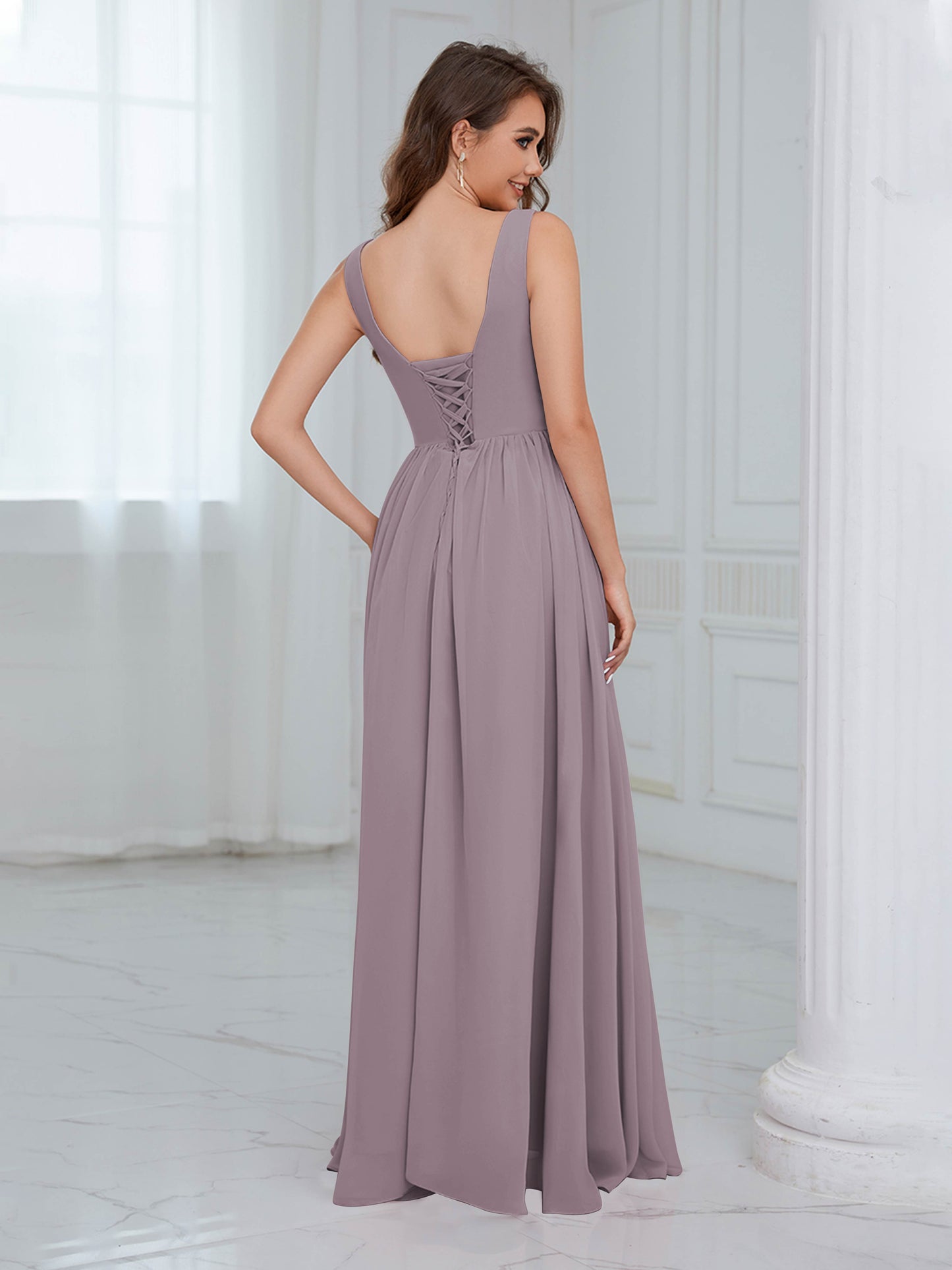 Graceful Sleeveless Pleated Slit Floor Length Chiffon Bridesmaid Dresses UK