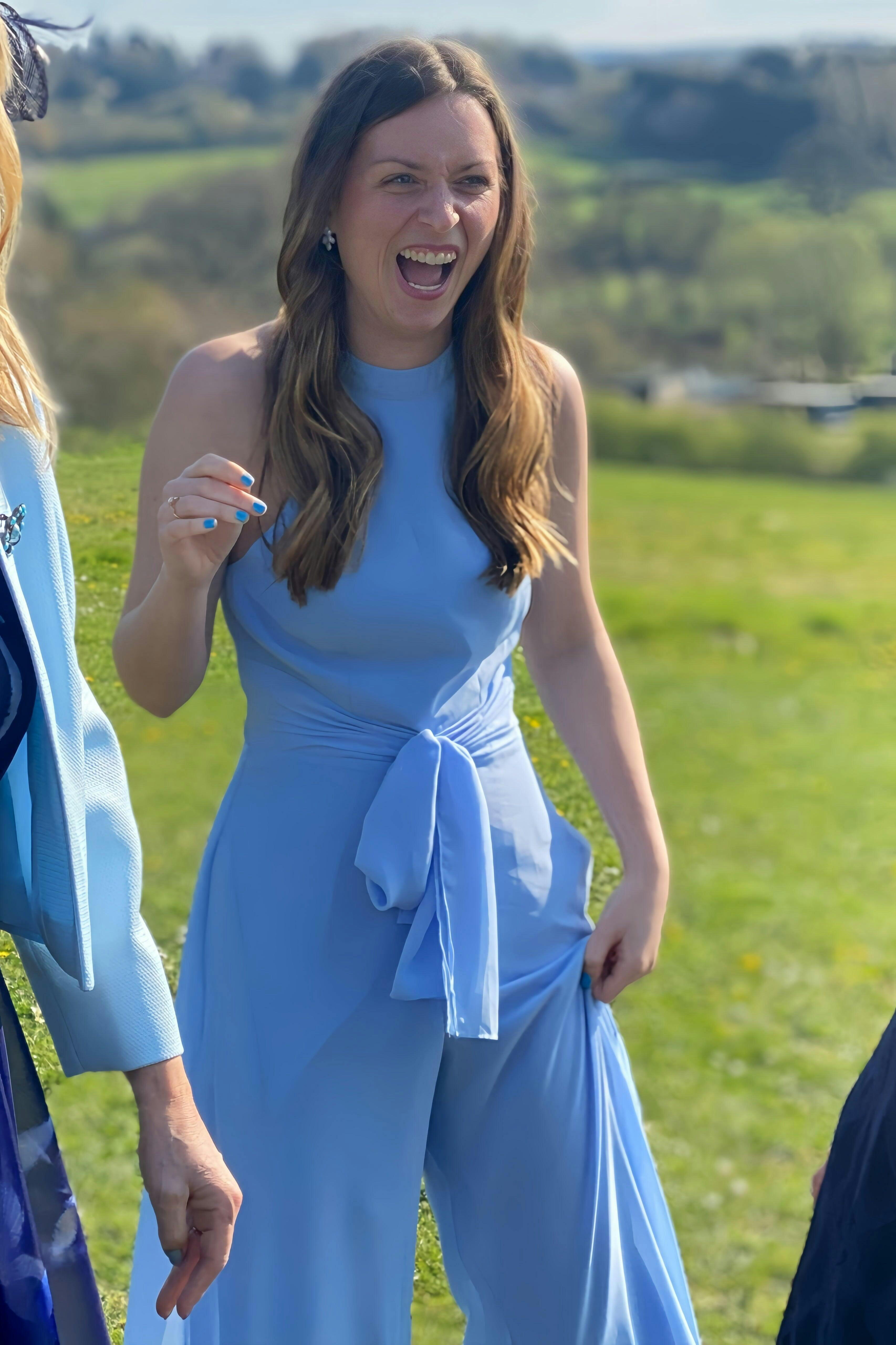 Jumpsuits Halter Neck Sleeveless Floor-Length Chiffon Bridesmaid Dresses with Ruched & Pockets UK