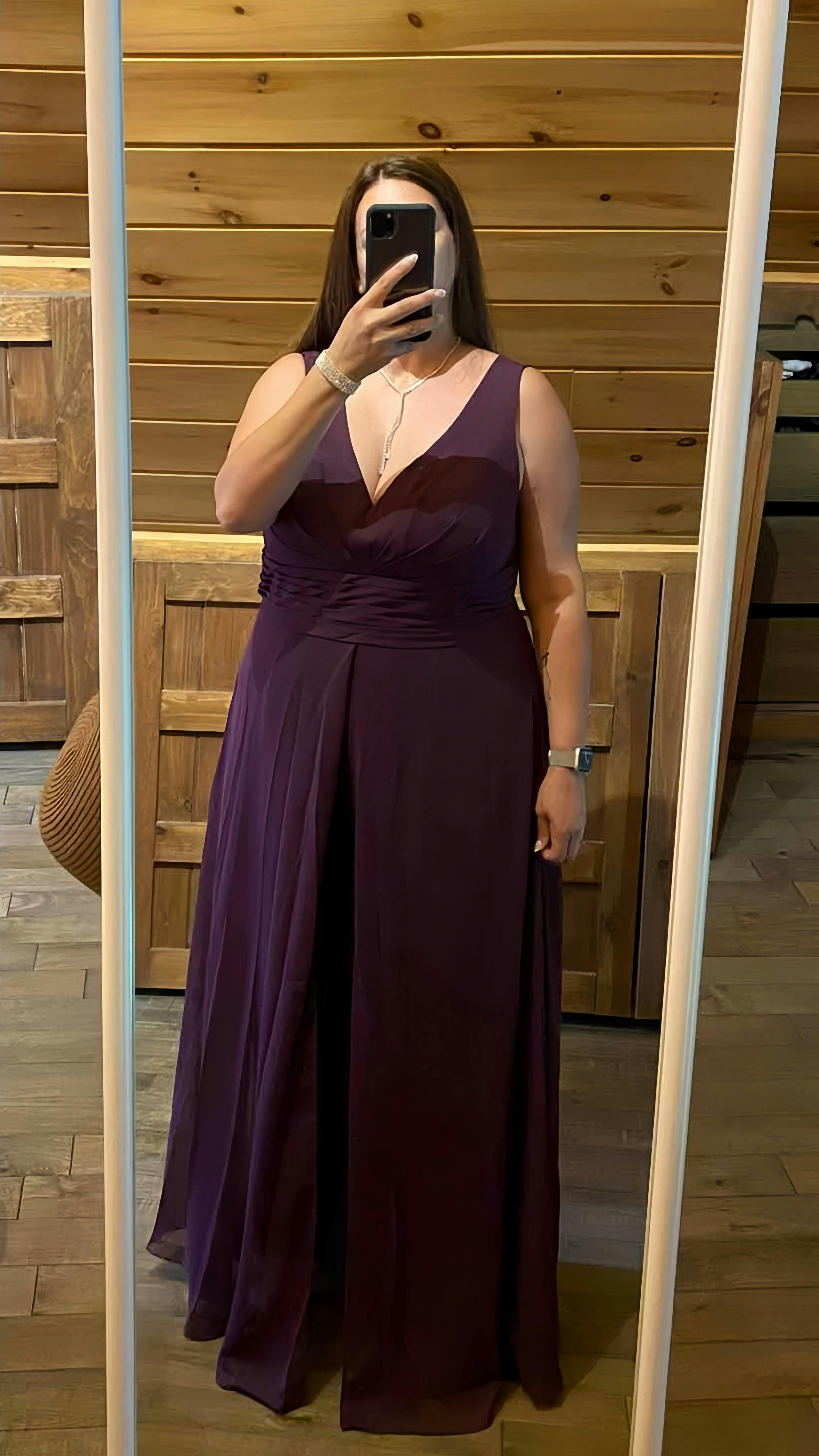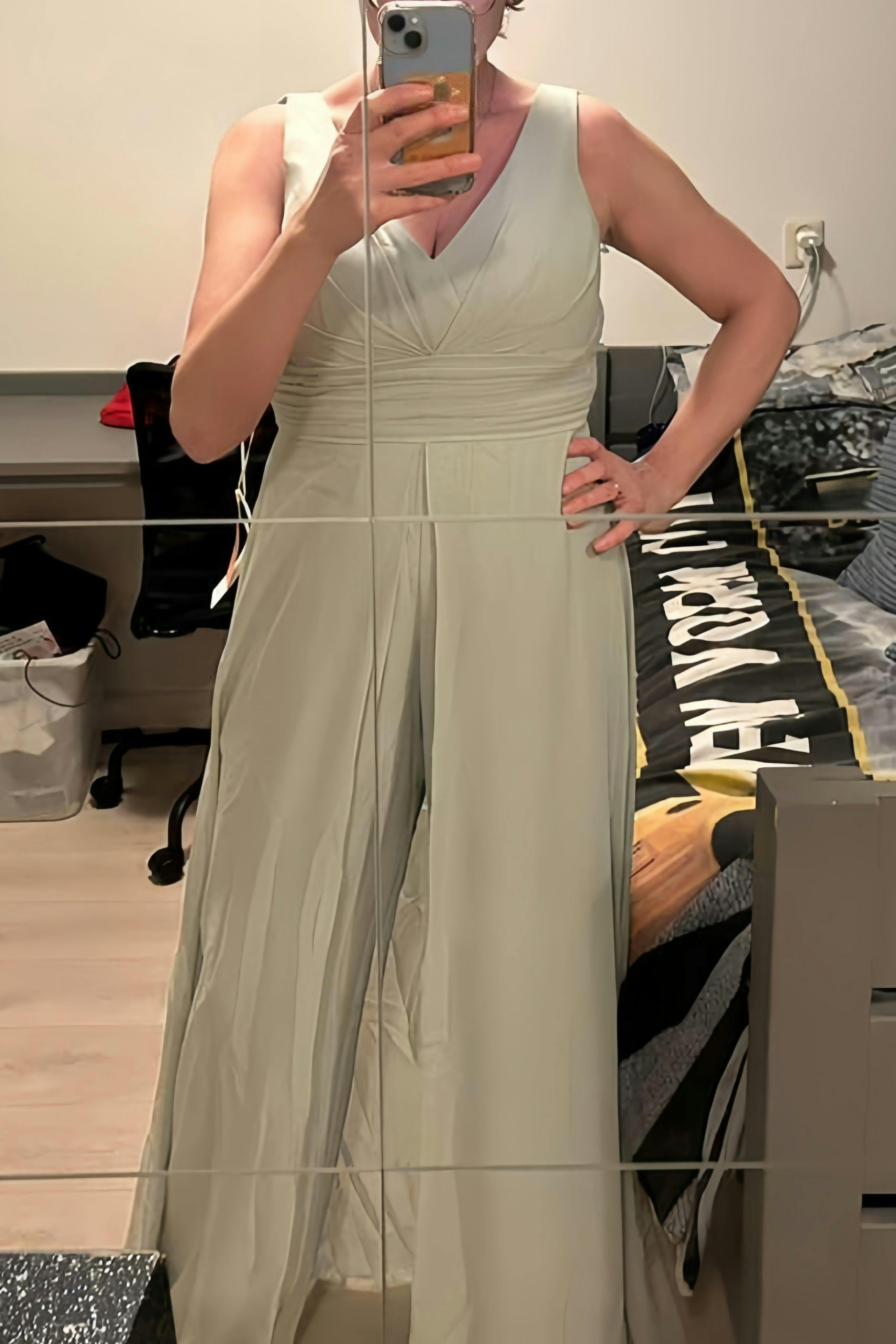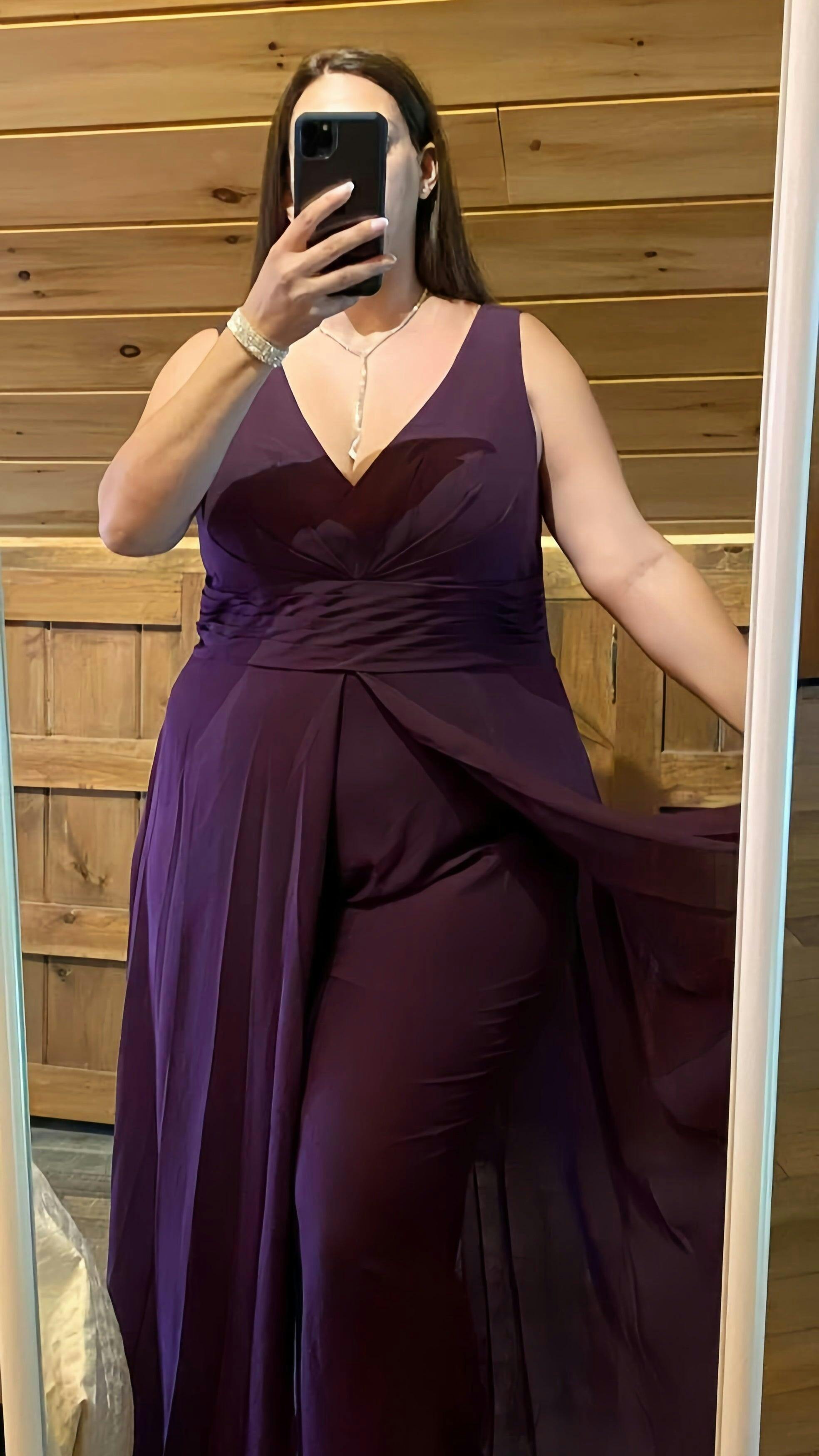 Jumpsuits V-Neck Sleeveless Floor-Length Plus Size Bridesmaid Dresses with Ruched UK