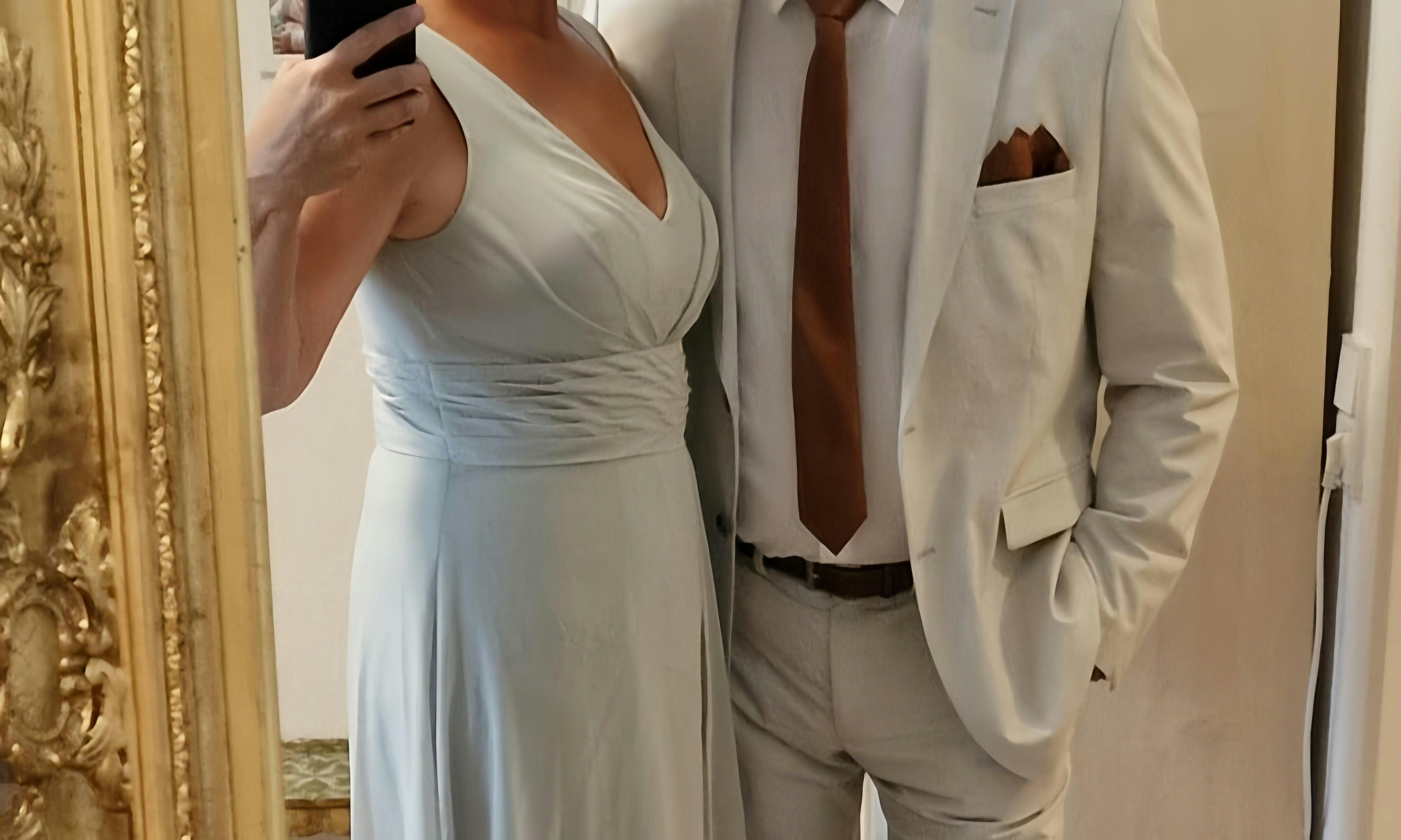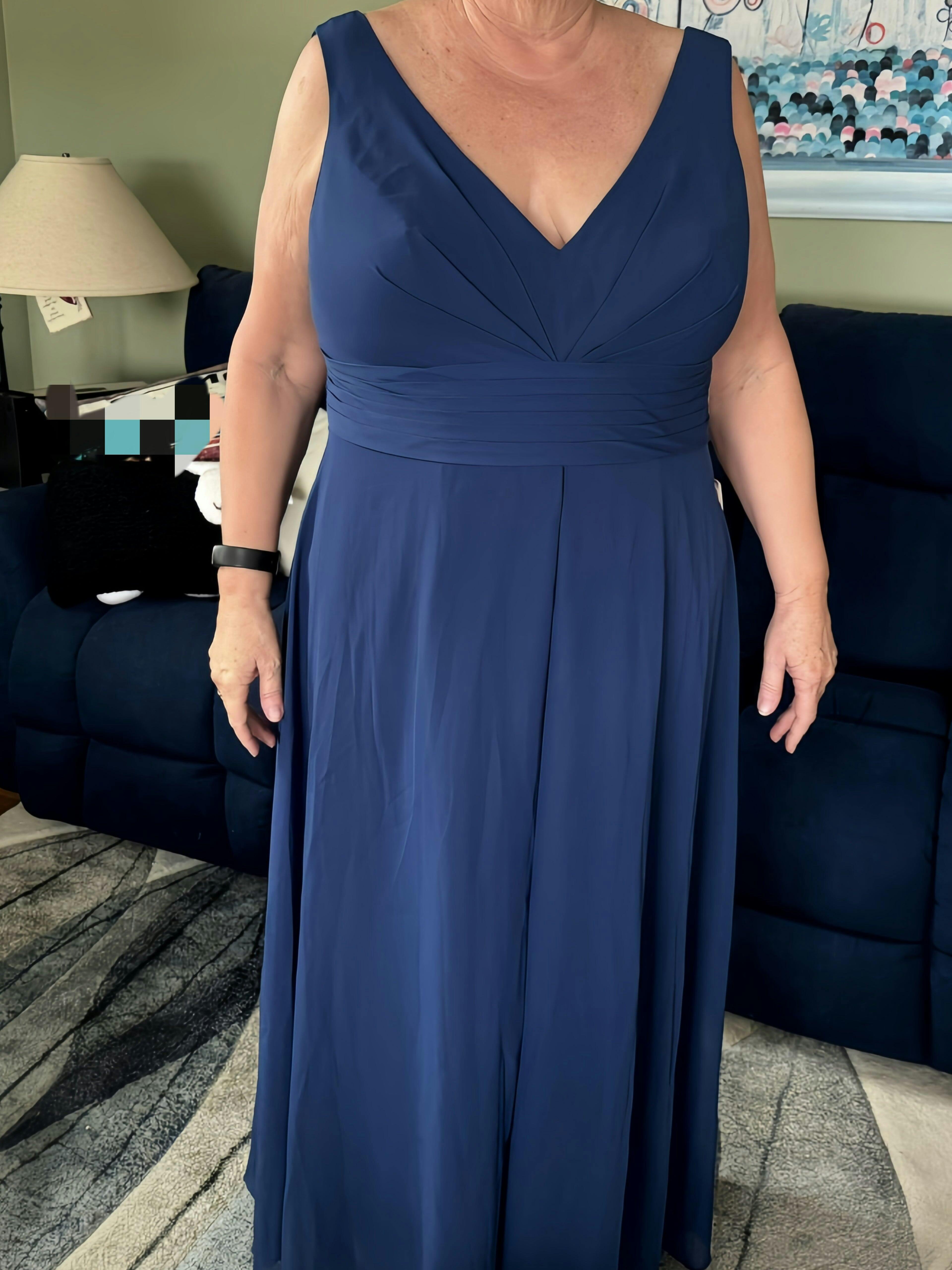 • The model is 5'7" (170cm), 160 lbs with measurements: (Bust 97cm, Waist 79cm, Hips 105cm, Hollow to hem 152cm). She is wearing a UK 14 dress.