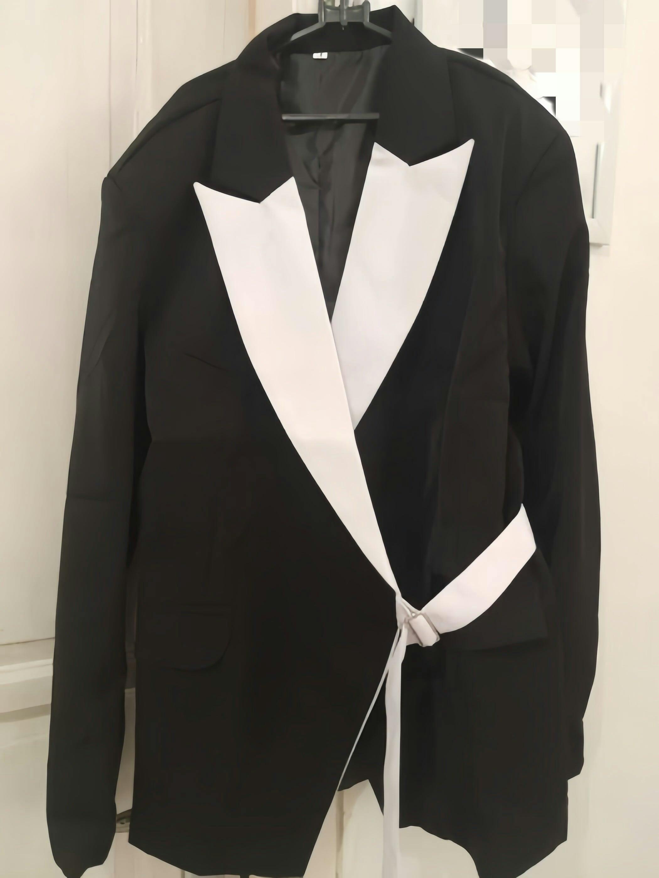 The fabric feels soft yet structured. The suit holds its shape throughout the night, and the peak lapel adds a sophisticated touch. The belt accent is a small but noticeable feature that elevates it.
