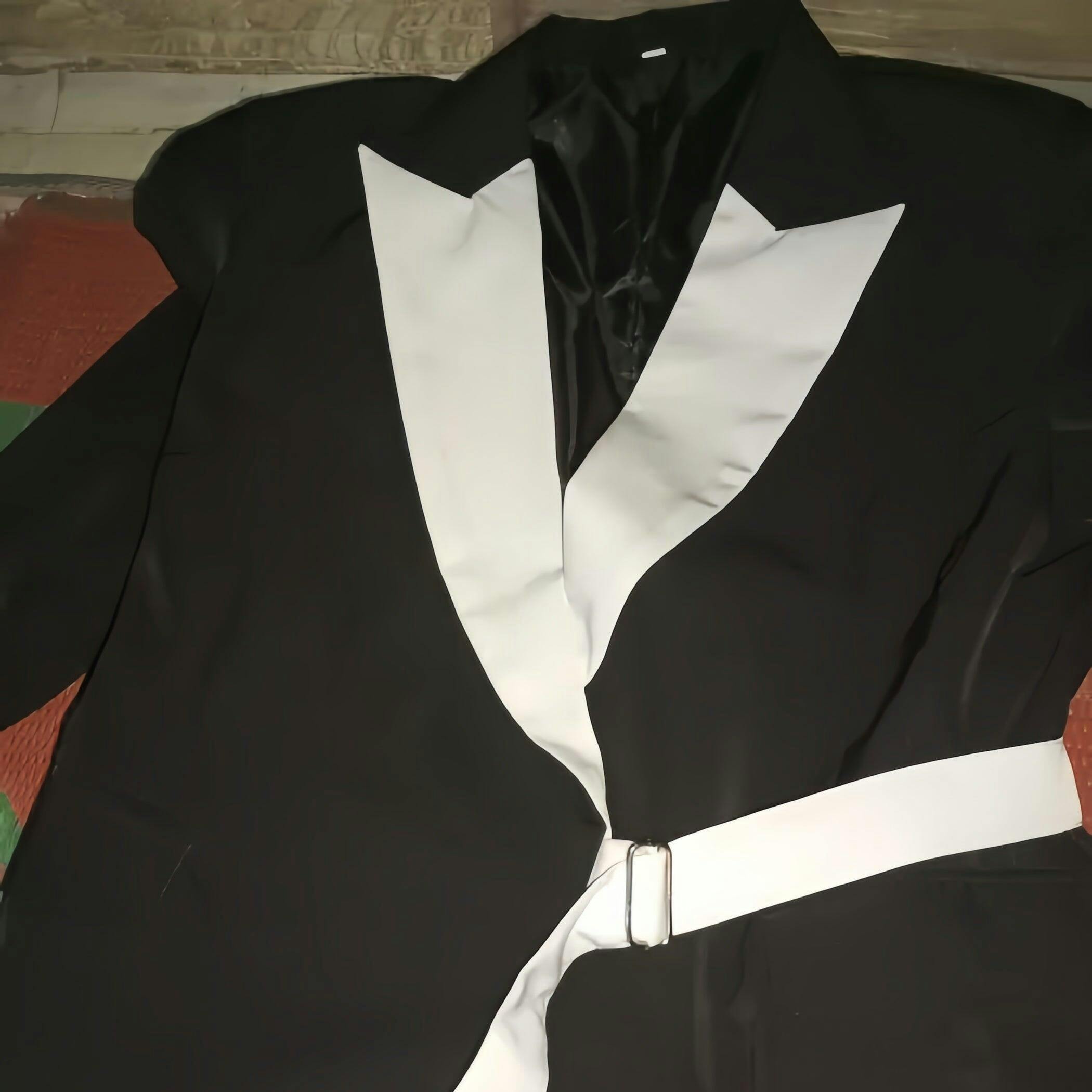 I bought this suit for a wedding, and it was a total hit. The one-button peak lapel design gives it a very sleek and modern look. The contrast belt adds a unique twist that makes it stand out from typical suits. Tailoring is great and fits comfortably.