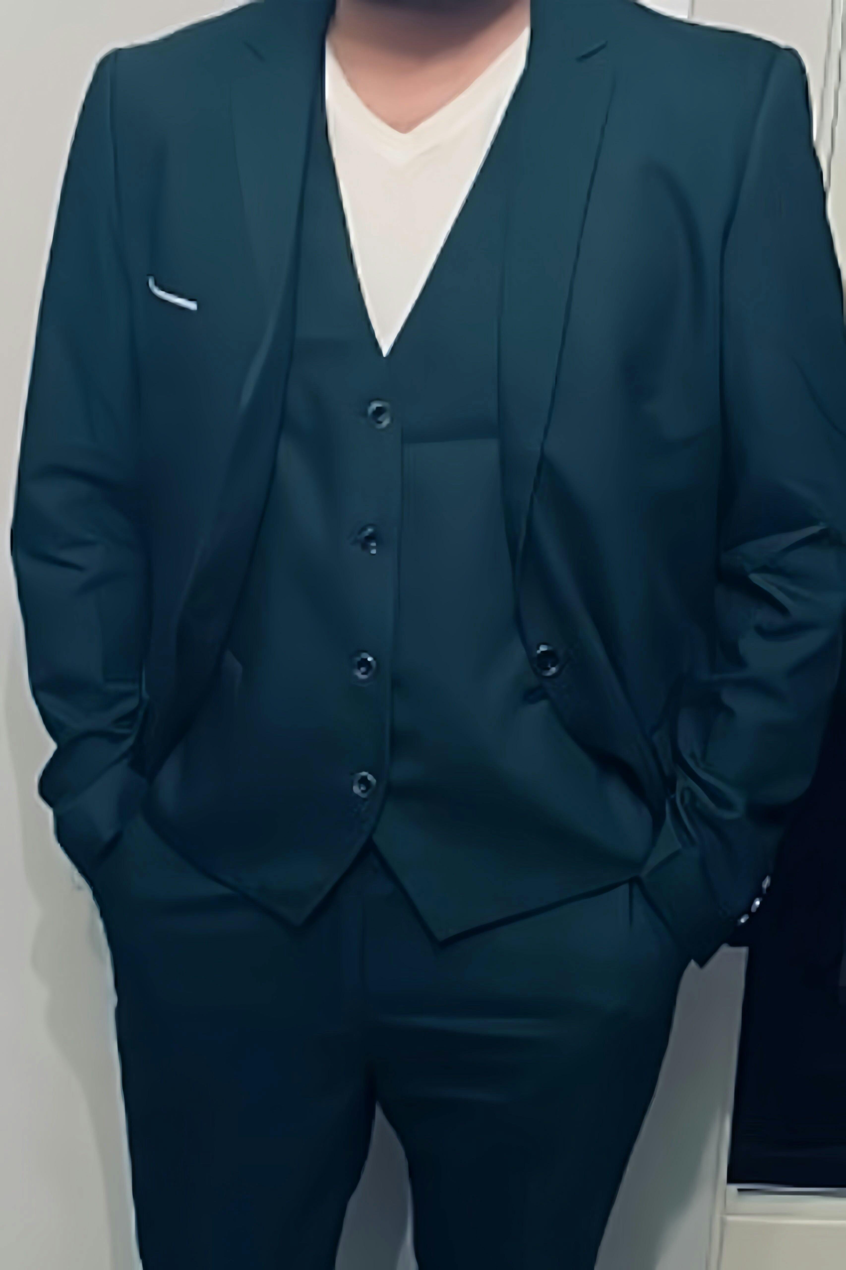 Honestly, I wasn't sure about a slim-fit 3-piece suit, but this looks amazing. The jacket fits snugly, and the pants are tailored well. Wore it for an engagement shoot, and photos turned out great. Definitely planning to get another color.