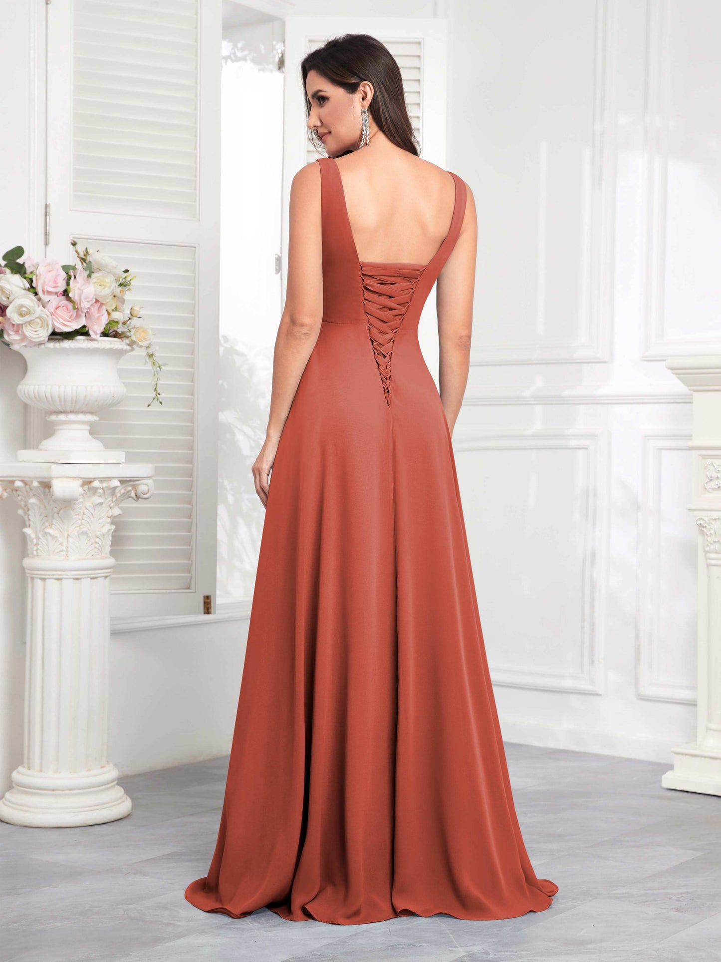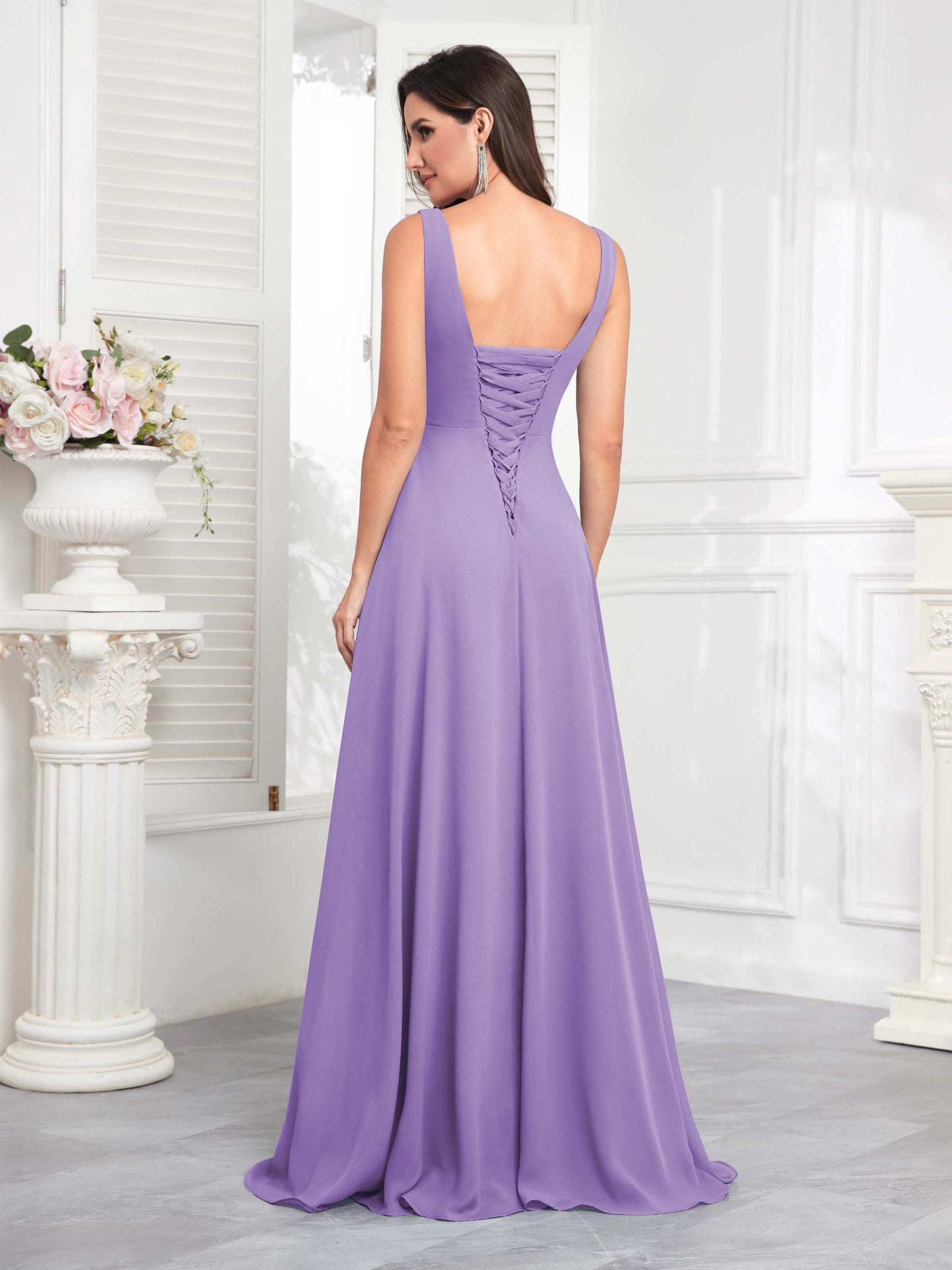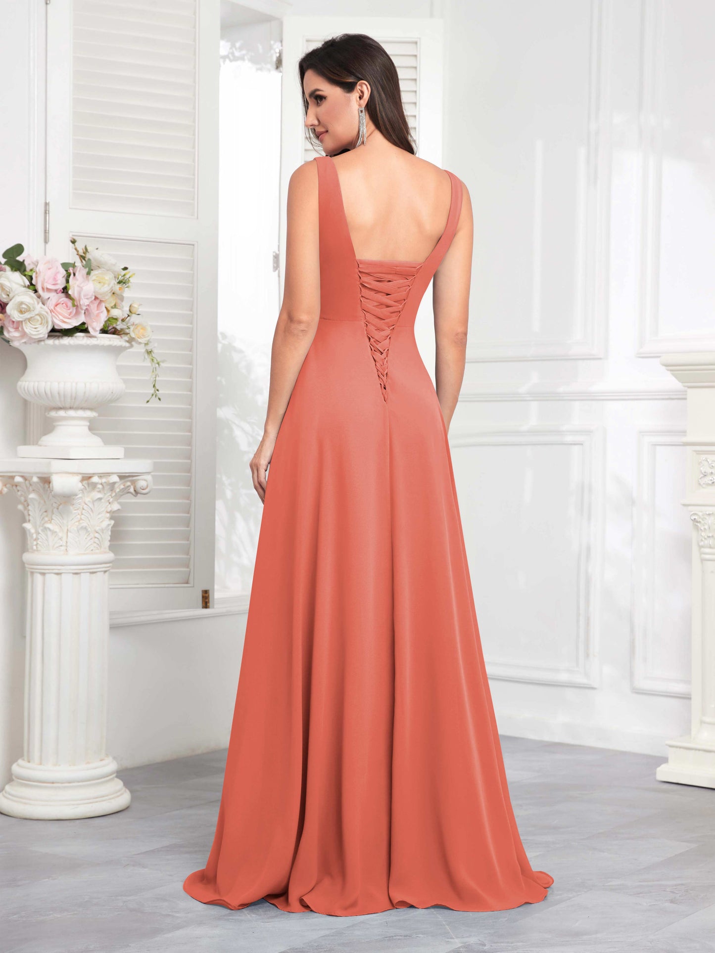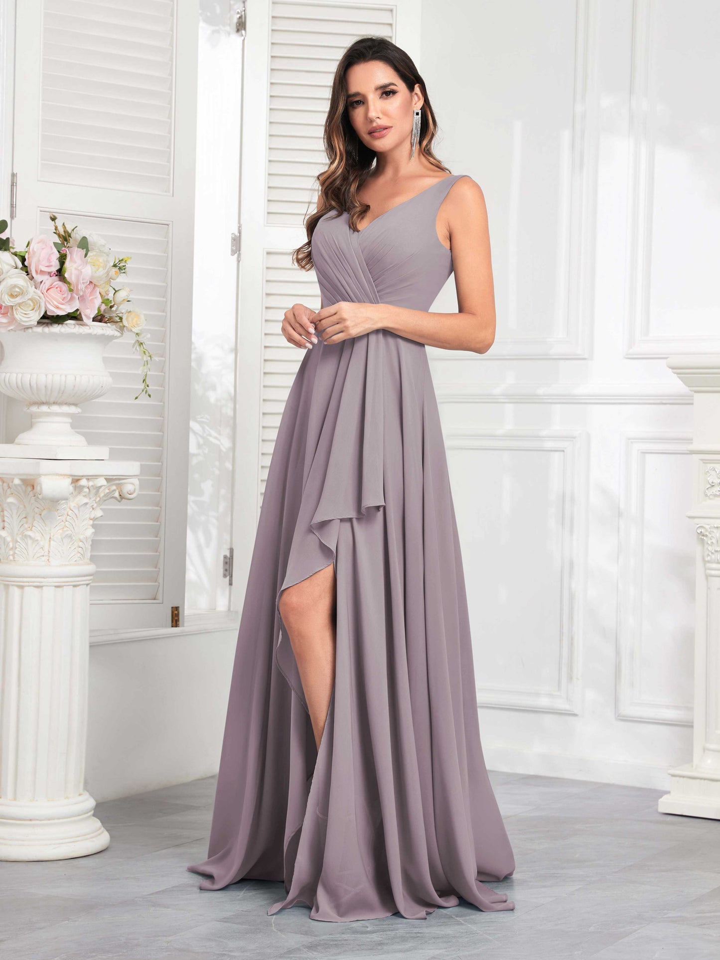 • Enhance your bridal party's style with Mollyevers' Modern A-Line V-Neck Sleeveless Slit Ruched Chiffon Bridesmaid Dress. Featuring a flattering V-neck, elegant ruching, and a chic side slit, this dress combines contemporary design with timeless charm for a stunning look on your special day.