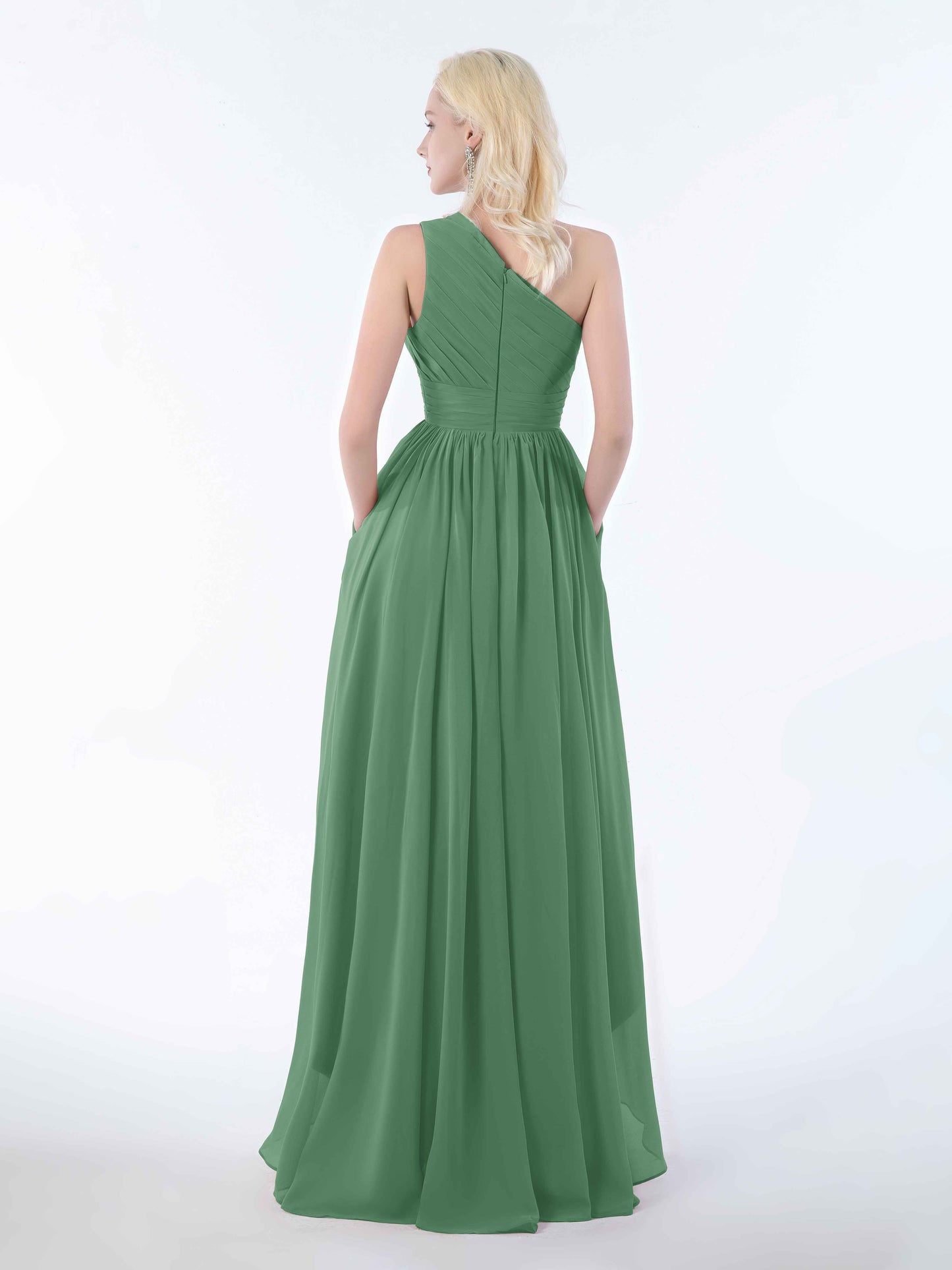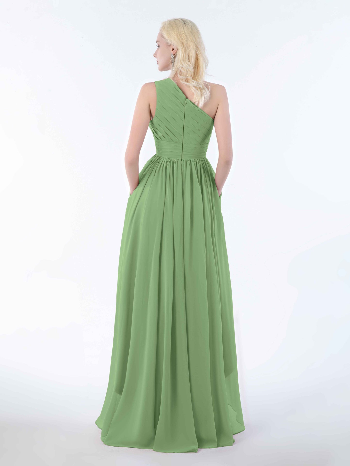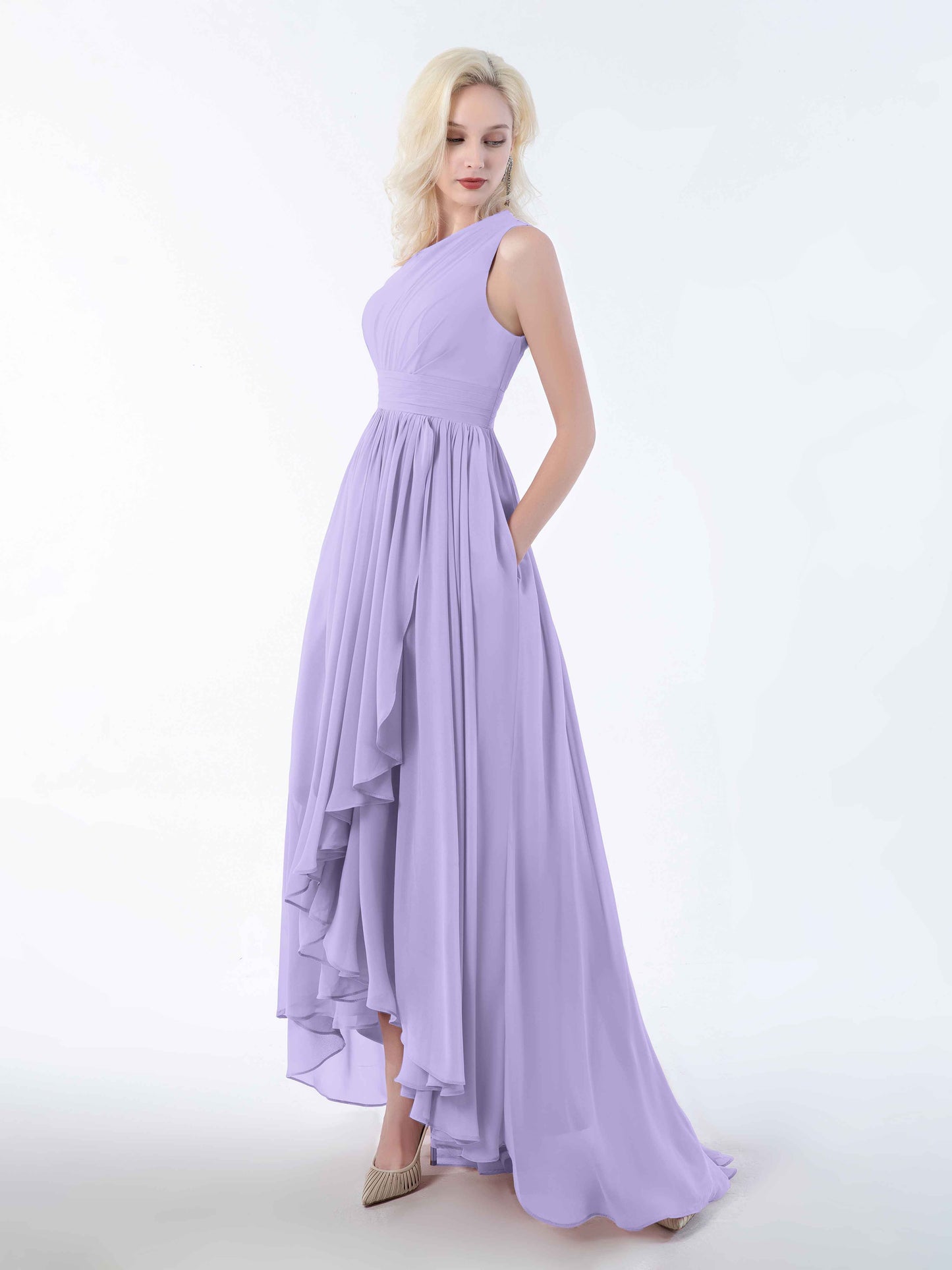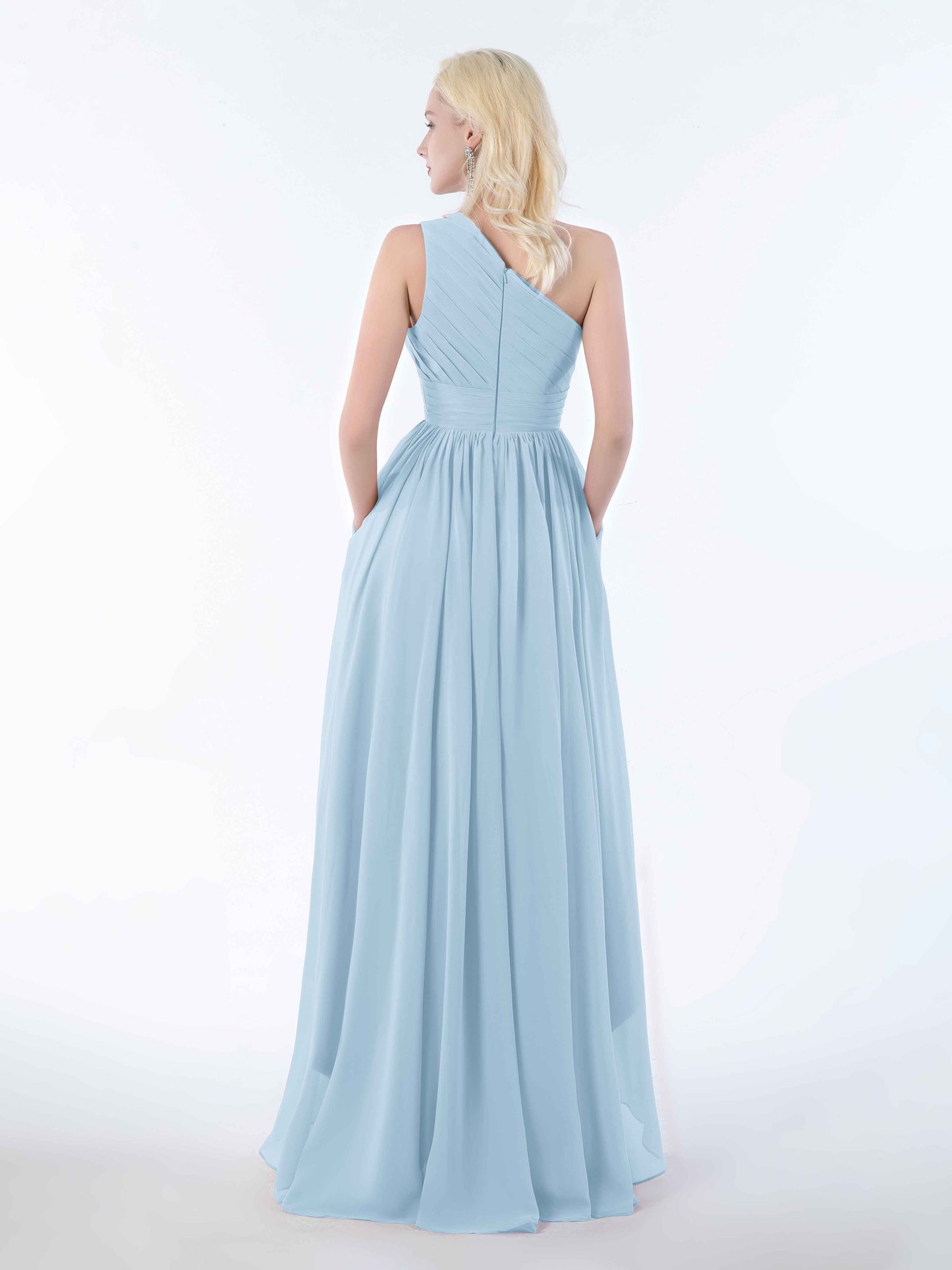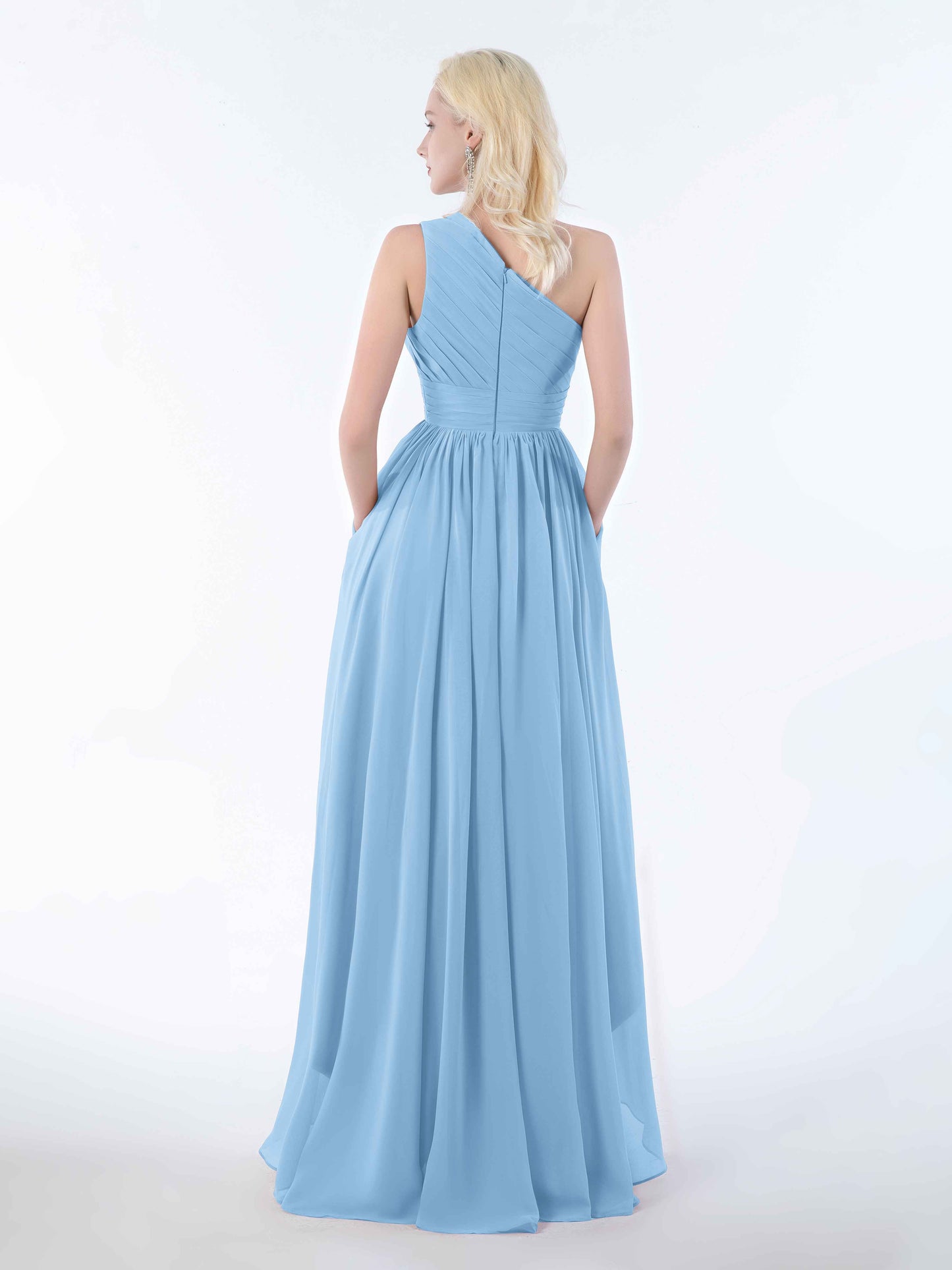 Absolutely loved this dress for my sister's wedding! The one-shoulder cut is elegant but not too fussy, and the high-low hem made twirling down the aisle ridiculously fun. The chiffon is soft and breathable, even in the slightly sweaty church pews. And honestly, the pockets? Game changer. I could carry my lipstick and tissues without looking like I was sneaking snacks into the ceremony!