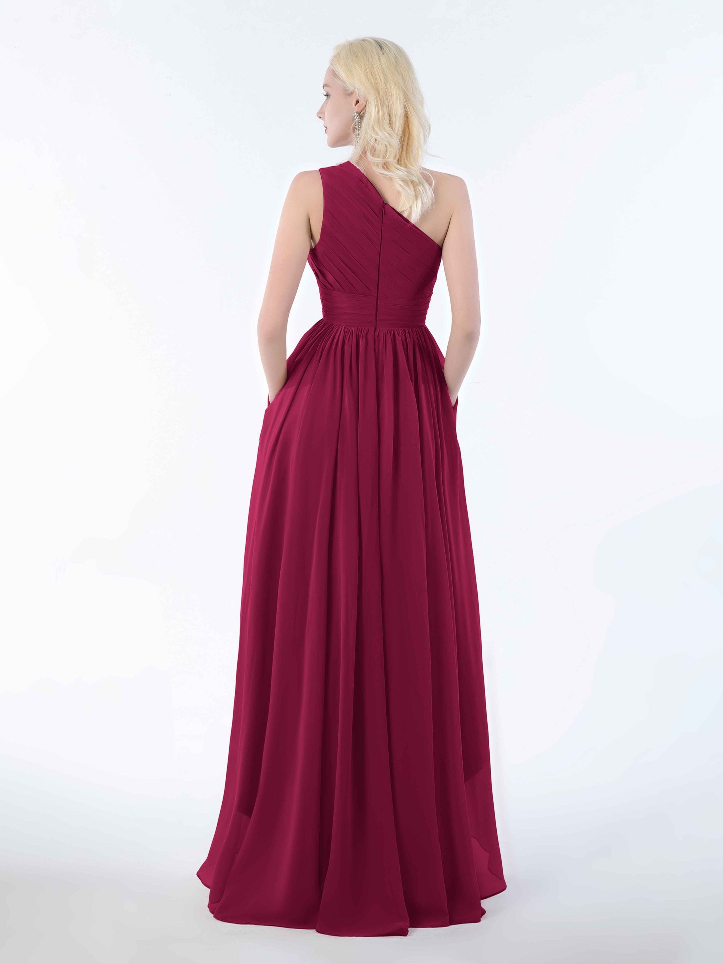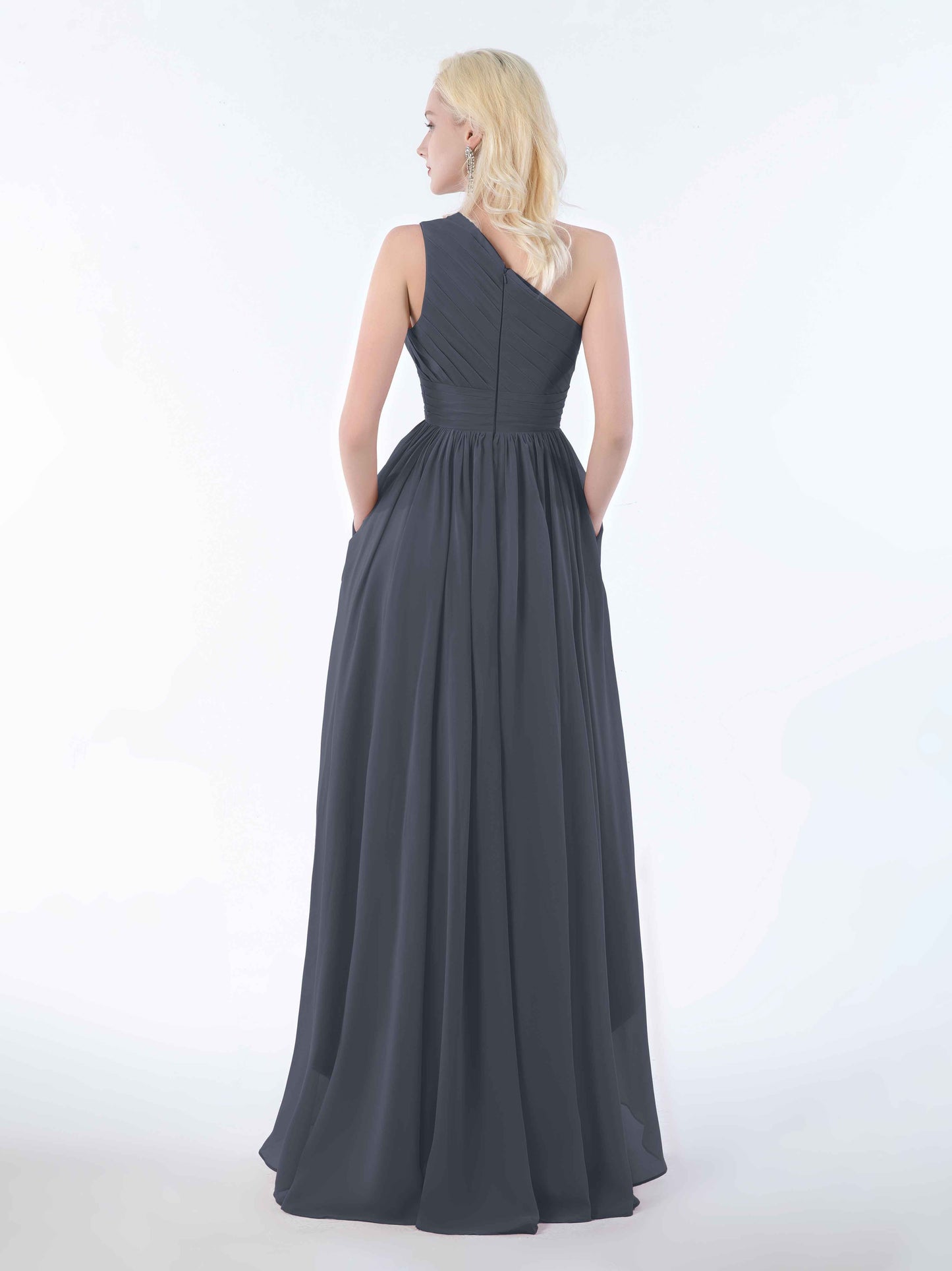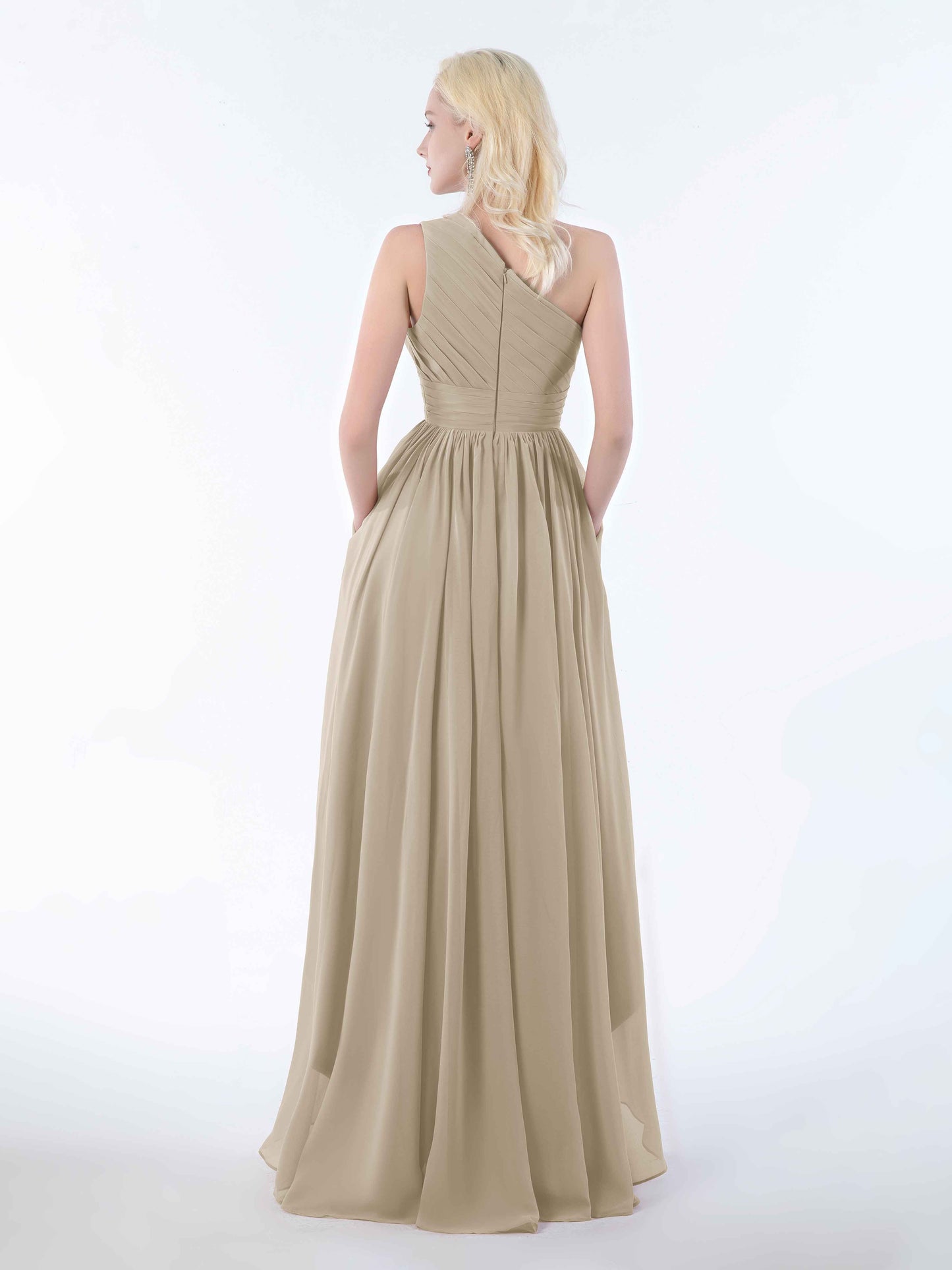 Bought this for a friend's wedding and I'm still raving about it. The one-shoulder design is sophisticated without being stuffy, and the chiffon is delightfully soft. Bonus: the pockets actually fit more than just a phone. Perfect for tissues, mints, or emergency chocolate-essential for surviving a long, emotional wedding day. Would 100% recommend!