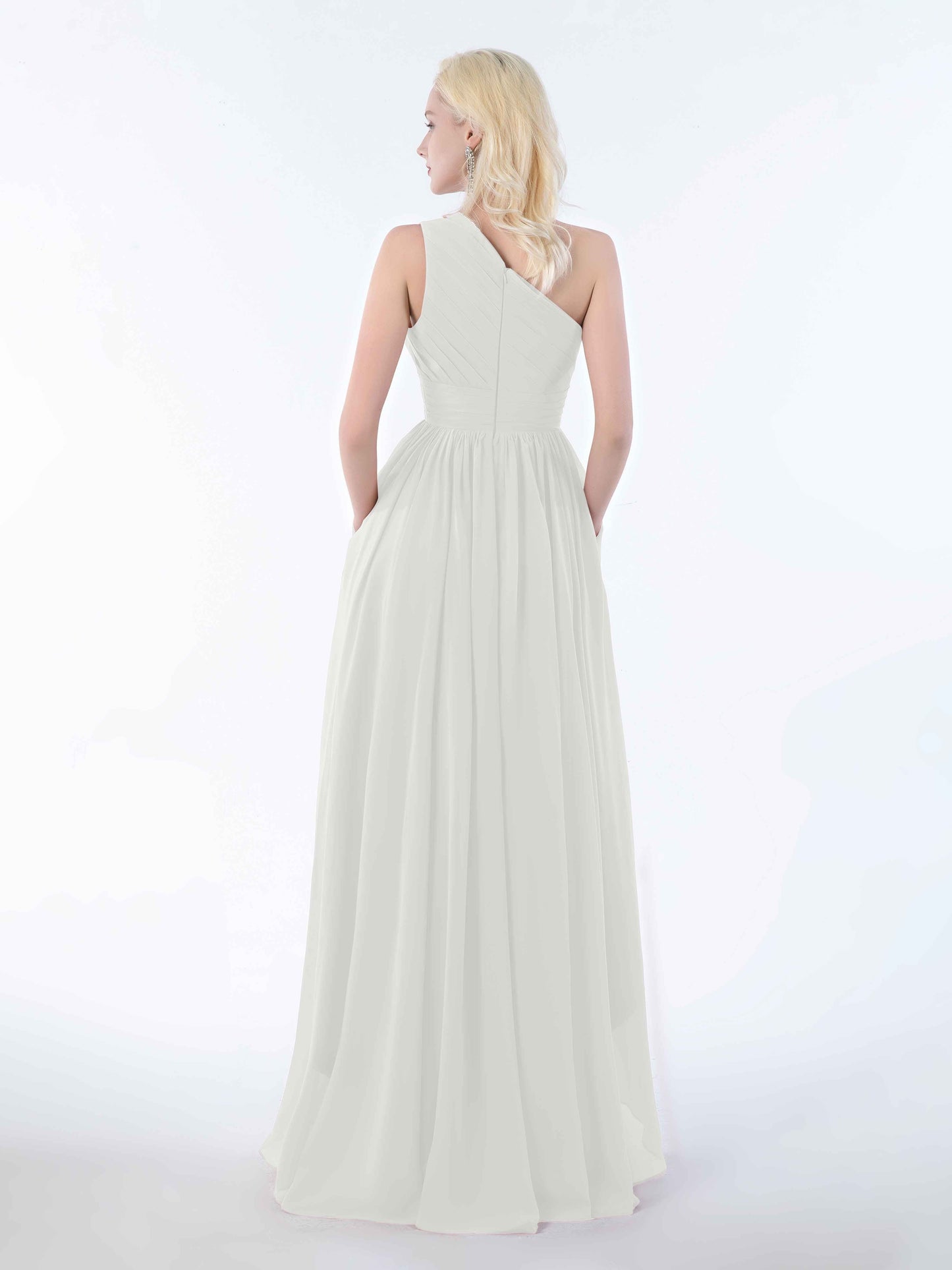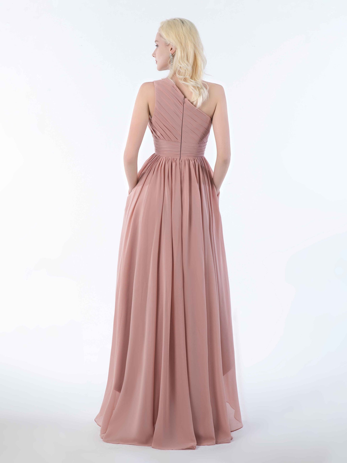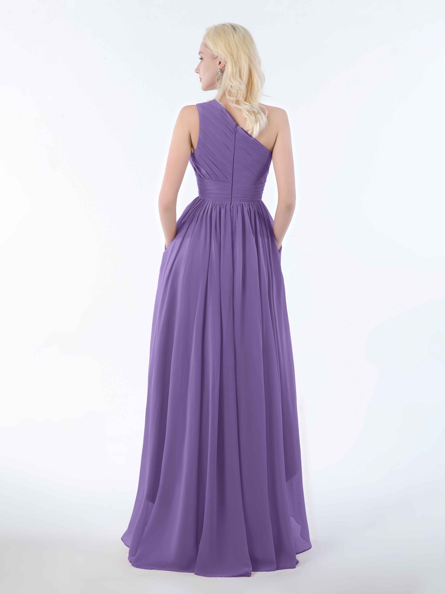 Bought this for a friend's wedding and I'm still raving about it. The one-shoulder design is sophisticated without being stuffy, and the chiffon is delightfully soft. Bonus: the pockets actually fit more than just a phone. Perfect for tissues, mints, or emergency chocolate-essential for surviving a long, emotional wedding day. Would 100% recommend!