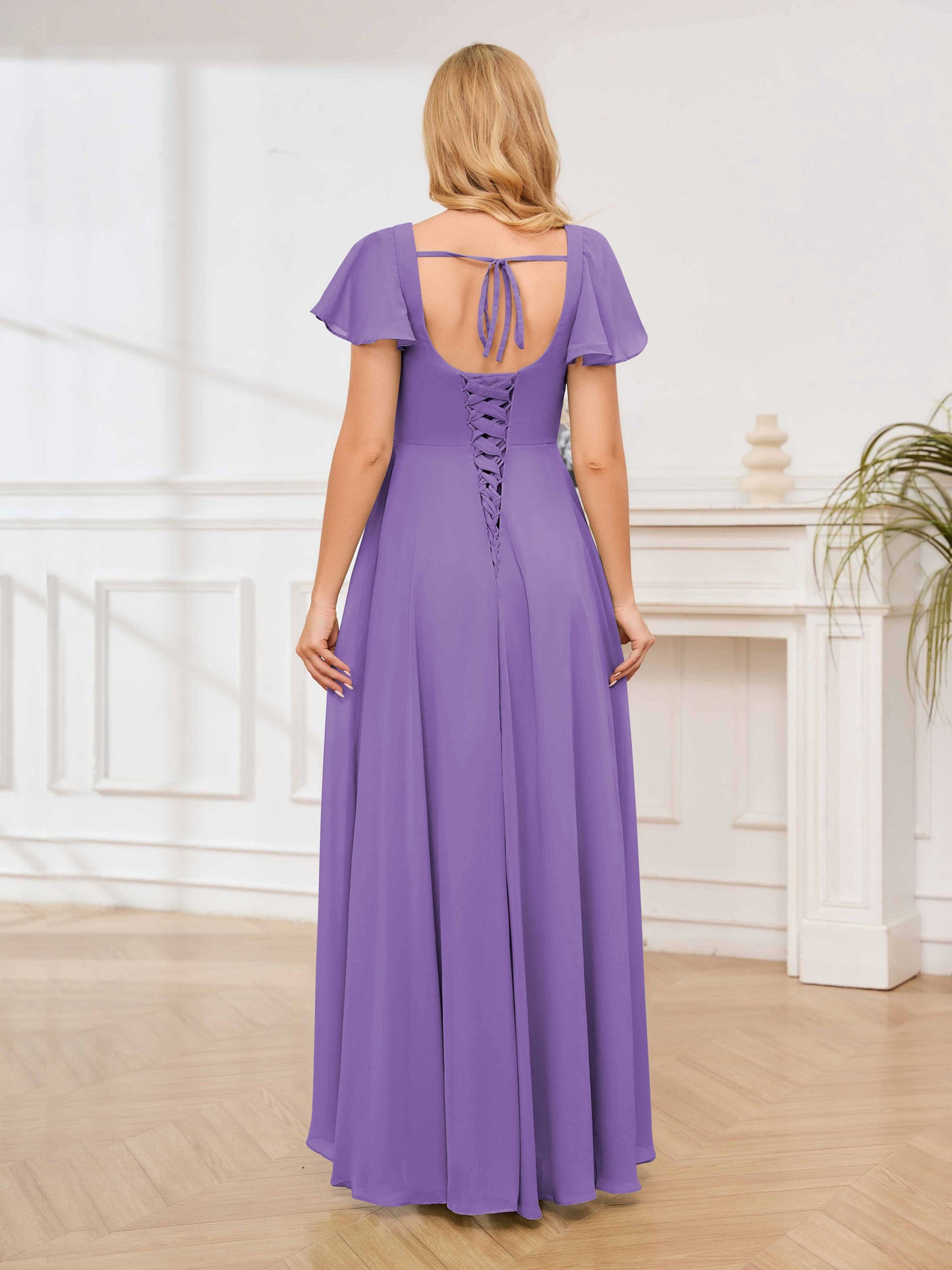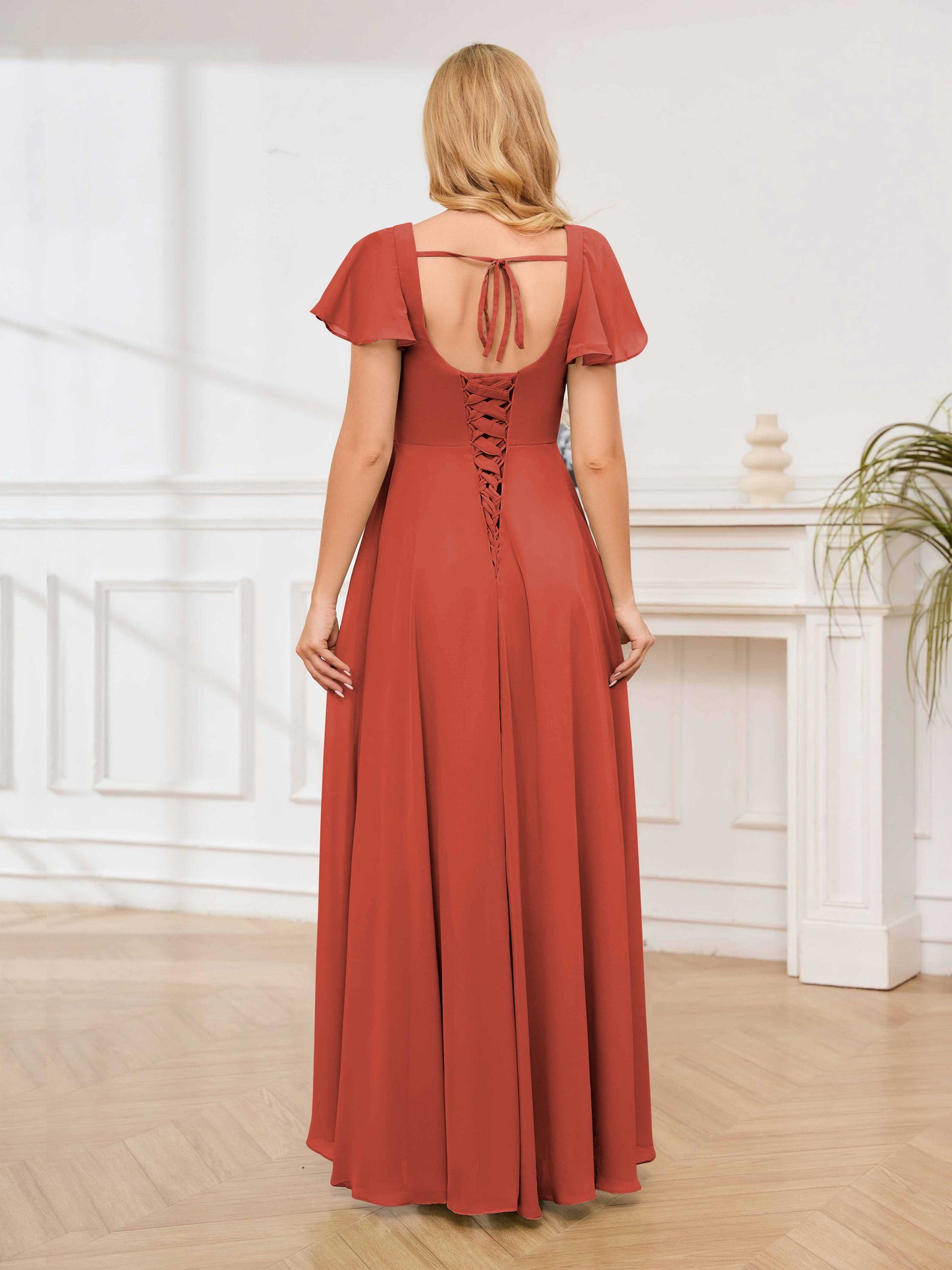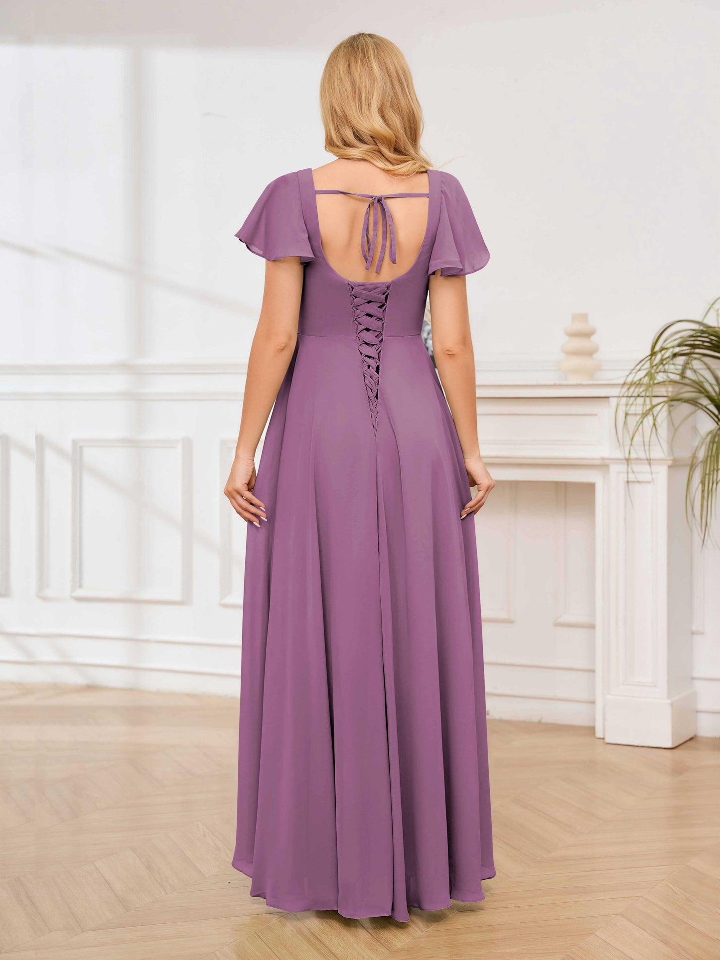 • Embrace modernity with these square-neck ruffle high-low chiffon bridesmaid dresses. Designed for UK plus-size women, these dresses offer a stylish and contemporary look. Perfect for a modern wedding, these dresses will make your bridesmaids look effortlessly chic.