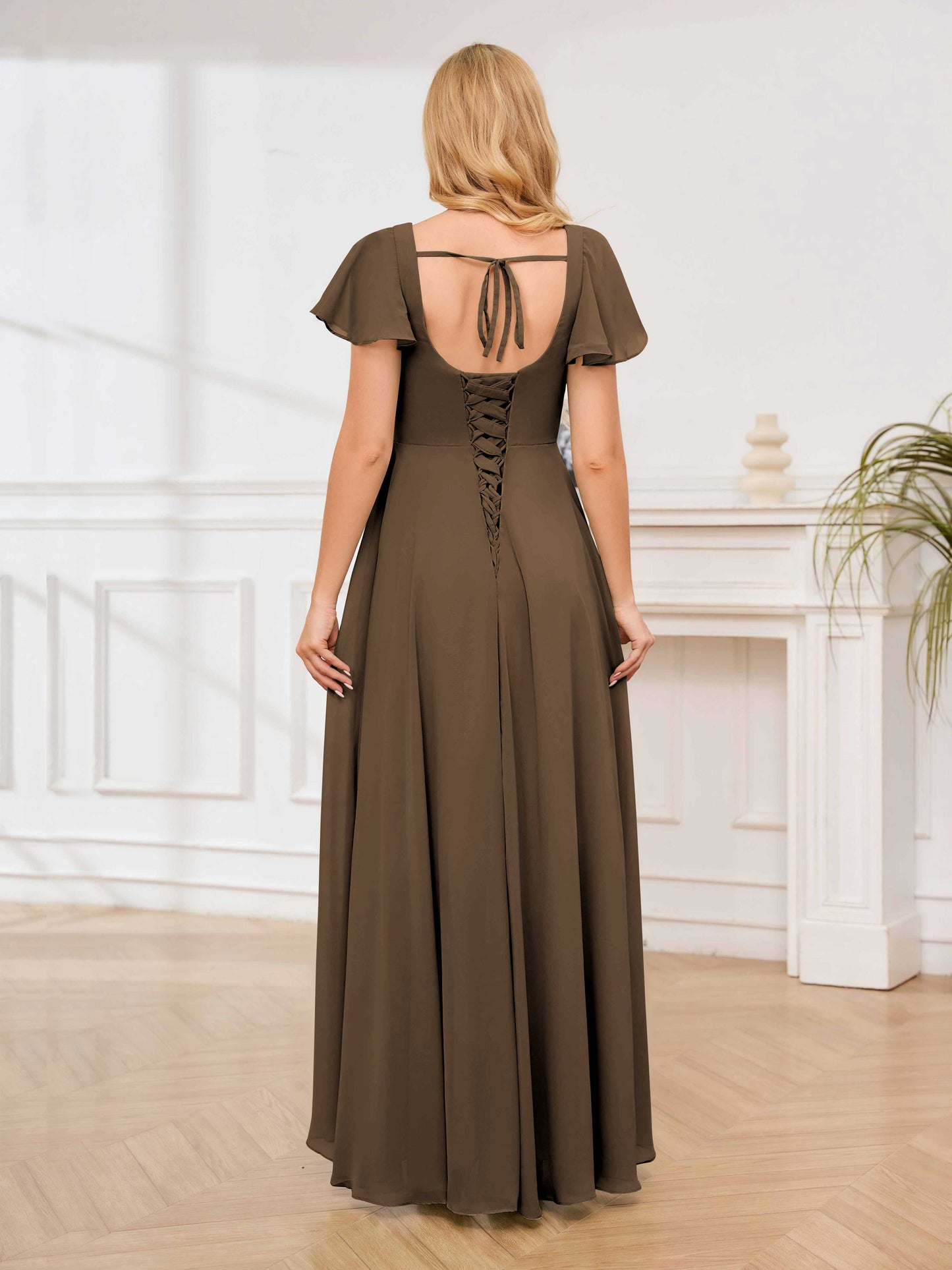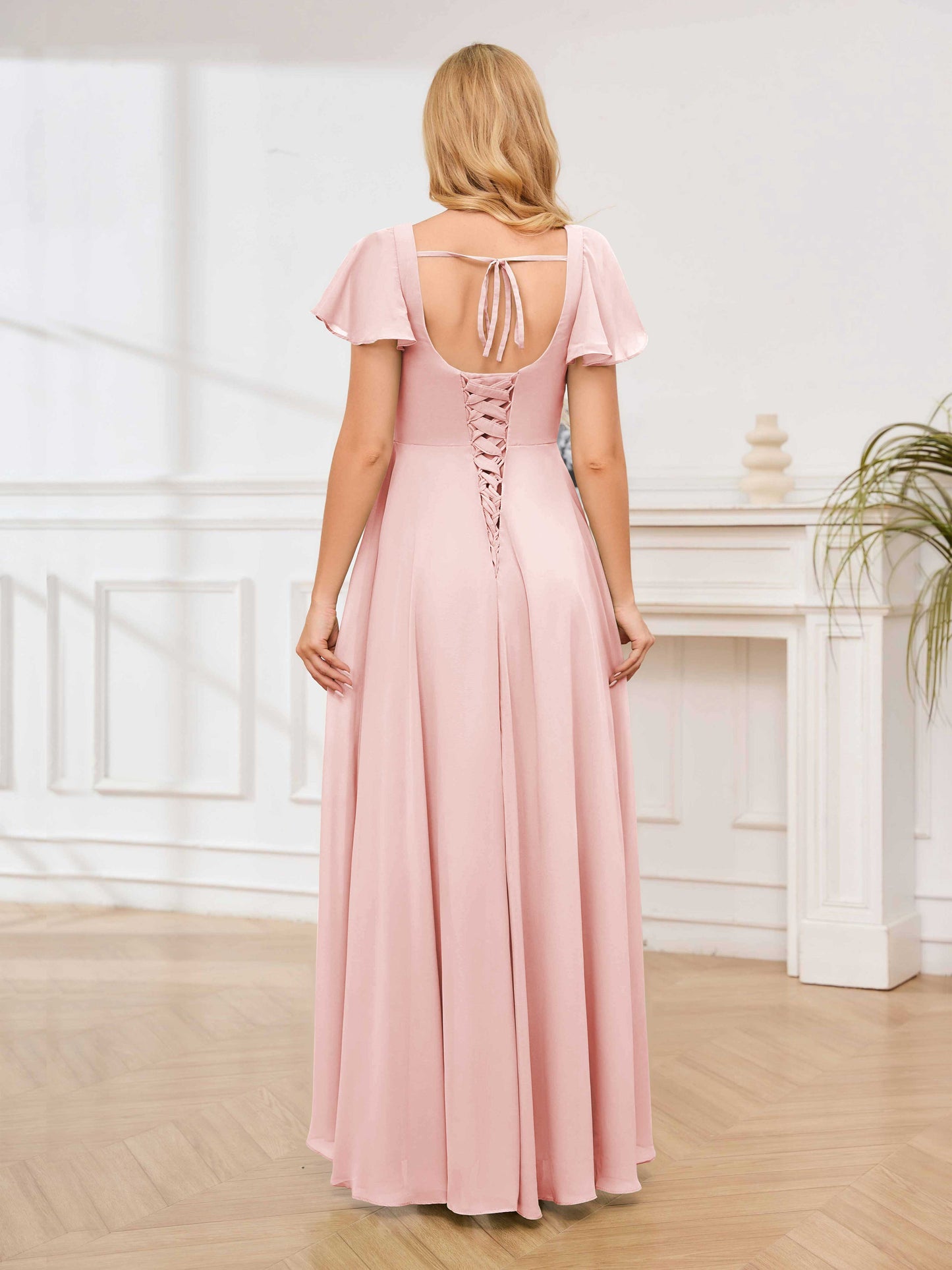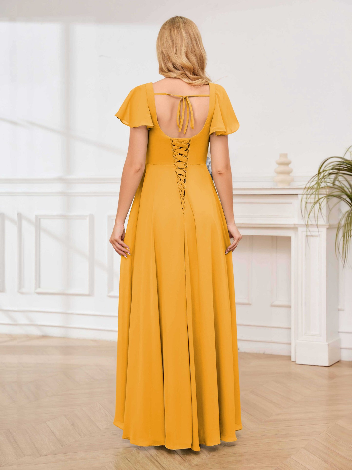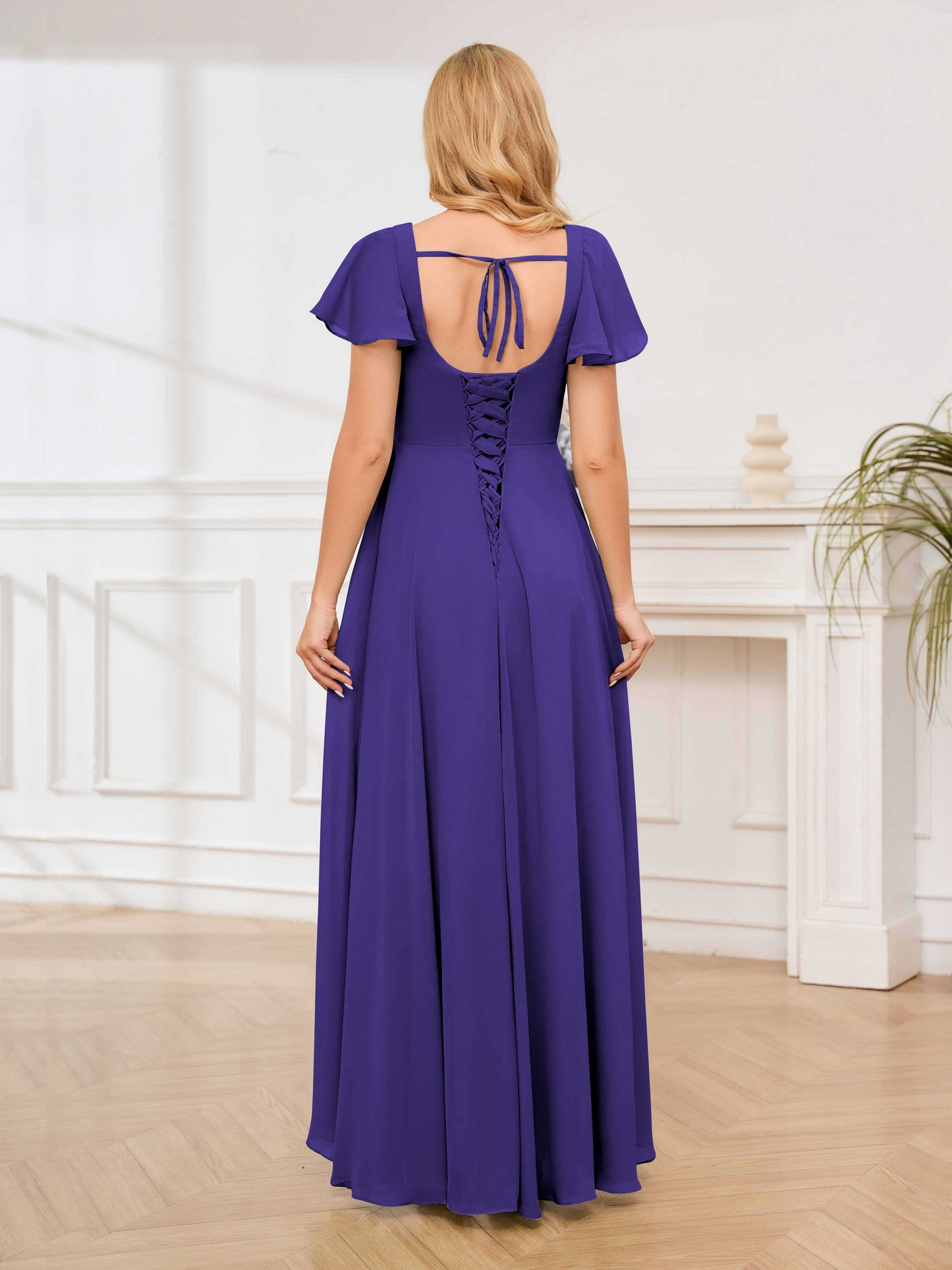 • Embrace modernity with these square-neck ruffle high-low chiffon bridesmaid dresses. Designed for UK plus-size women, these dresses offer a stylish and contemporary look. Perfect for a modern wedding, these dresses will make your bridesmaids look effortlessly chic.