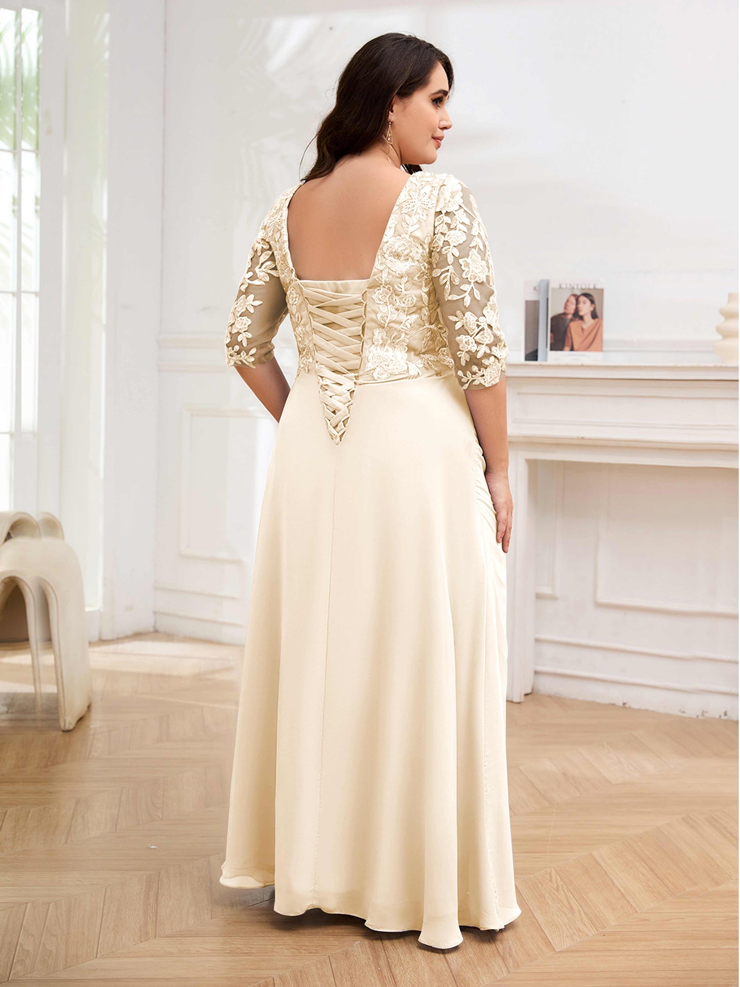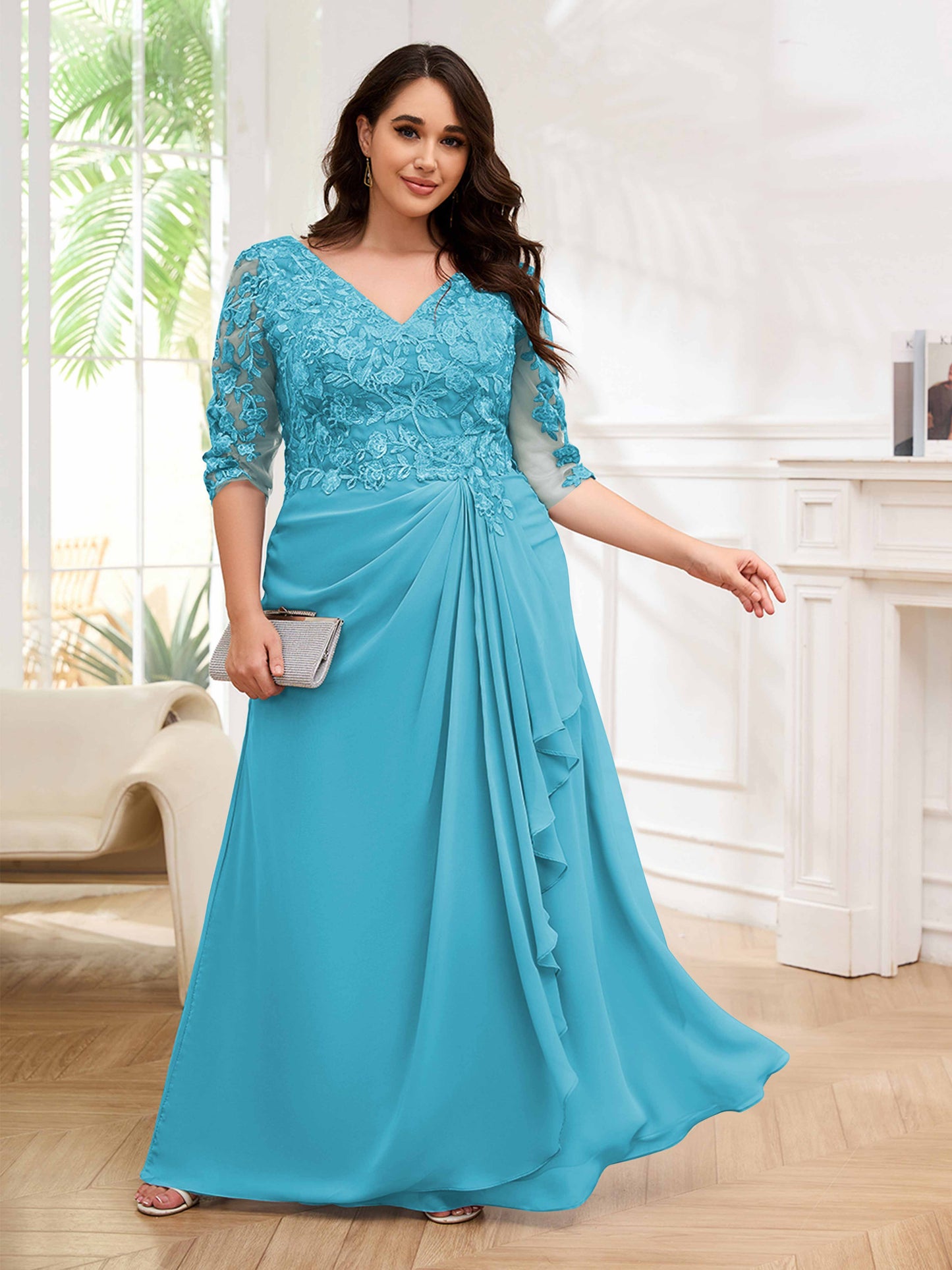 • Embrace modernity with this V-neck half-sleeve lace chiffon mother of the bride dress. Designed for UK plus-size women, this dress offers a stylish and contemporary look. Perfect for a modern wedding, this dress will make you look effortlessly chic.