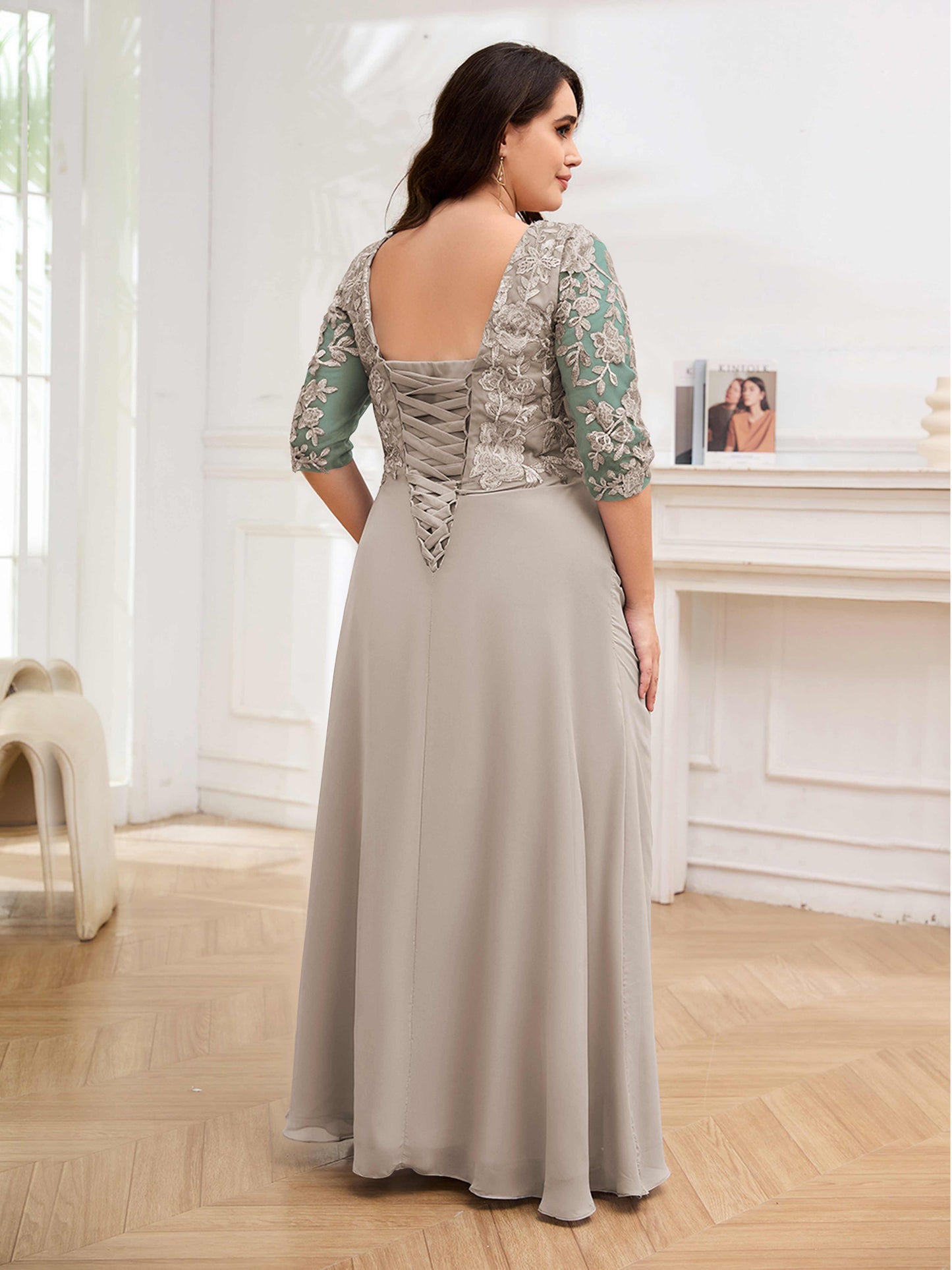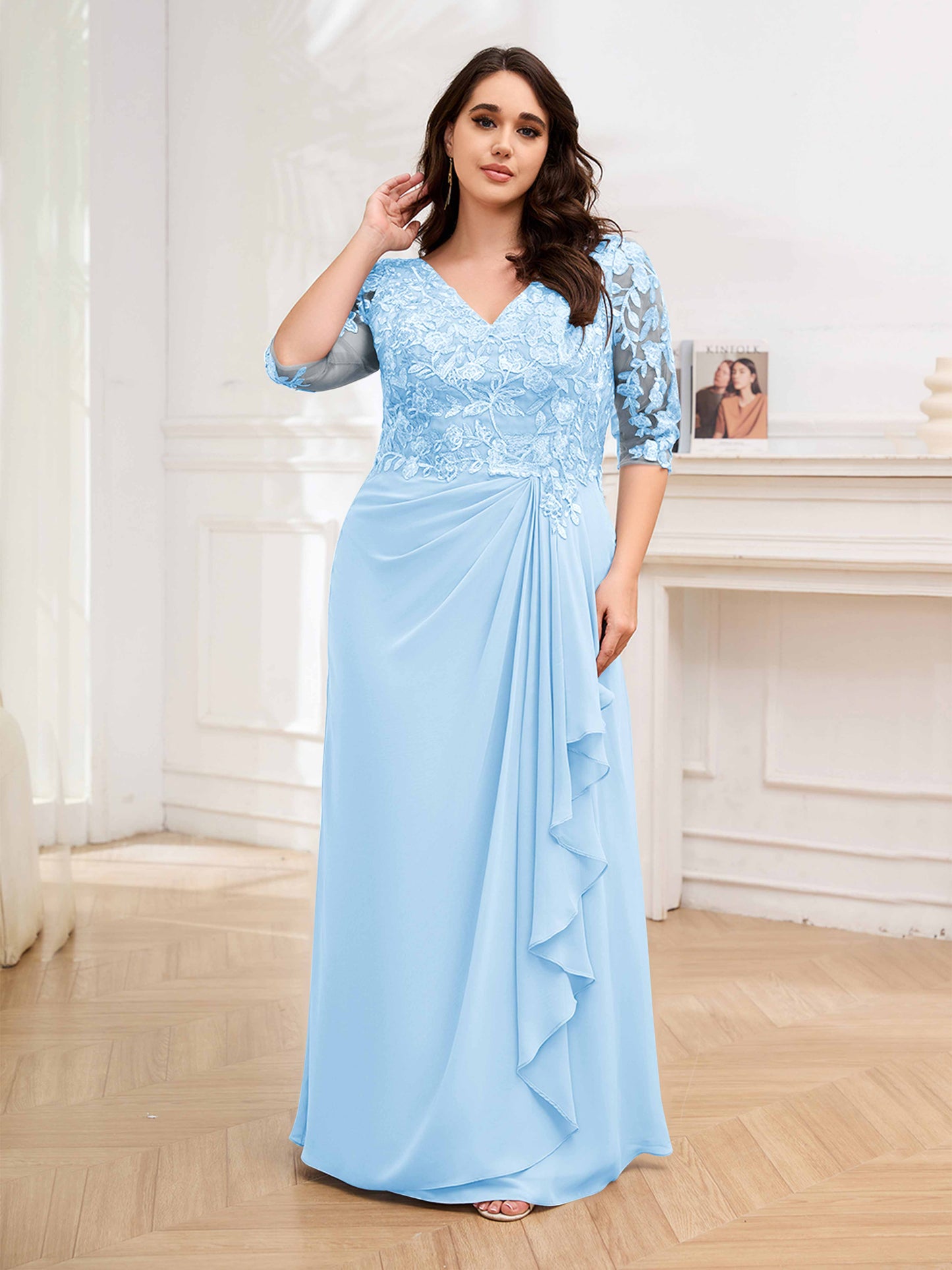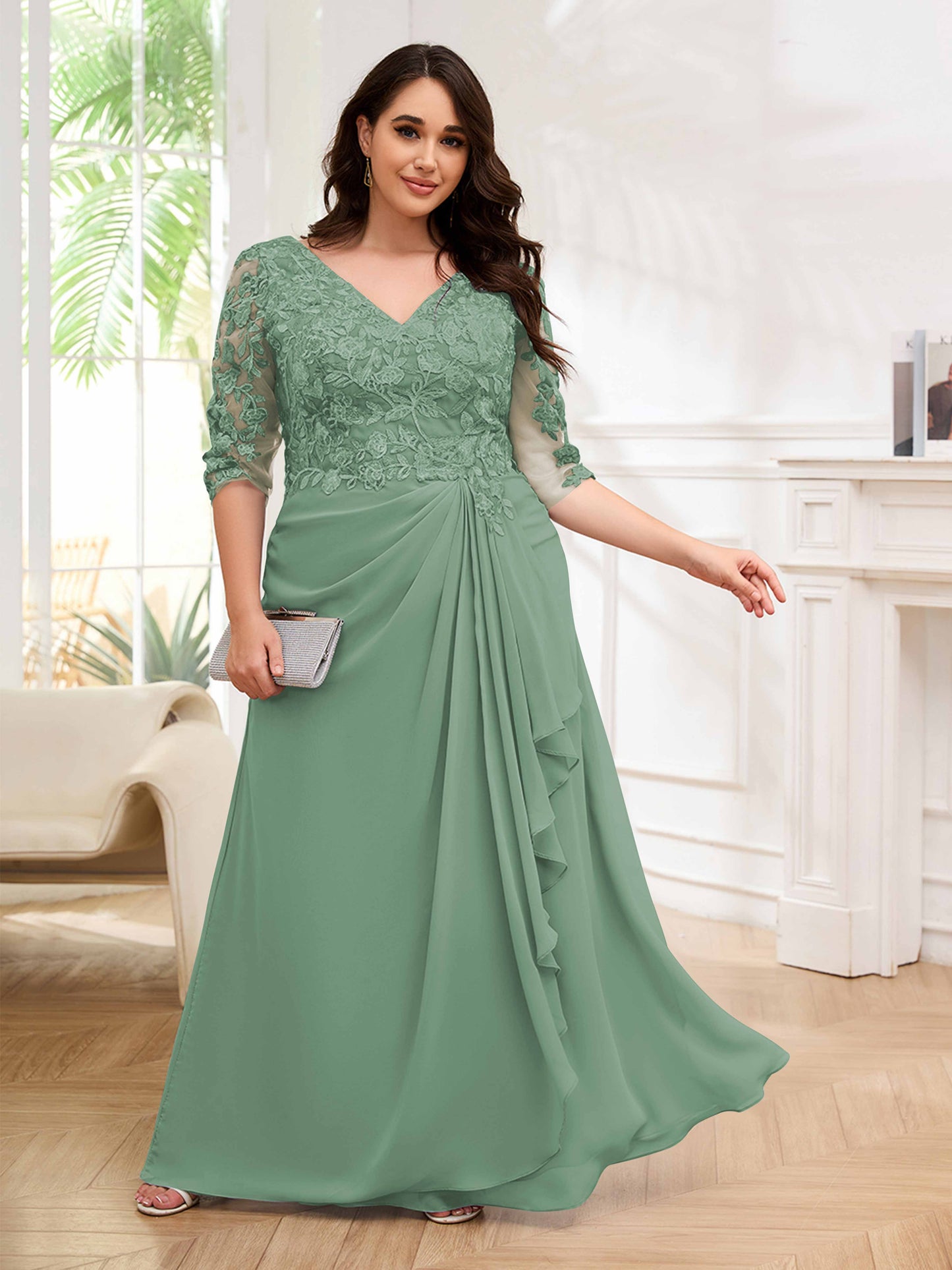 Modern V-Neck Half Sleeves Lace Chiffon Plus Size Mother Of The Bride Dresses UK